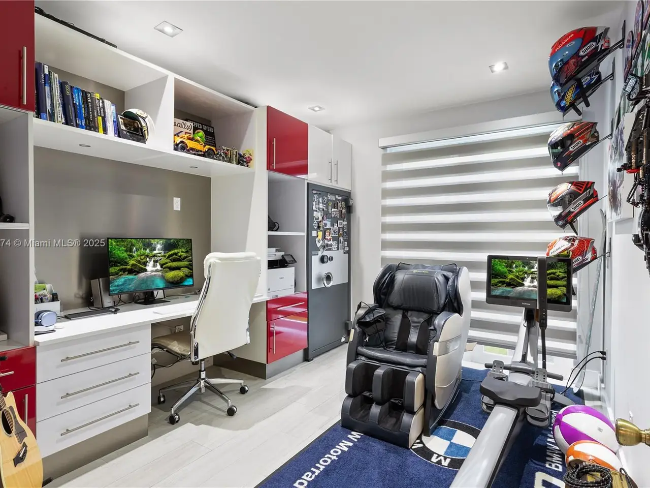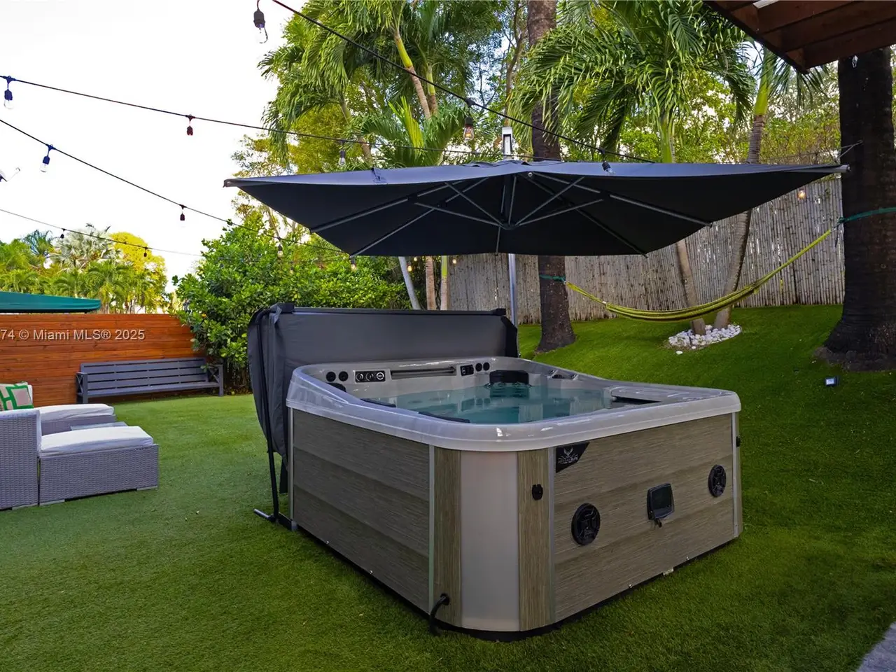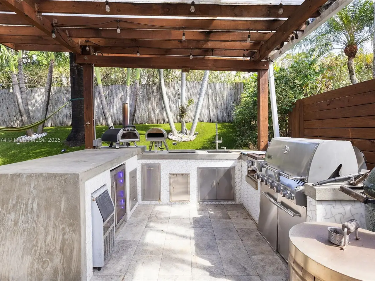 **Impeccable 5-Bedroom Luxury Home**Discover refined living in this beautifully appointed 5-bedroom, 3-bath residence. The gourmet kitchen showcases Sub Zero appliances, a dual-temperature wine cooler, and sleek designer finishes. Elegant porcelain and wood-look tile flooring flow throughout, complementing the homes sophisticated style. A first floor bedroom and full bath offer flexibility for guests or multigenerational living. Enjoy impact windows, an epoxy-finished garage with custom storage, and a lush landscaped yard with built in kitchen and jacuzzi - perfect for entertaining in style. This exceptional home blends modern luxury and timeless comfort in every detail