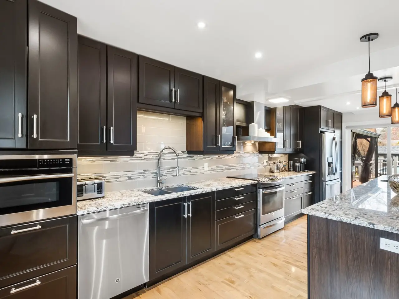 Nestled on a quiet, tree-lined street in Dorval South, this exceptional turnkey home offers luxury living with a harmonious blend of elegance, tranquility & functionality. Featuring 4 spacious bedrooms, 3+1 beautifully renovated bathrooms with ceramic & marble showers, this home is a masterpiece of design featuring lavish renovations, an open-concept layout & a gourmet kitchen with a large granite island, perfect for modern living. The finished basement includes a family room, 4th bdrm & storage. Moments from your doorstep, you can enjoy breathtaking water views, stunning sunsets & water sports, offering the perfect blend of comfort and lifestyle.