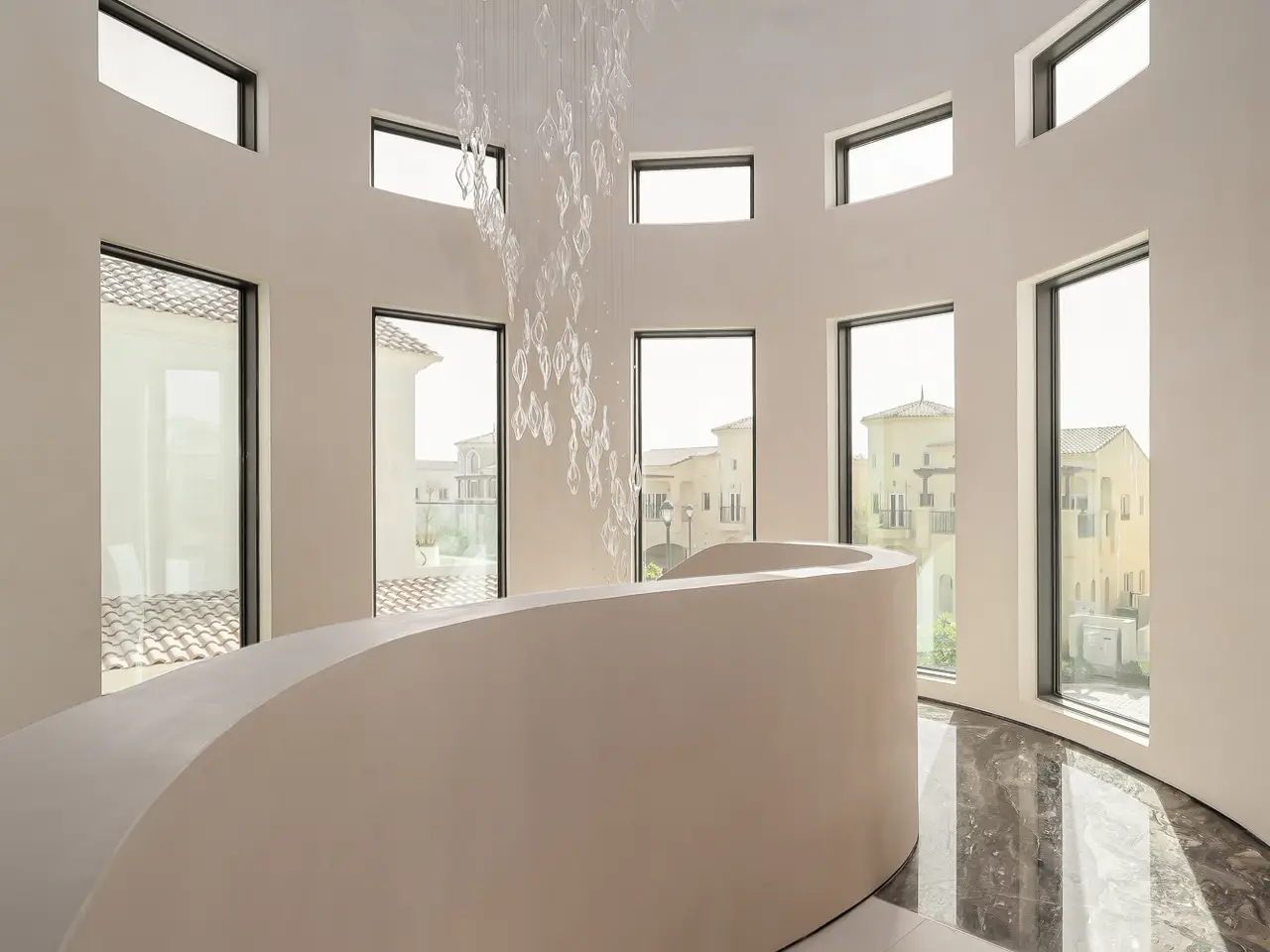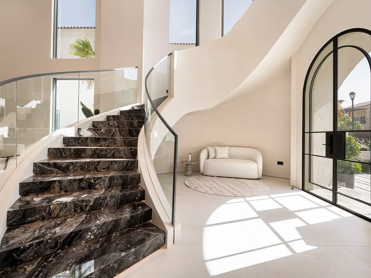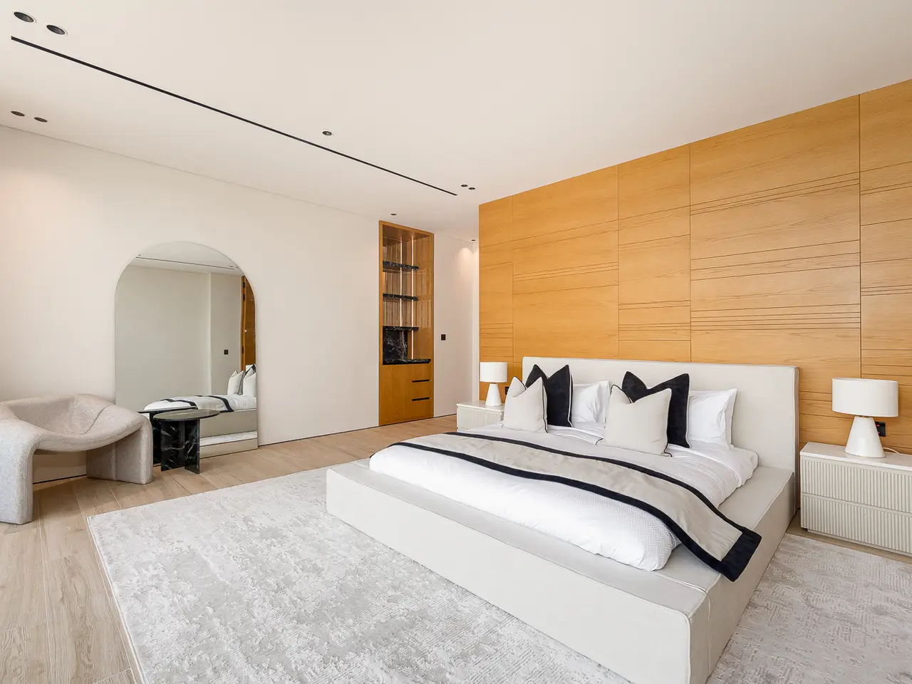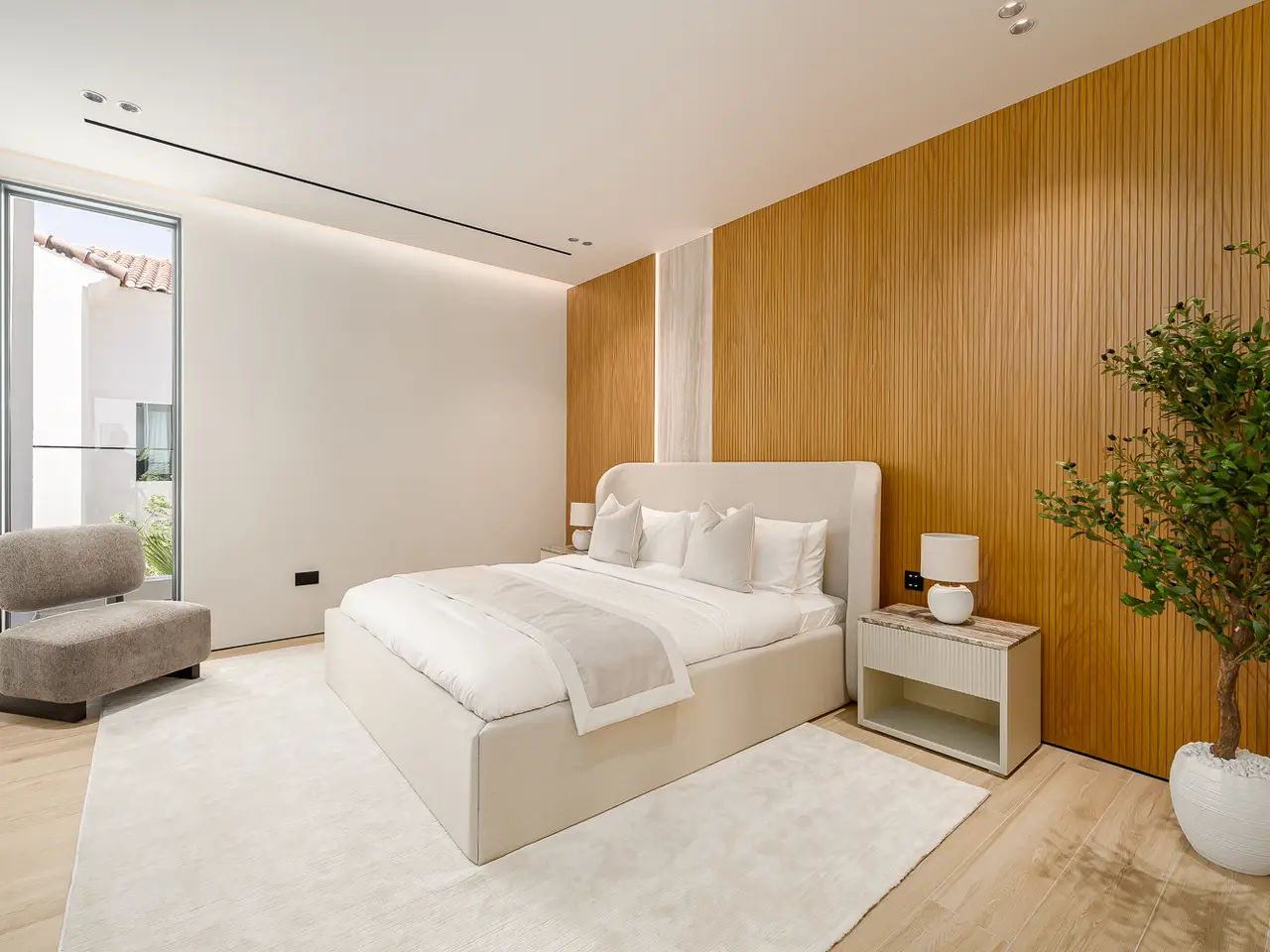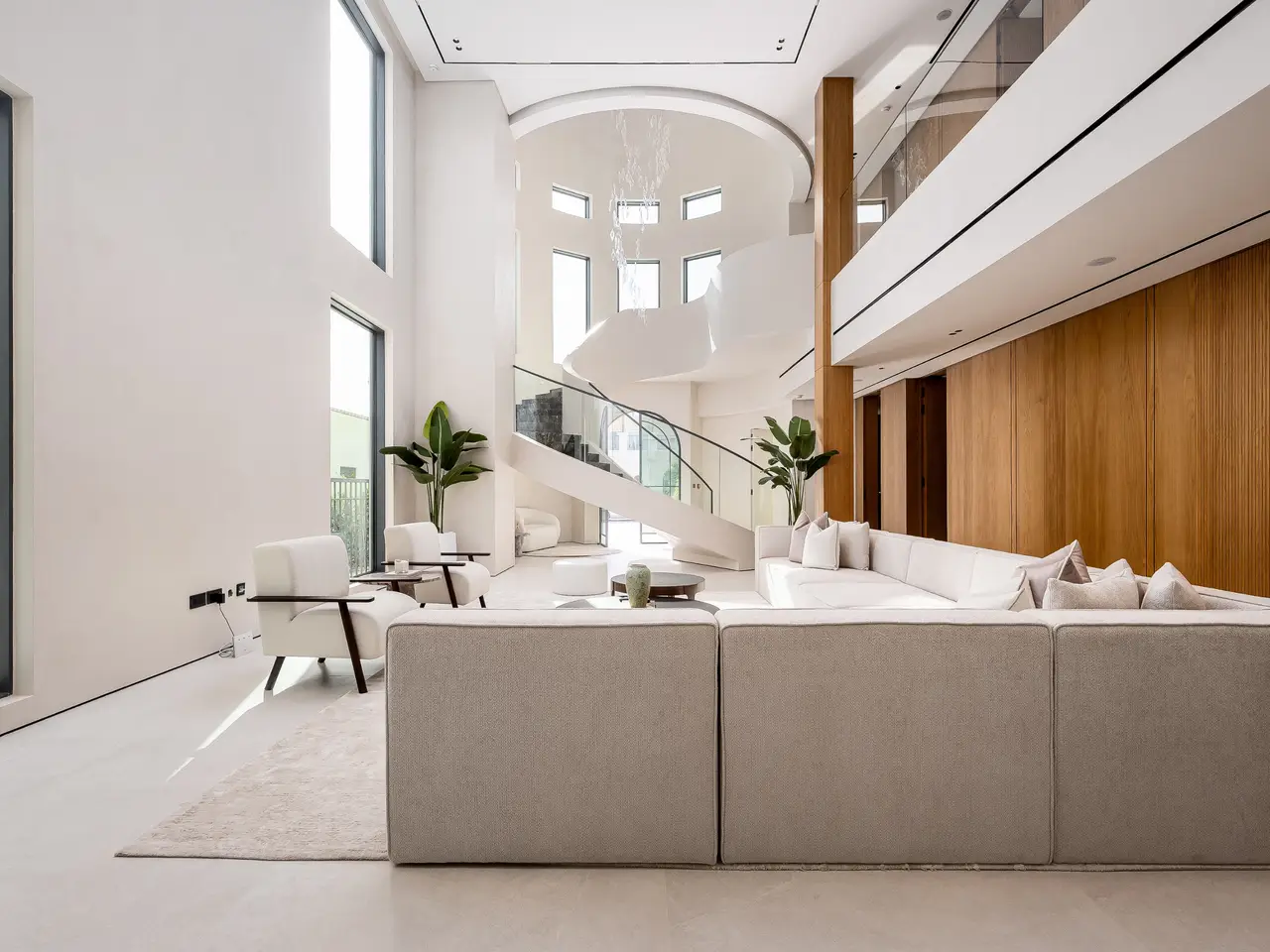 PRIME By Betterhomes are delighted to introduce this immaculate, fully upgraded 5 bedroom villa set in the heart of Wildflower, Jumeirah Golf Estates. - 5 Bedrooms - 7 Bathrooms - Maids + Drivers - Luxury Finishes - Earth Golf Course Views - Garage for Two Cars - 7,689 Plot Size - Smart Home Technology - Entertainers Garden - Miele Kitchen Appliances - Wood Flooring and Travertine Throughout This elegant villa is not just a home, it's a statement of luxury living set in one of Dubai's most sought after communities. As you step inside, you're greeted by a sleek, contemporary design infused with Scandinavian style to give a warm homely feel. The beautiful use of Travertine and solid wood allows the home to feel bright and modern. On the first floor you have a spacious guest en-suite bedroom, open plan kitchen with Miele appliances, prep kitchen, maids + drivers room and a spacious living/dining area. The entertainer's garden offers stunning views of the golf course, comes with an outdoor BBQ area, sunken fire pit, infinity pool and grass patch for the kids. Upstairs there are a further 4 en-suite bedrooms which are all spacious with balcony access. The two master bedrooms have large walk-in wardrobe and share a spacious balcony with a calming golf course view.