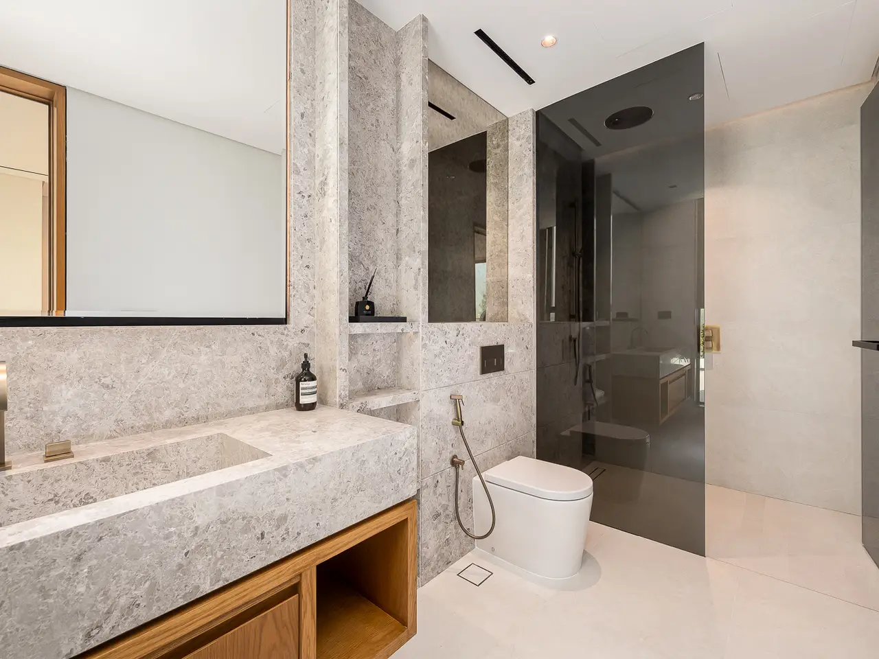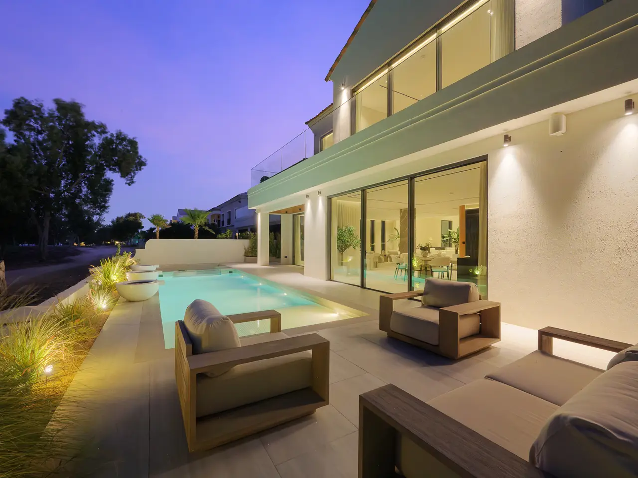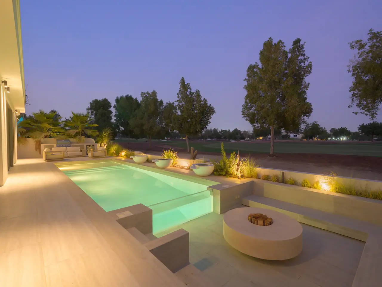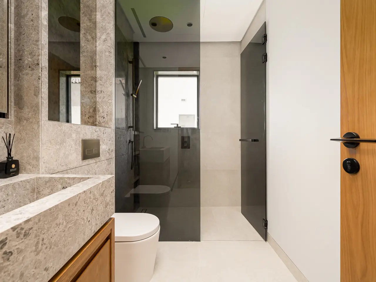 PRIME By Betterhomes are delighted to introduce this immaculate, fully upgraded 5 bedroom villa set in the heart of Wildflower, Jumeirah Golf Estates. - 5 Bedrooms - 7 Bathrooms - Maids + Drivers - Luxury Finishes - Earth Golf Course Views - Garage for Two Cars - 7,689 Plot Size - Smart Home Technology - Entertainers Garden - Miele Kitchen Appliances - Wood Flooring and Travertine Throughout This elegant villa is not just a home, it's a statement of luxury living set in one of Dubai's most sought after communities. As you step inside, you're greeted by a sleek, contemporary design infused with Scandinavian style to give a warm homely feel. The beautiful use of Travertine and solid wood allows the home to feel bright and modern. On the first floor you have a spacious guest en-suite bedroom, open plan kitchen with Miele appliances, prep kitchen, maids + drivers room and a spacious living/dining area. The entertainer's garden offers stunning views of the golf course, comes with an outdoor BBQ area, sunken fire pit, infinity pool and grass patch for the kids. Upstairs there are a further 4 en-suite bedrooms which are all spacious with balcony access. The two master bedrooms have large walk-in wardrobe and share a spacious balcony with a calming golf course view.