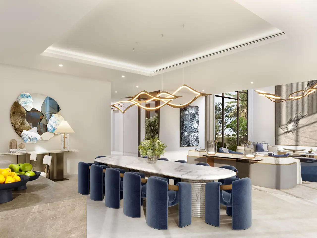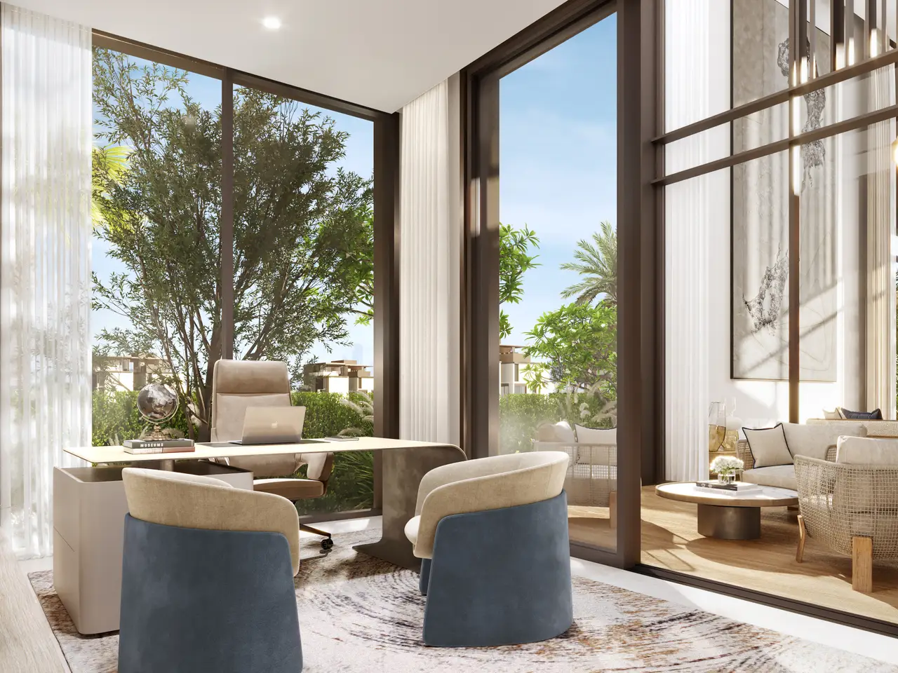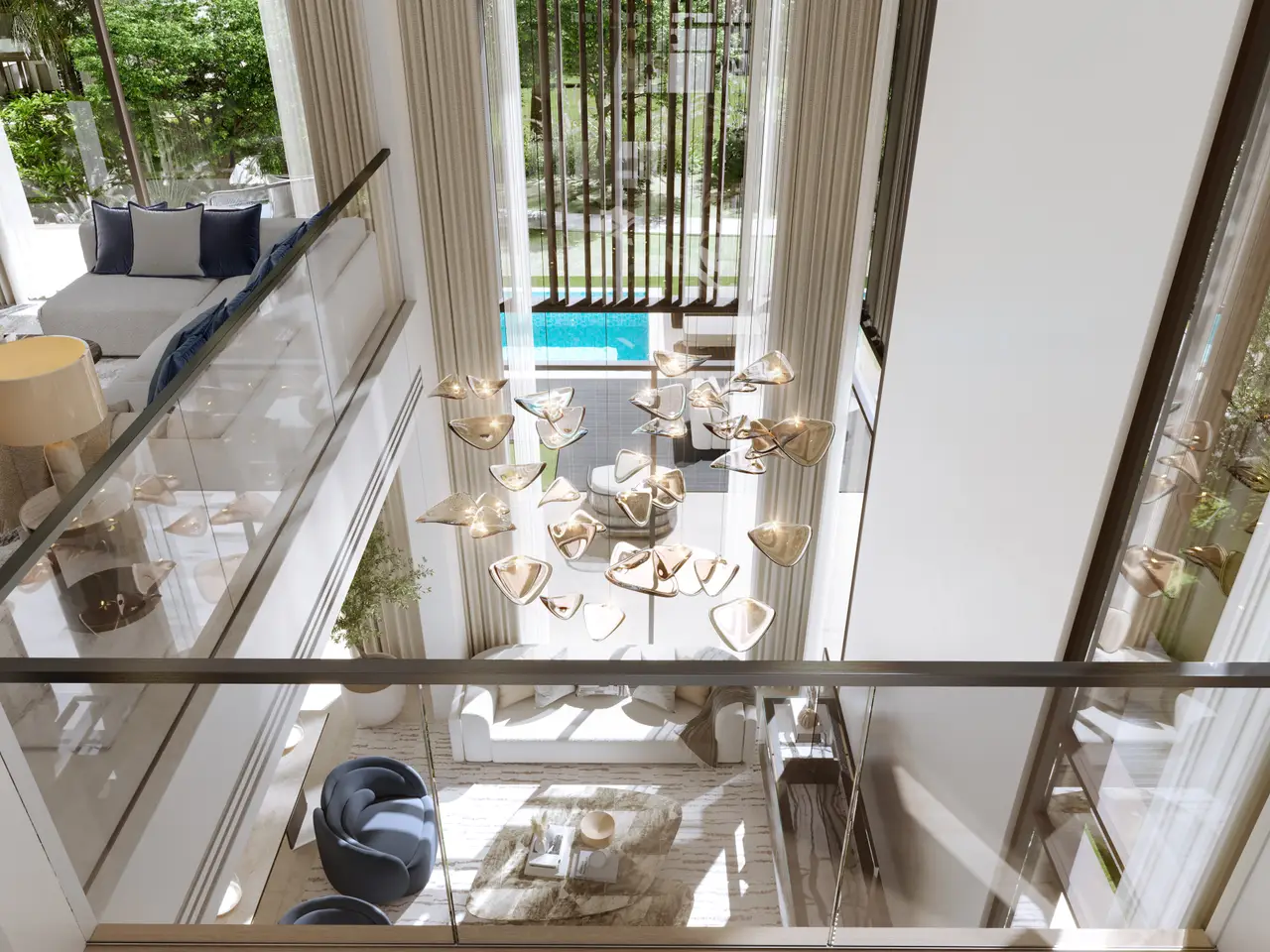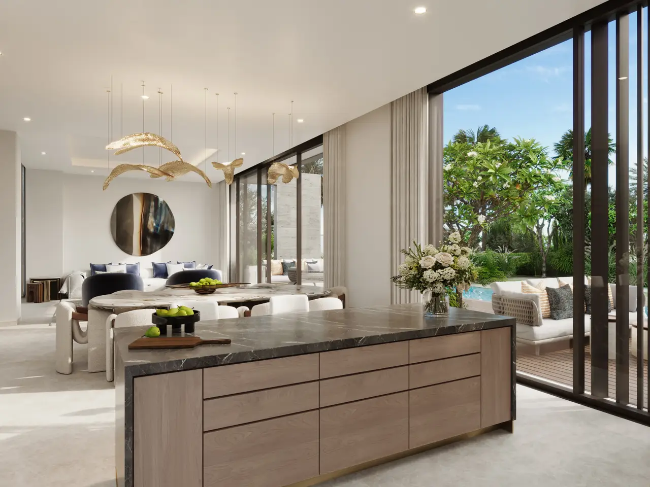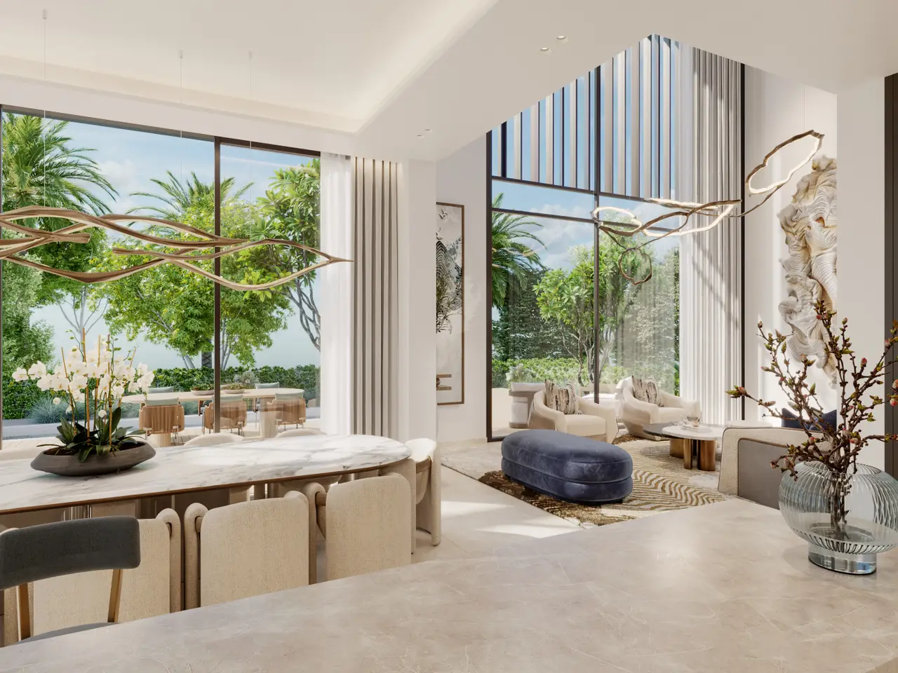 - Expansive glass doors connecting indoor spaces to private gardens and terraces