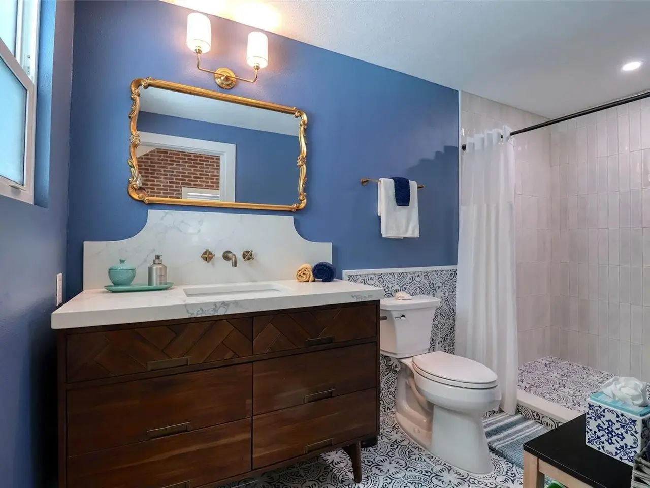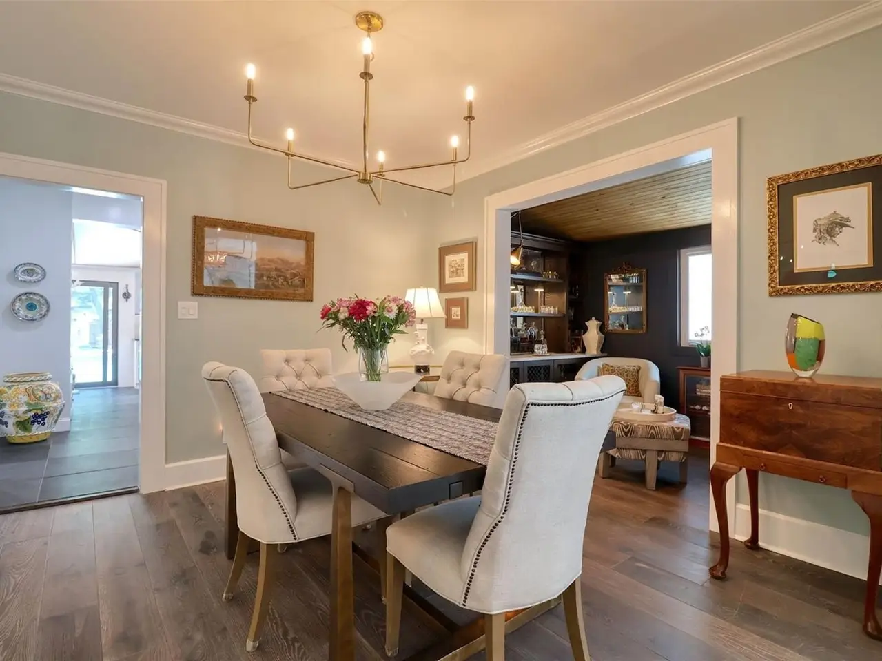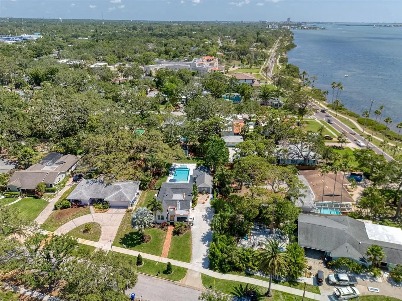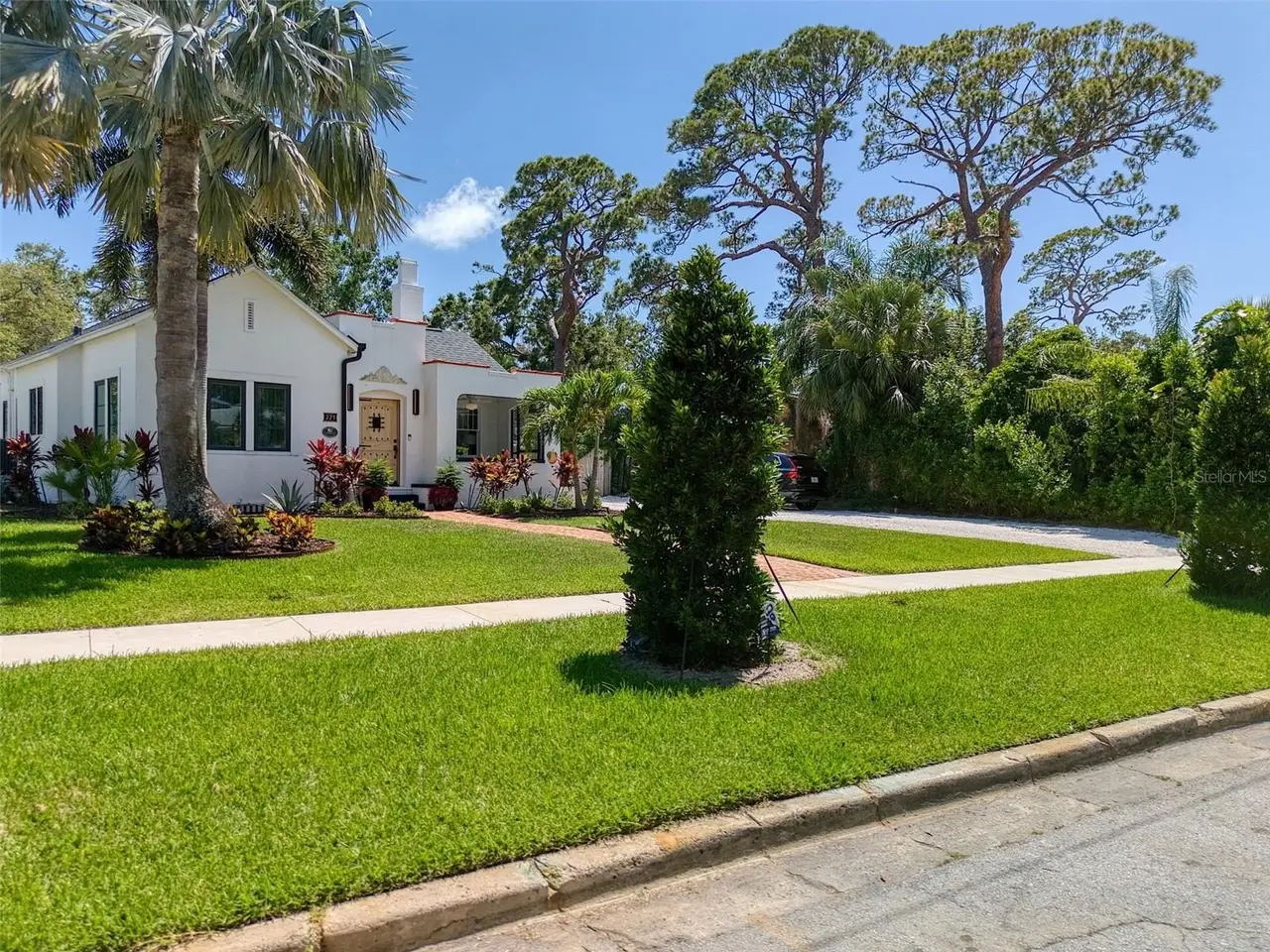 Elegant and sophisticated aptly describes this pristine 1927 Historic Landmark pool home with a Carriage House situated on over a 1/4 acre lot in the highly sought after Downtown Dunedin golf cart friendly Fenway-on-the-Bay neighborhood. This stylish home is for the discerning buyer with every attention to detail being addressed. Built in the same era, and within walking distance of the iconic Fenway Hotel, this home has been meticulously renovated with high-end modern luxuries while retaining its era charm. This delightful home is light and bright. The main home boasts a welcoming living room with gas fireplace, dining room, family room, and a large renovated kitchen with striking granite countertops, a huge kitchen island, farm sink, wood shaker cabinetry, high-end commercial Wolf & Subzero stainless-steel appliances, and a 100+ bottle wine cooler.  Off of the kitchen is a charming Butler's pantry with copper sink, vintage window, built-in shelving and more spacious cabinetry. Open to the kitchen enjoy the family room, featuring its original refinished oak floor and unique raised ceilings and unparalleled view of the pool and backyard. The primary bedroom is spacious and bright and offers a built-in closet plus modern extra tall cabinet storage space. The second bedroom is currently being used as an office and it too offers a built-in closet. The pristine primary bathroom has a frameless glass shower surround, vintage-look vanity, lighted mirror, modern tiled floor, and a Vela Plus Self-Cleaning Smart Toilet/Bidet. Off of the dining room is an intimate bespoke cocktail lounge with lighted built ins, mirrored shelving and deep storage cabinets, which could be transformed into an office. The home boasts wide wood plank and distinctive tile flooring, a neutral color palette, unique lighting fixtures, ample storage,  all culminating into a truly historic feel with modern, luxurious updates. The fenced backyard is lush, private and offers a view of St Joseph's Sound, multiple seating areas, and a tranquil 15x30 natural gas heated pool and spill over 8-person spa. There is a cabana with electrical wiring and windows, currently used as a work shed. The light and bright Carriage House is separate from the main home and shares similar high-end finishes, with its tall ceilings, large tiled bathroom, a kitchenette, and spacious, sunny living area and a bedroom with high ceilings. It is heated and cooled by a 2 head mini-split, and offers a beachy vibe with ceiling fans, painted wood flooring, and shiplap wall accents. This stunningly beautiful home is move-in ready and offers many notable efficient & structural features including LOW-E impact windows, whole house Generac generator, encapsulated crawl space, and a UV air purification system. With a home of this vintage, it is refreshing to see the renovations and updates have been permitted through the City of Dunedin. Watch the attached VIDEO to fully appreciate this home. The location is also first class; walk or jump in your golf cart to nearby shops and restaurants; the Pinellas Trail intersects the street and is just a stroll away. Watch the sunset from your own exquisite backyard, or head downtown for dinner or to the many festivals and events. Couple this with excellent schools, pristine beaches and all that fabulous Dunedin has to offer, and you have the ultimate elegant Florida lifestyle home!