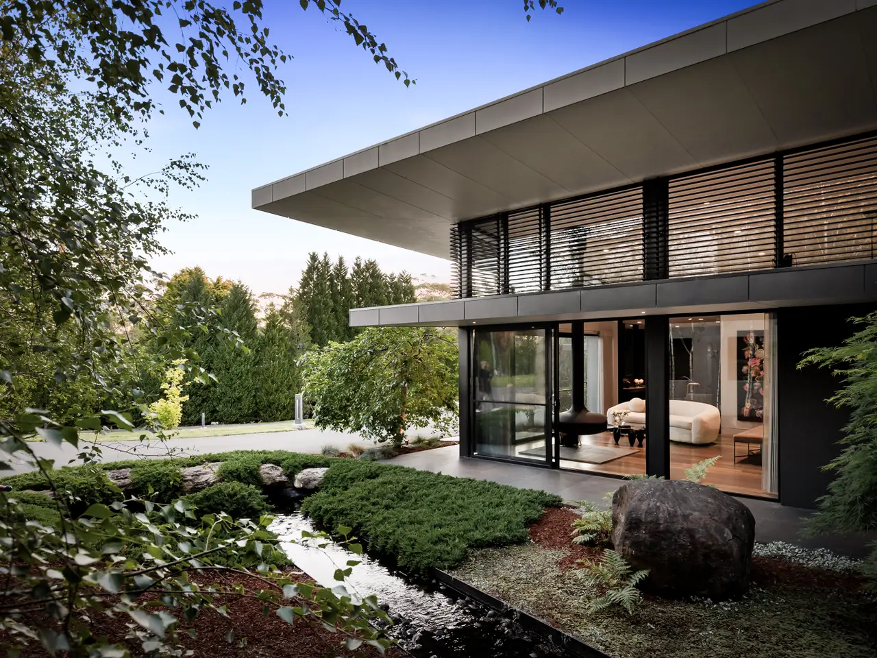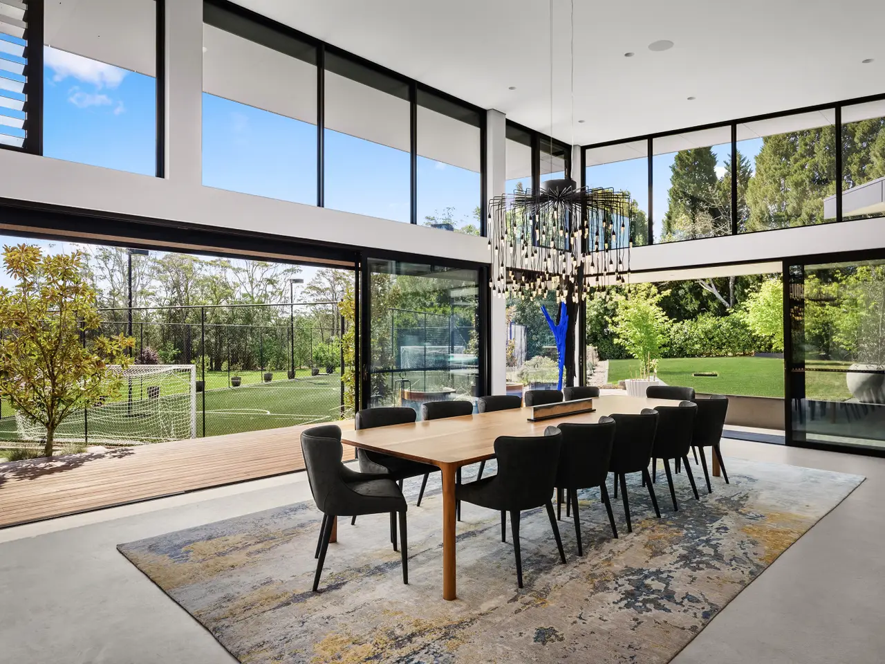 Widely regarded as one of Dural's finest homes, this architectural masterpiece was completed in 2016 and is the epitome of position, prominence and prestige. Positioned in the ultra convenient locale close to Round Corner Village this spectacular residence is in a class of its own when it comes to location. Boasting a carefully considered and prominent position within this 2.2ha property, the extremely private residence also allows for the potential of a dual occupancy (STCA). Indulge in the uncompromising combination of architecture and acreage with the highest standard of finishes throughout. • The 6-bedroom residence is oriented to suit the view and also maximise the distance from the neighbours to each side, ensuring privacy • Polished concrete, heated flooring and contrasting hand etched sandstone walls elevates the signature high ceilings allowing the outside in, maximising flow • Immersive natural light throughout, enhanced by the north to rear orientation of the home and extensive glass stacking doors and skylights • The captivating living/dining area set with feature chandeliers offers a seamless connection to the surrounding arable acreage • King-sized master with boutique-style walk-in wardrobe, luxe double ensuite with copper finishes, zen suspended fireplace all opening onto Japanese infused garden • Gourmet kitchen boasting integrated Gagganeau appliances and separate galley style butlers pantry with Vintec wine fridges • An impressive selection of outdoor entertaining spaces including resort style pool, gymnasium, synthetic grass football pitch and concrete cast fire pit adjoining chessboard • Ideal choice between an easy commute to Sydney's CBD and working from home in the ambiance office or library both equipped with fireplaces • Low-cost maintenance in comparison to comparable acreage estates of this stature and includes licenced bore and 200,000L of water tanks in addition to Sydney Water supply • Spoilt for choice of elite schooling options including Hills Grammar, Pacific Hills, Redfield College and Northolm Grammar Best suited for: Families who appreciate unparalleled architectural design and those in pursuit of a tranquil, comfortable yet luxurious acreage lifestyle close to everyday amenities.
