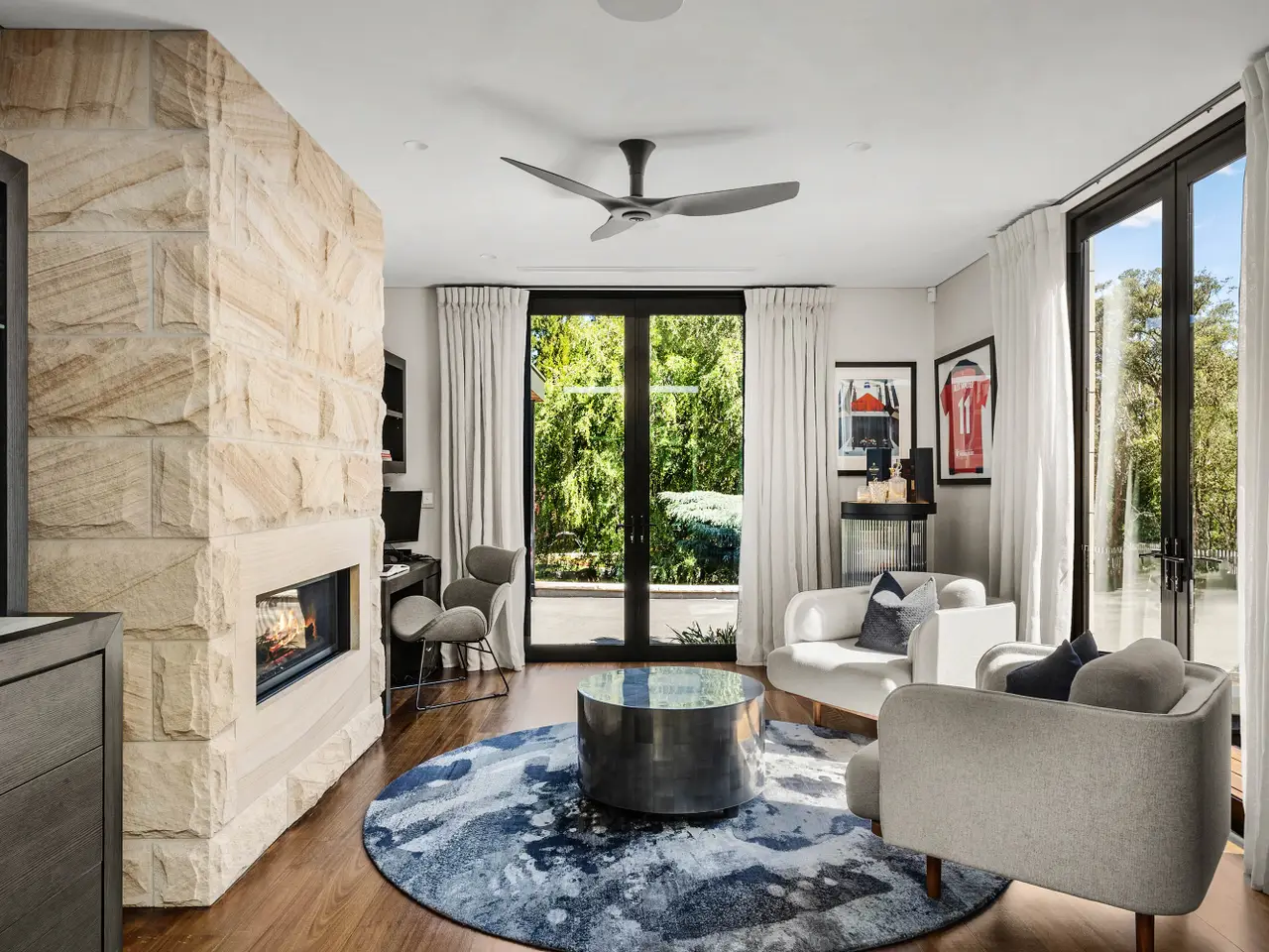 Home office & library with fireplaces