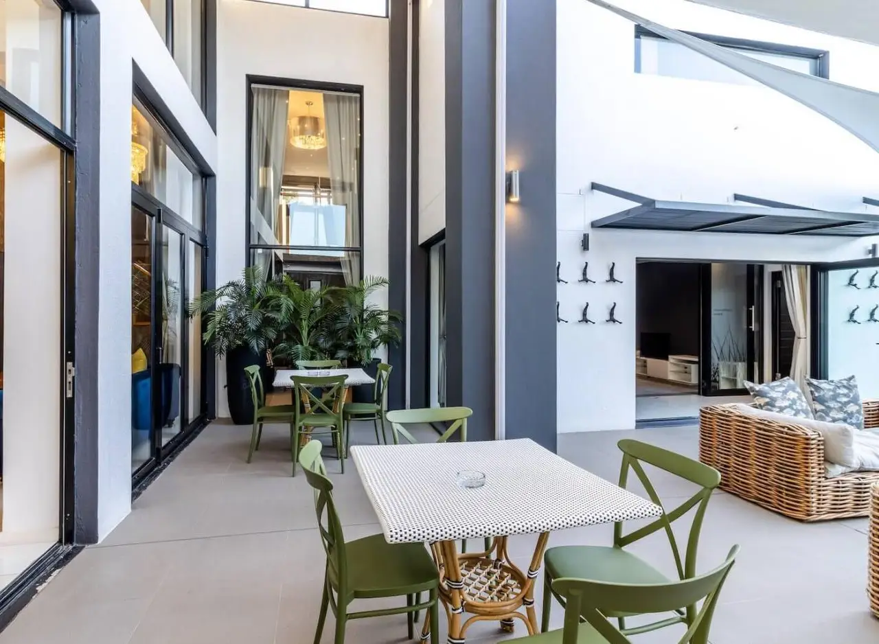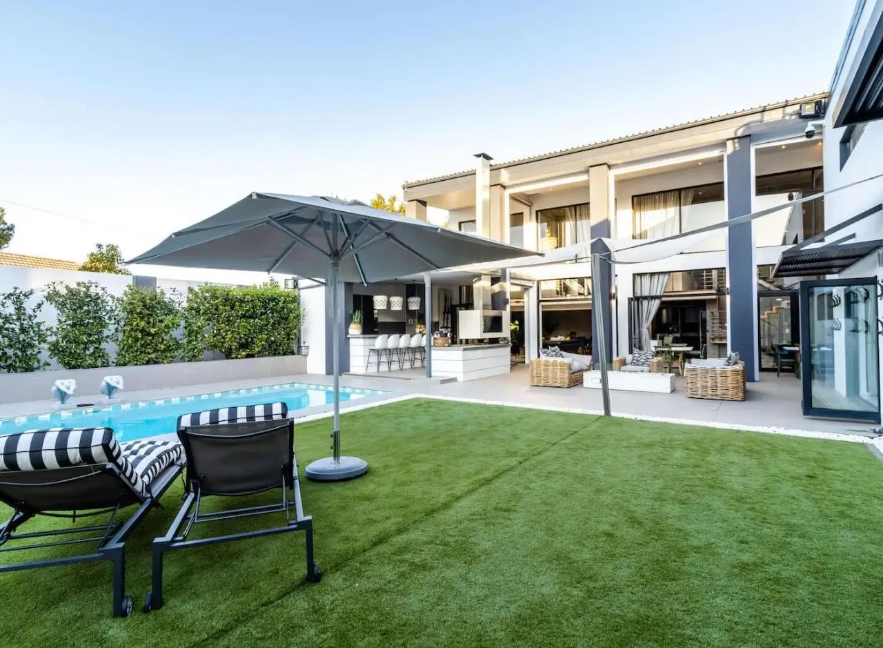 Live the life of luxury in this stunning 7-bedroom, 8-bathroom home in Durbanville, Cape Town. This 410sqm residence, currently a guesthouse, is the ultimate blend of elegance and modern design, making it an ideal family home or a savvy investment. Step inside to an open-plan living space featuring double-height ceilings and expansive windows that fill the room with light. The gourmet kitchen is a chef's delight, equipped with high-end appliances and a large island. Outside, you'll find an entertainer's paradise with a built-in braai, comfortable seating, and a serene pool overlooking a manicured garden. Each of the seven bedrooms is a private retreat with its own en-suite bathroom, air conditioning, and a TV. The property also features two double garages and a spacious parking ramp. Located in a sought-after suburb, you'll have both privacy and easy access to all the best of Cape Town. This one-of-a-kind property is listed at R9 950 000 (excluding VAT). Contact us to schedule your private tour.