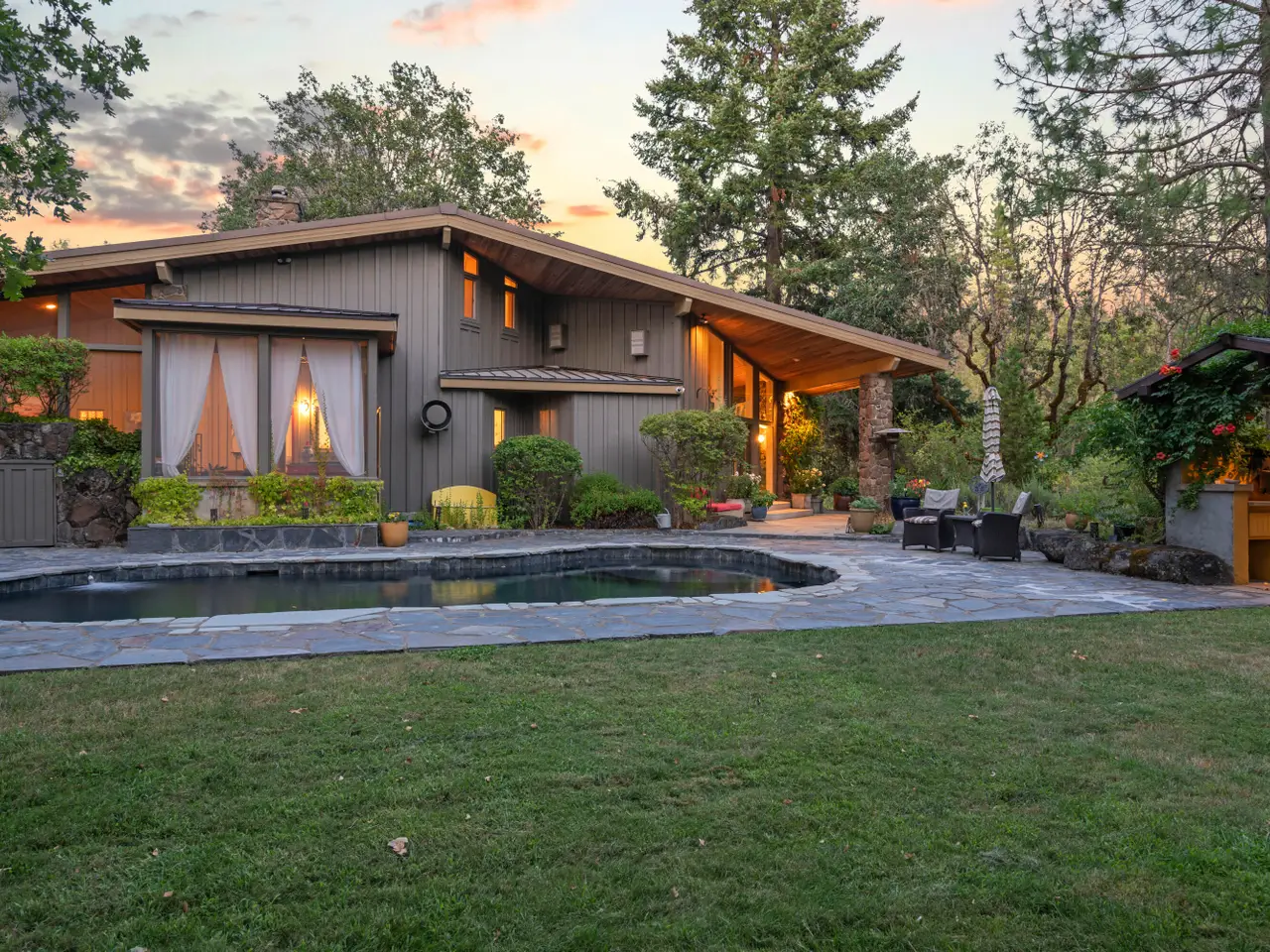 Opportunities to own a property like this are almost never seen. Set above Big Butte Creek with more than 1,200 feet of live water frontage, this 40 acre estate is bordered on three sides by over 7,000 acres of public land, creating an unmatched sense of privacy and access to recreation. The residence blends modern design with Northwest lodge character, centered on a dramatic great room with soaring ceilings, walls of glass, and a stone fireplace overlooking the creek and evergreens. The master suite is a private retreat with vaulted ceilings, dual baths, and patios perched above the water, while guest accommodations provide comfort for family and friends. Outdoor living is equally inviting with patios, decks, a newly finished pool, and a one half acre pond with dock and pond house. Trails, gardens, and the surrounding public land extend opportunities for hunting, hiking, horseback riding, and year-round adventure. This is more than a home, it is a private sanctuary.