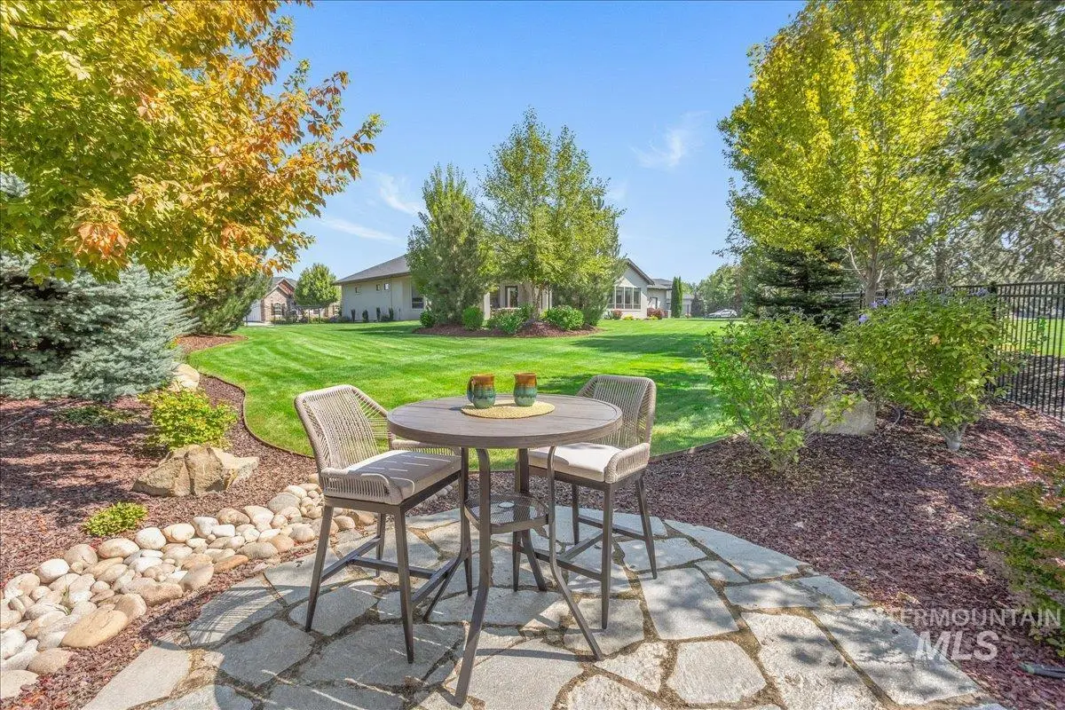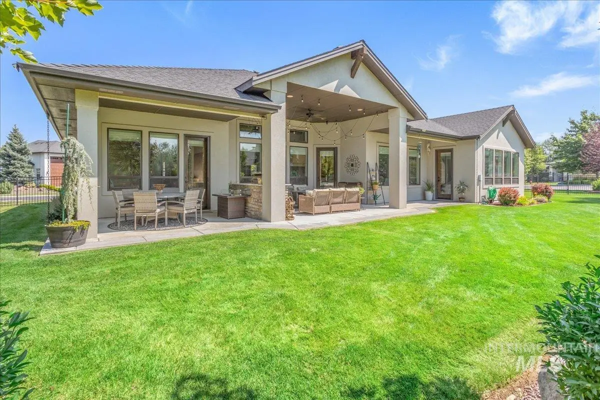 One of Eagle's most prestigious gated communities--Mace River Ranch Estates. Set on a spacious .63-acres, this custom-built single level home offers refined luxury with upgrades and designer touches throughout. Features soaring, 18 ft. ceilings with exposed hand-hewn wood beams and expansive great room, anchored by a stunning floor-to-ceiling stone gas fireplace and gorgeous wide-plank hardwood flooring throughout the main living spaces. The gourmet kitchen is a chef's dream, with top-of-the-line Wolf and Sub-Zero appliances, farmhouse sink, custom cabinetry, and generous storage. Retreat to the lavish primary suite featuring a double-sided gas fireplace shared with the spa-inspired upgraded bath with premium finishes including freestanding tub. Additional highlights include: Four-car garage with epoxy flooring & custom built-ins, outdoor BBQ, and full landscaping with new trees, new shrubs, fresh mulch, edging and existing fully fenced yard. Hunter Douglas electric shades & plantation shutters throughout. Upgraded security system, security lighting & 22kw Generac Generator. Central vac, two hot water heaters with recirculating hot water, reverse osmosis system & water softener. Mace River Ranch community amenities including a 40-acre nature preserve, tranquil water features, clubhouse & pool with direct access to the Boise River Greenbelt!