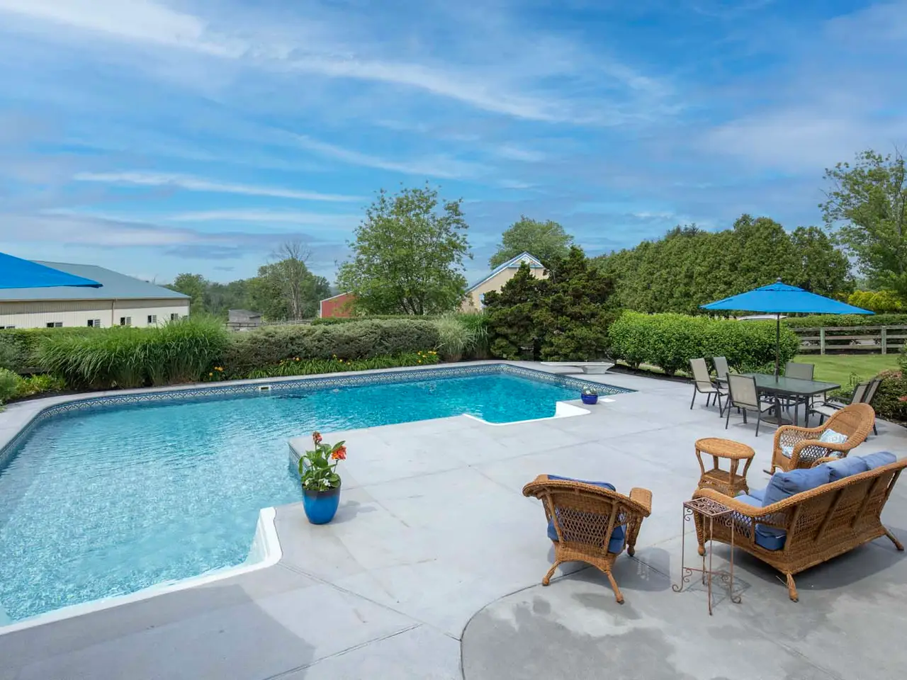 Come home to Crosswinds Farm, a turnkey equestrian facility in the East Amwell countryside of Hunterdon County. A long tree-lined drive introduces this private oasis set on approximately 11 scenic acres. The land has access to the Amwell Valley trail system, a key part of this vibrant horse community. The Amwell Valley Hounds Hunt offers more opportunities for sport and social life. An expansive cottage-style home provides single-level living as well as serene pastoral views and big sky vistas spanning across the valley. The light-filled, flowing floor plan features dramatic window walls, a fireplace, hardwood floors and modern amenities, creating an ideal backdrop for easy living. The living room and family room with a high ceiling are convivial spaces. An updated kitchen is designed with mid-toned wood cabinetry and granite counters; it is the heart of the home and opens to the informal dining space. A utility wing offers a powder room, built-in storage, a laundry room, closets and access to the two-car garage. Another wing houses a primary suite featuring a private bath and door to the deck and pool. A second bedroom with a sitting room and a third bedroom are both served by a full, updated bath. The landscaped saltwater pool complex connects directly to the kitchen and family room; it includes separate firepit and hot tub areas. This area provides a beautiful and private buffer zone between the home and the barn operations. It is clear that this home can accommodate lots of entertaining but also has quiet spaces for relaxation. The stable complex consists of a center aisle 10-box stall barn with loft, hot and cold water, wash stall, tack and feed rooms and Wi-Fi. The indoor arena with GGT footing measures 168' x 76' and includes a heated viewing room, LED lighting and a sound system. There is a European hot walker and a 200' x 80' outdoor dressage arena with sand footing and a gazebo. Lush, fenced fields are served by automatic watering systems. There are also two dry turn-out paddocks. A special feature is a fire alarm system for the barn with direct call and an alarm bell. Centrally located near all things equestrian including top veterinary clinics as well as feed and tack stores, there is great access to New Jersey and Pennsylvania horse parks, horse shows, trails, polo and fox hunting. Crosswinds Farm is sited just outside the charming town of Hopewell and about an hour from New York City or Philadelphia. Historic Ringoes Village, the Hunterdon County Arboretum, local farmstands, wineries, outdoor recreation at the Delaware and Raritan Canal state park, and a variety of community events appeal to residents and visitors in this gracious part of the state.