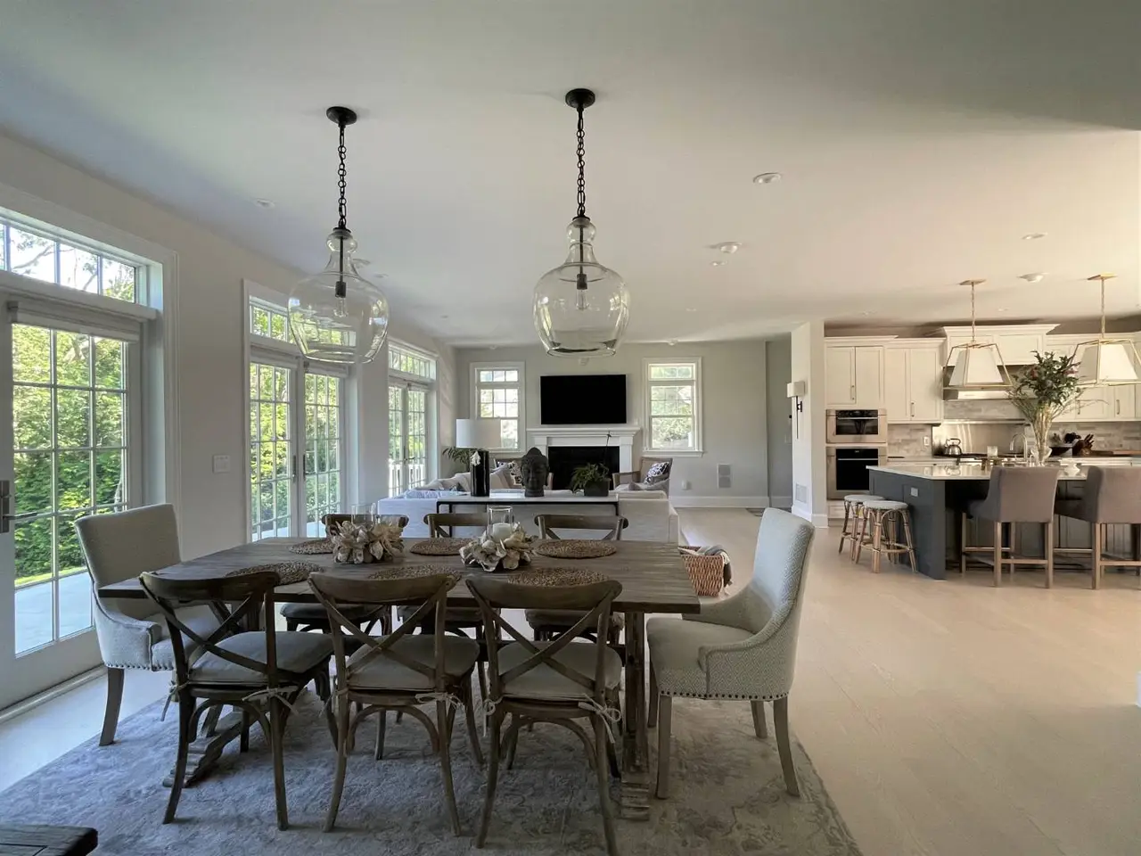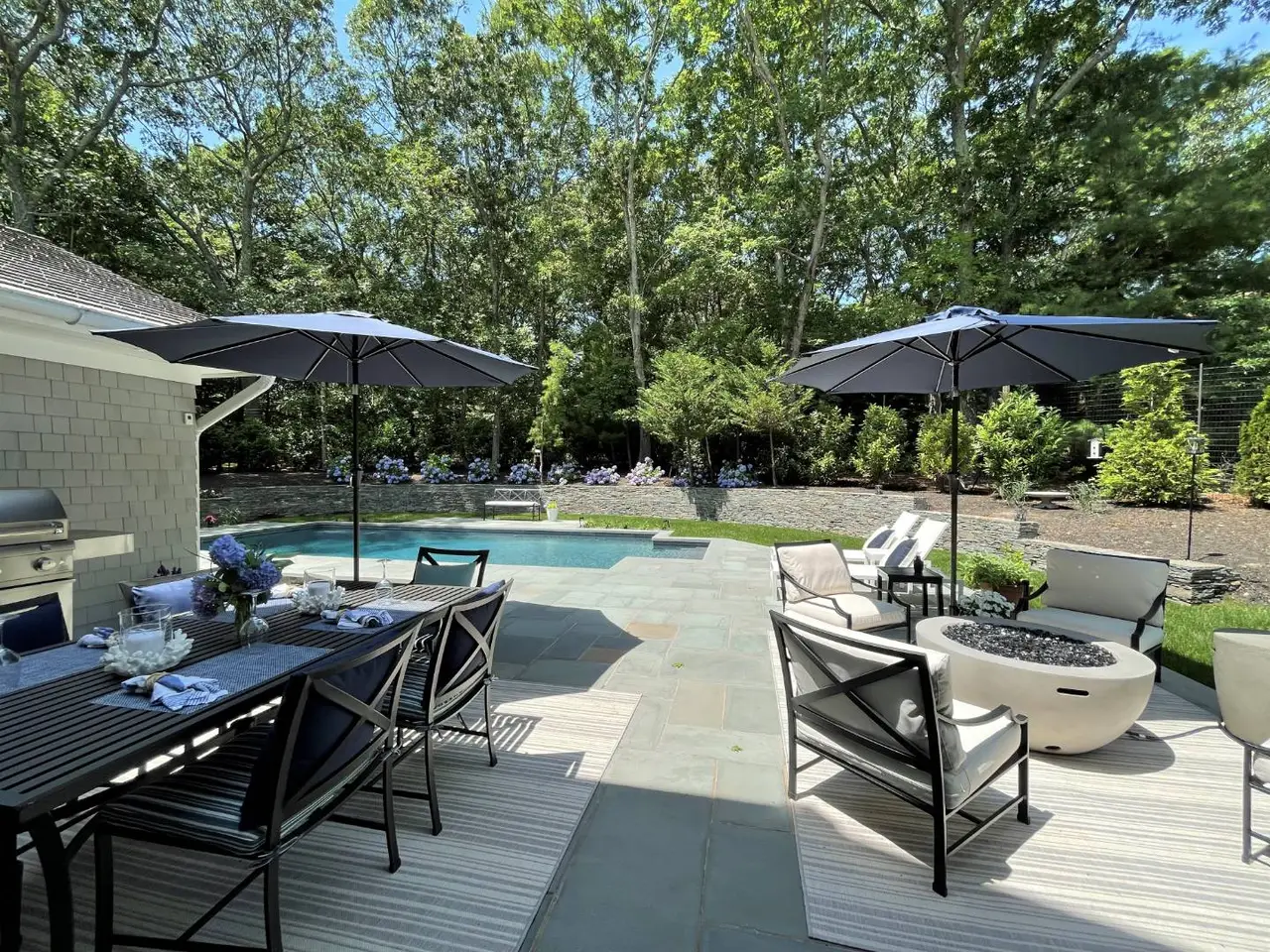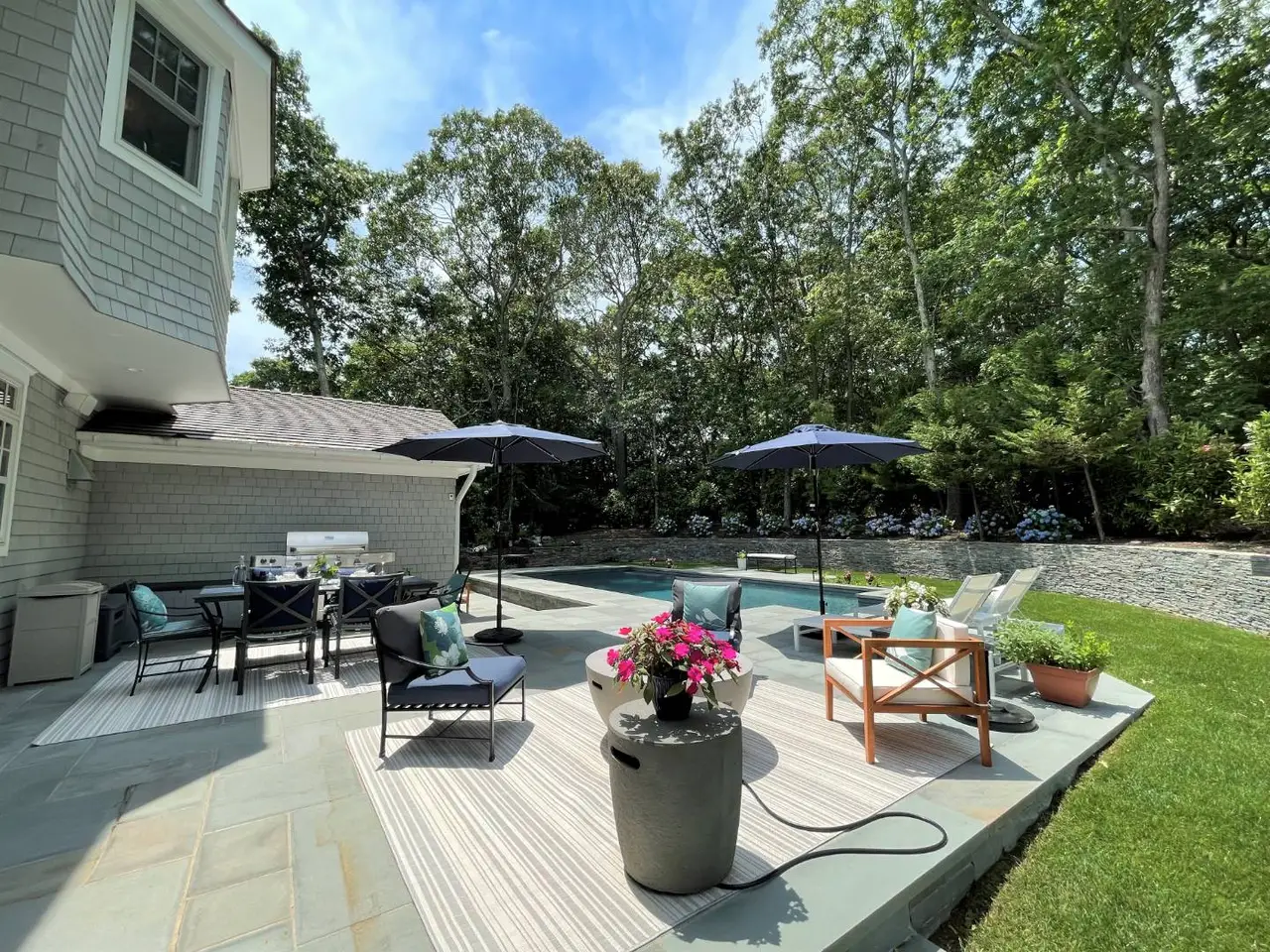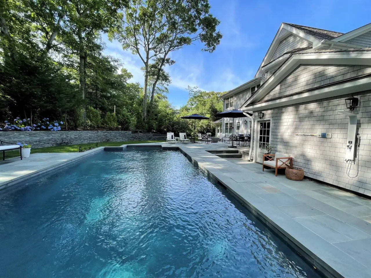 This brand new construction retreat with five bedrooms and four full baths in the Northwest part of East Hampton, has it all. Upon entering the home, to your immediate right is the sun room with vaulted ceiling and gas fireplace. The open floor plan combines a great room with a gas fireplace, dining area, and a gourmet kitchen with Wolf and Subzero appliances that leads to the backyard where a heated gunite pool is surrounded by a bluestone patio with a professional infrared BBQ grill, fire pit, eating area, lounge chairs, hot water outdoor shower, and a lush landscaping nightscape. The ensuite primary bedroom has a soaking tub with double vanities and a surround sound system. Amenities include central-air-conditioning, whole house audio system including outdoor, instant hot water plumbing, smart enabled lights throughout, surround sound system in the great room, large screen wall mounted TV in every room, Westin Hotel Heavenly mattress in all bedrooms (3 King, 1 Queen, and 2 Twins), a work from home office sitting area with balcony, and ping pong table in the lower level. All of this and access to Three Mile Harbor just across the street. Make this your Hampton home for the summer.
