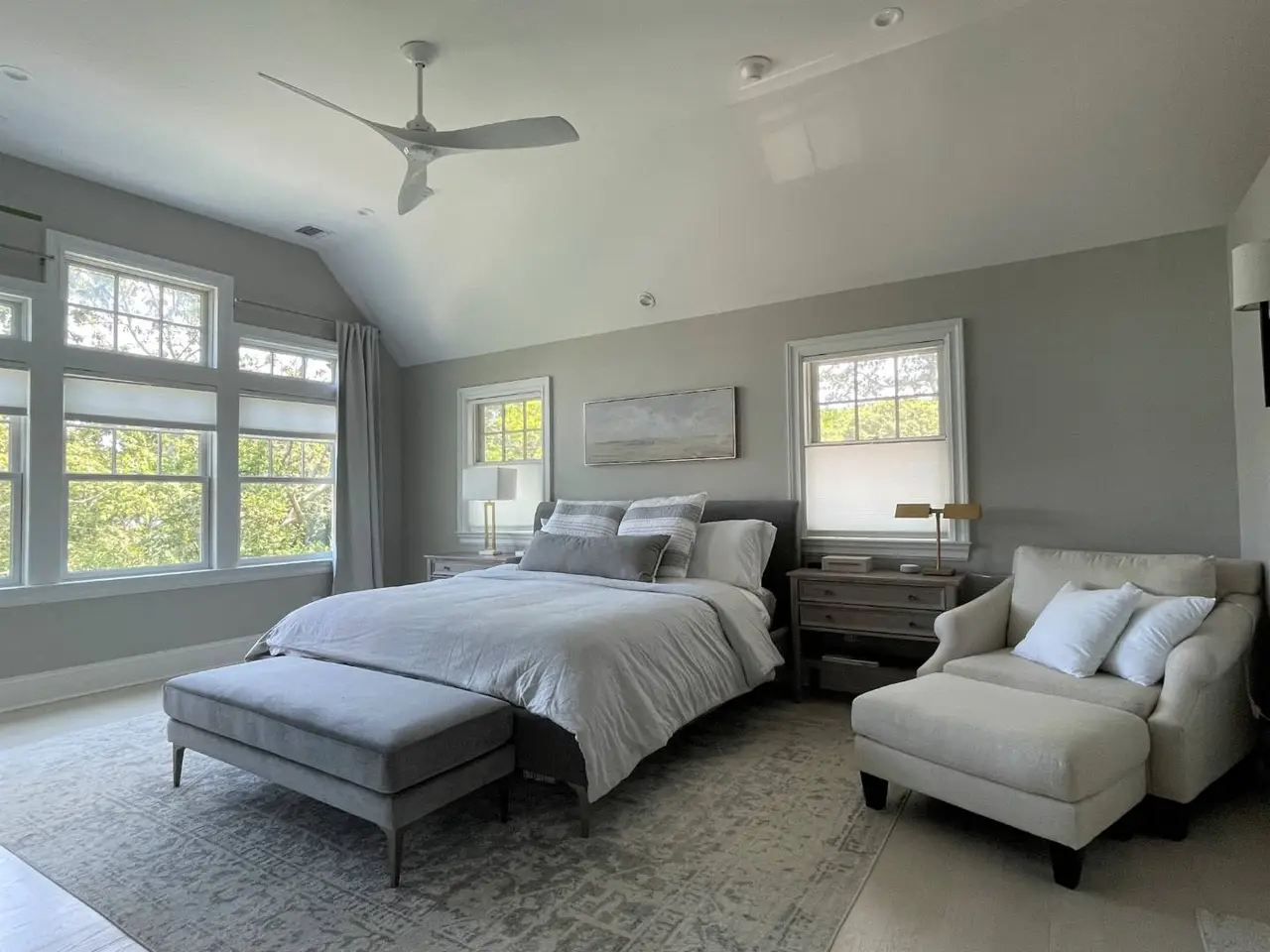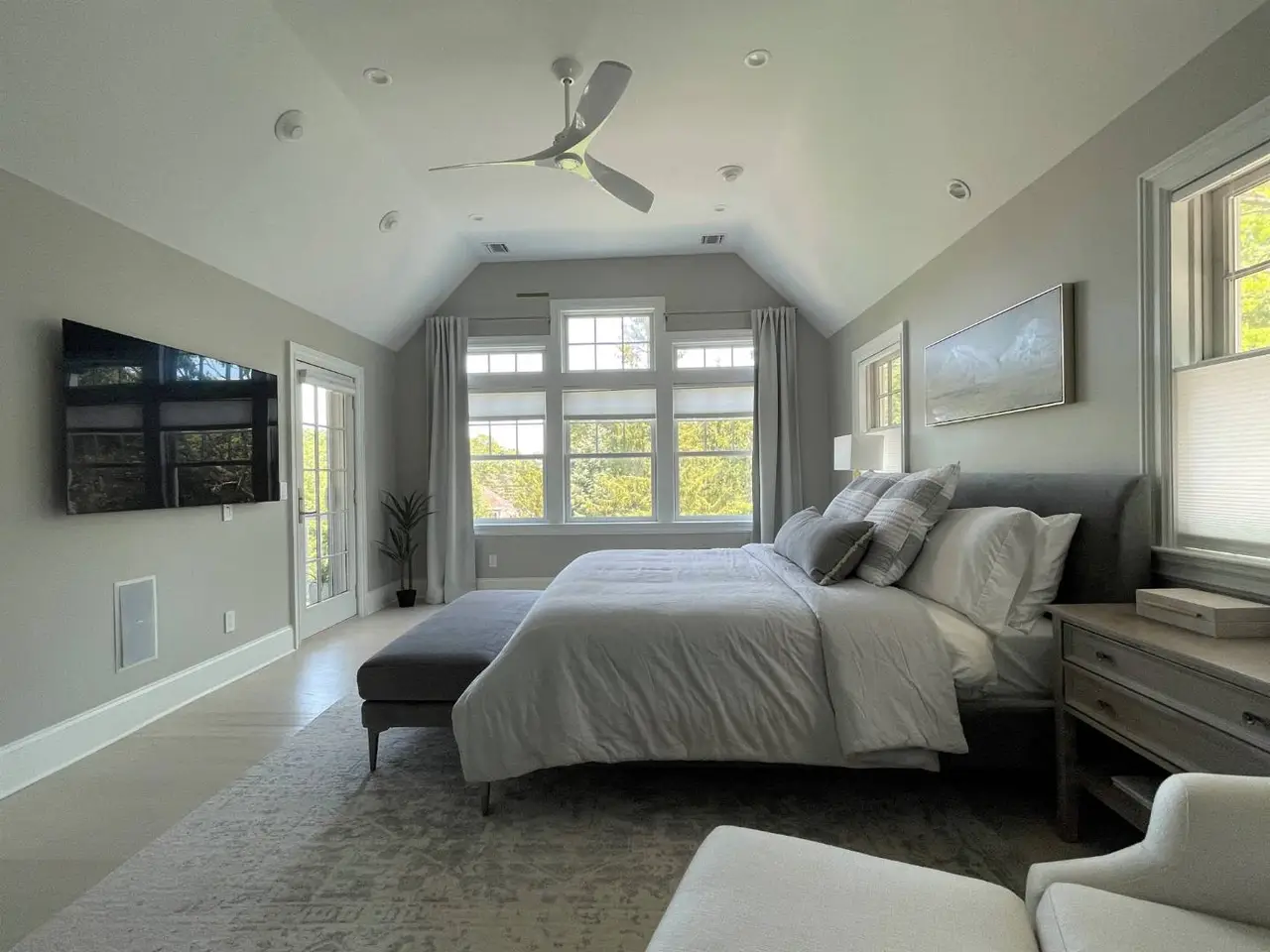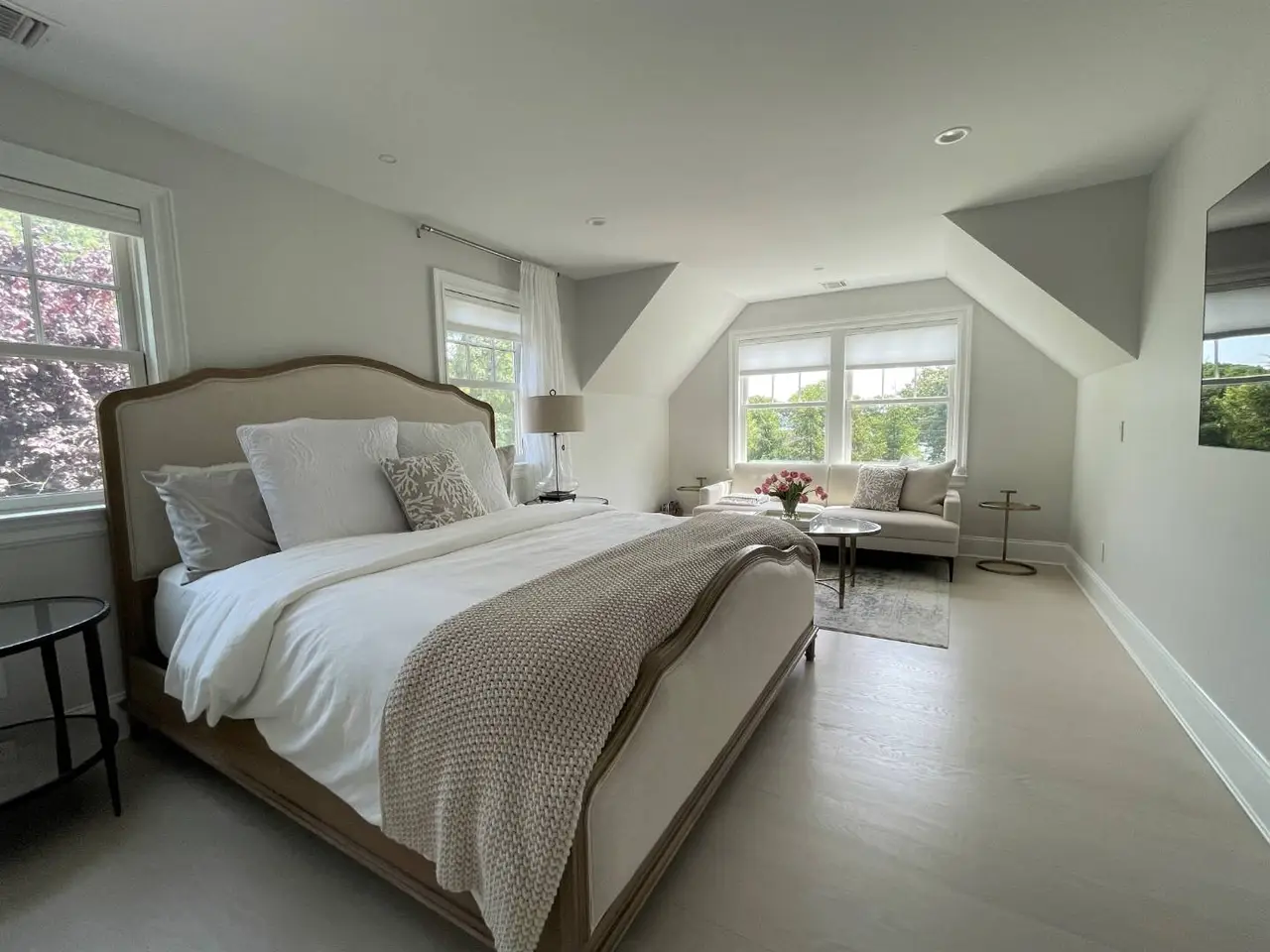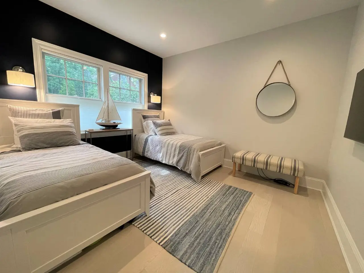 This brand new construction retreat with five bedrooms and four full baths in the Northwest part of East Hampton, has it all. Upon entering the home, to your immediate right is the sun room with vaulted ceiling and gas fireplace. The open floor plan combines a great room with a gas fireplace, dining area, and a gourmet kitchen with Wolf and Subzero appliances that leads to the backyard where a heated gunite pool is surrounded by a bluestone patio with a professional infrared BBQ grill, fire pit, eating area, lounge chairs, hot water outdoor shower, and a lush landscaping nightscape. The ensuite primary bedroom has a soaking tub with double vanities and a surround sound system. Amenities include central-air-conditioning, whole house audio system including outdoor, instant hot water plumbing, smart enabled lights throughout, surround sound system in the great room, large screen wall mounted TV in every room, Westin Hotel Heavenly mattress in all bedrooms (3 King, 1 Queen, and 2 Twins), a work from home office sitting area with balcony, and ping pong table in the lower level. All of this and access to Three Mile Harbor just across the street. Make this your Hampton home for the summer.