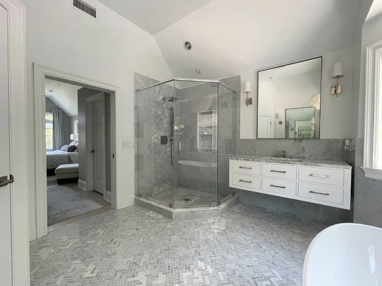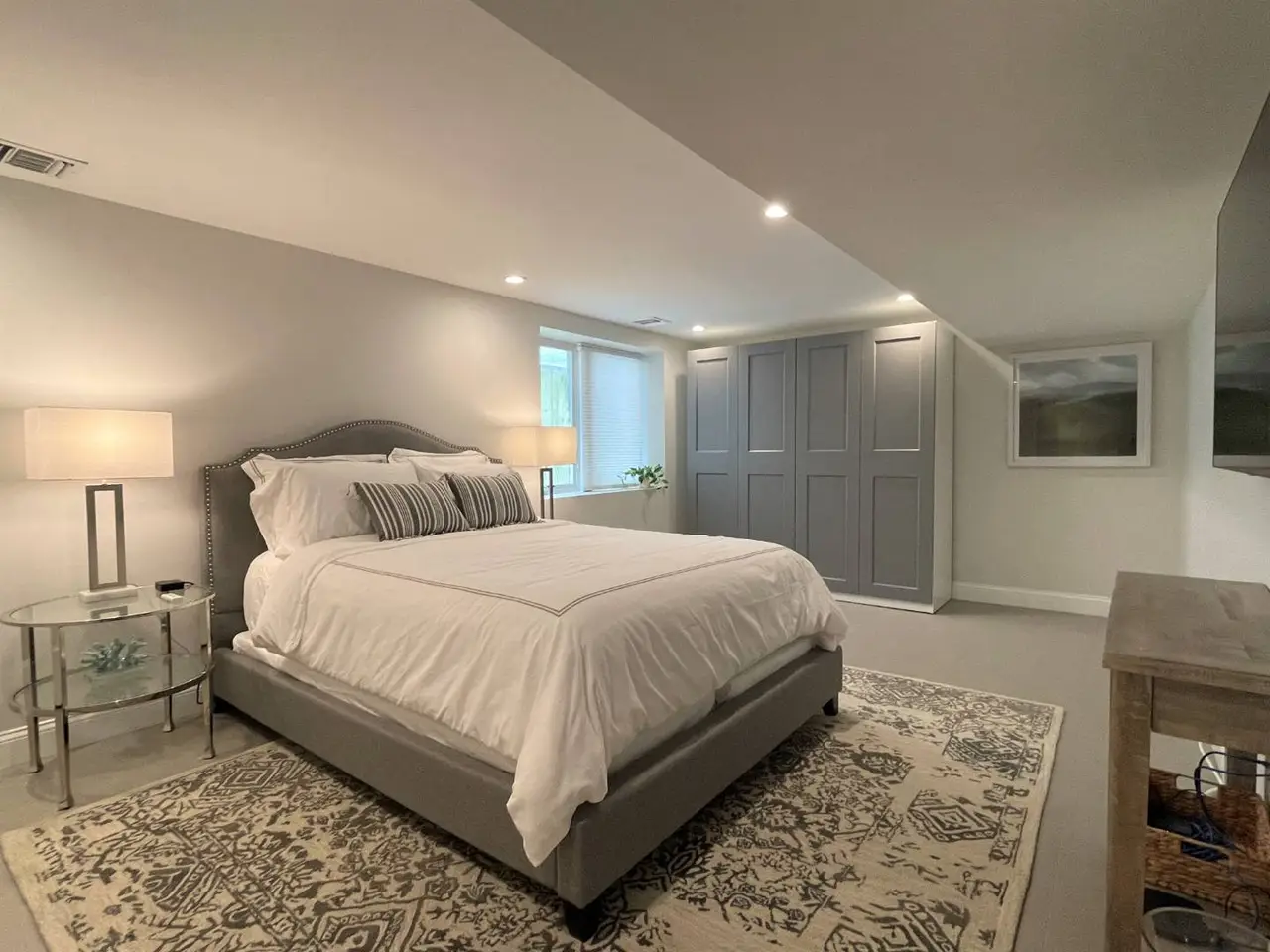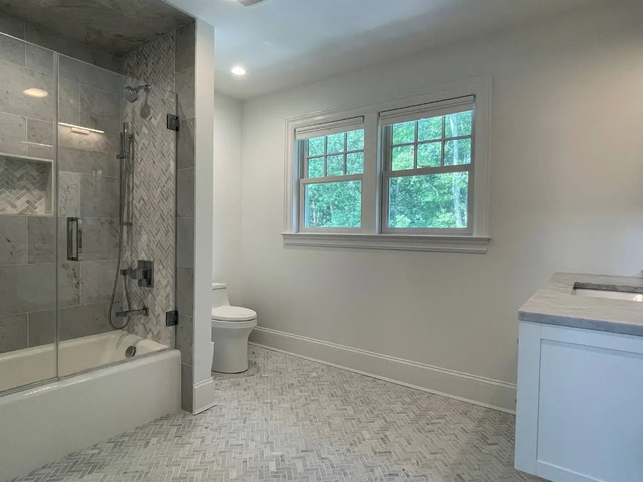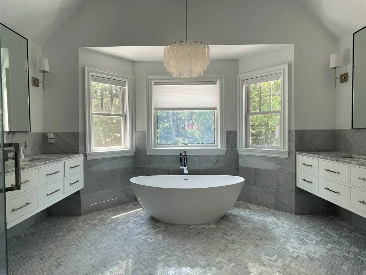 This brand new construction retreat with five bedrooms and four full baths in the Northwest part of East Hampton, has it all. Upon entering the home, to your immediate right is the sun room with vaulted ceiling and gas fireplace. The open floor plan combines a great room with a gas fireplace, dining area, and a gourmet kitchen with Wolf and Subzero appliances that leads to the backyard where a heated gunite pool is surrounded by a bluestone patio with a professional infrared BBQ grill, fire pit, eating area, lounge chairs, hot water outdoor shower, and a lush landscaping nightscape. The ensuite primary bedroom has a soaking tub with double vanities and a surround sound system. Amenities include central-air-conditioning, whole house audio system including outdoor, instant hot water plumbing, smart enabled lights throughout, surround sound system in the great room, large screen wall mounted TV in every room, Westin Hotel Heavenly mattress in all bedrooms (3 King, 1 Queen, and 2 Twins), a work from home office sitting area with balcony, and ping pong table in the lower level. All of this and access to Three Mile Harbor just across the street. Make this your Hampton home for the summer.