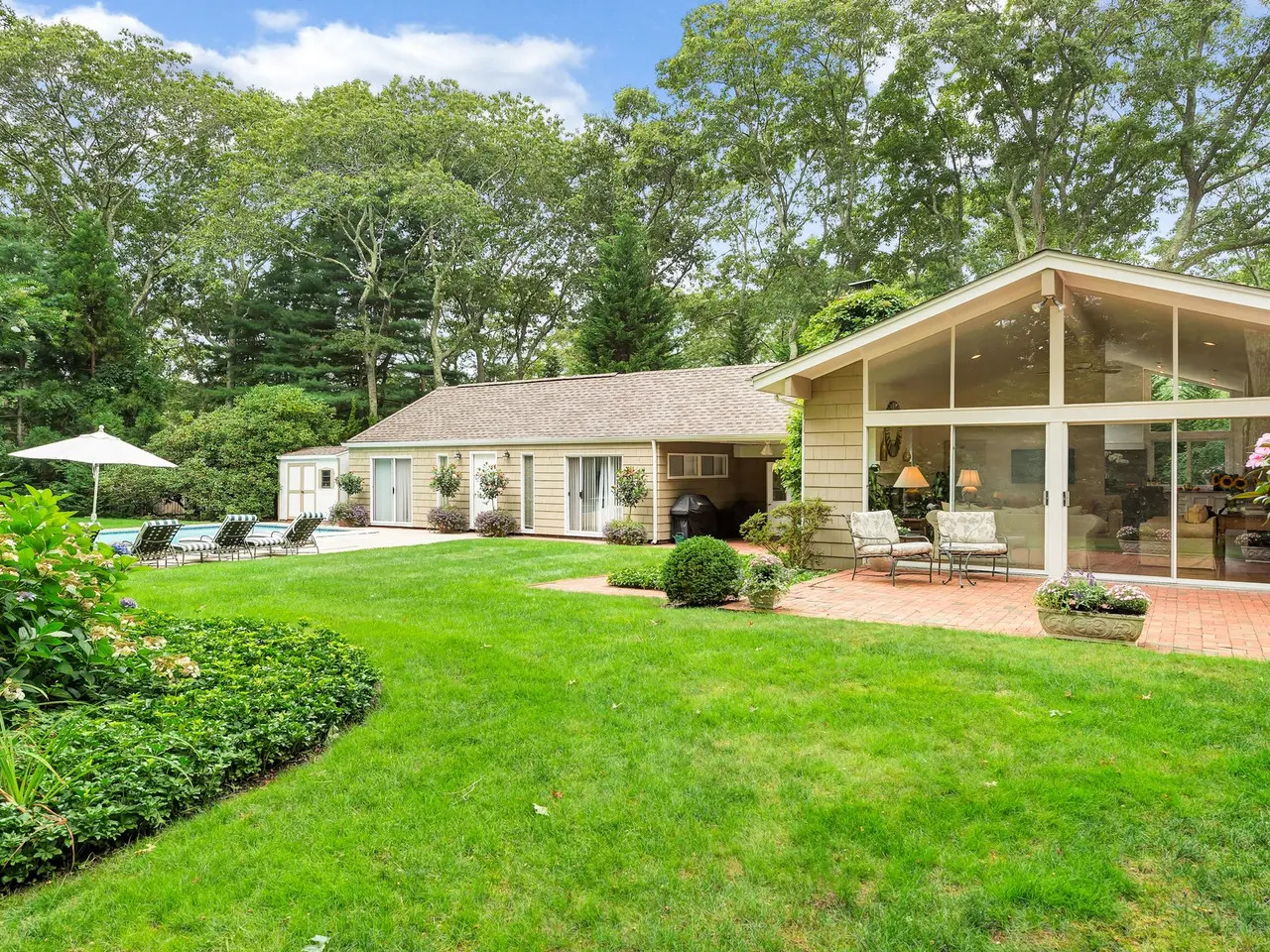 Furnished contemporary privately situated on a beautifully landscaped parcel with mature trees and flower gardens. Living room with fireplace; dining room, kitchen, five bedrooms and three bathrooms. Amenities include air-conditioning, cable television, patio, pool house (with recreation room, two bedrooms and bath), and a 20'x40' Gunite pool. Close to restaurants, Georgica and Main Beach. Listing ID: 735652
