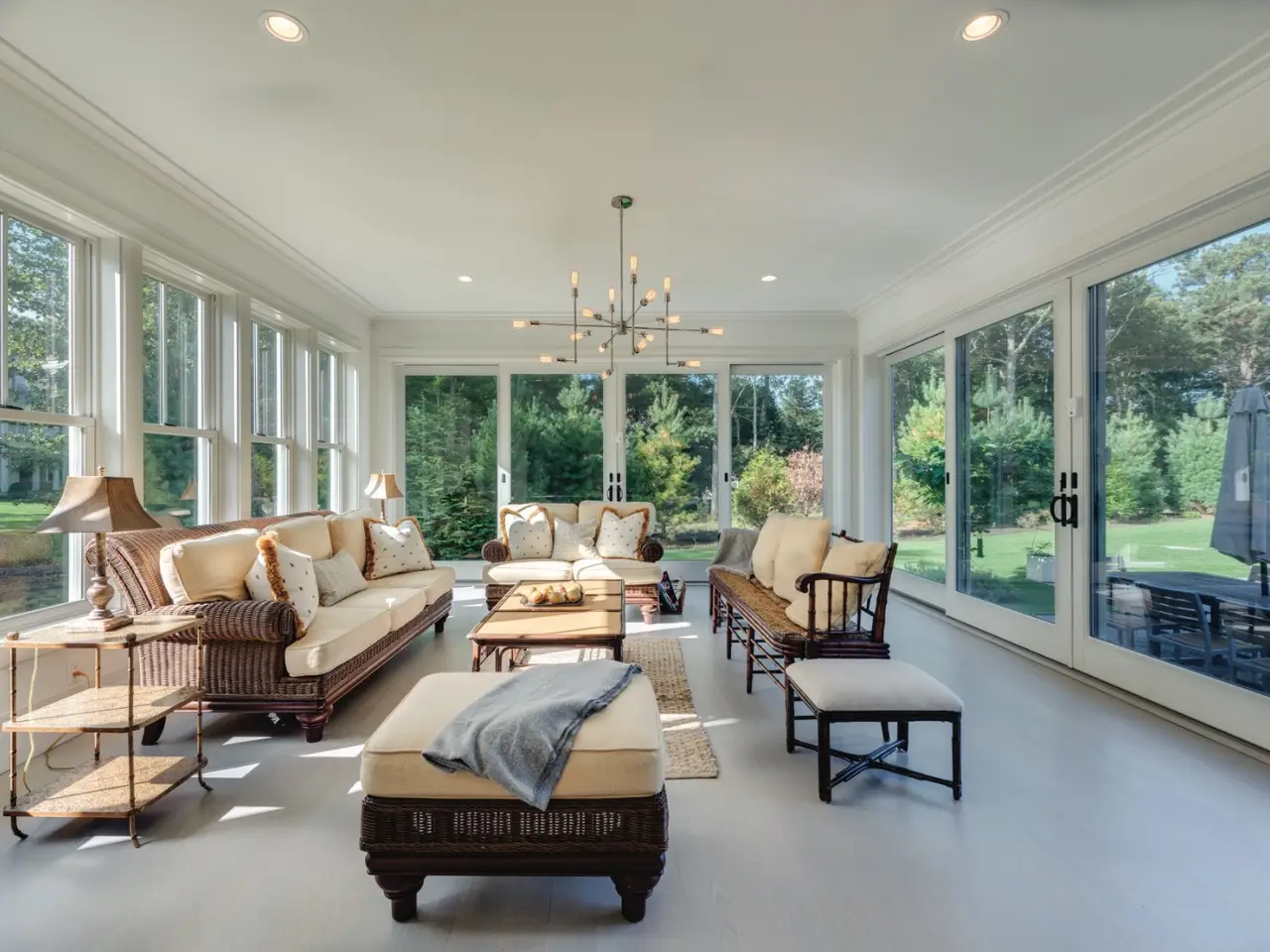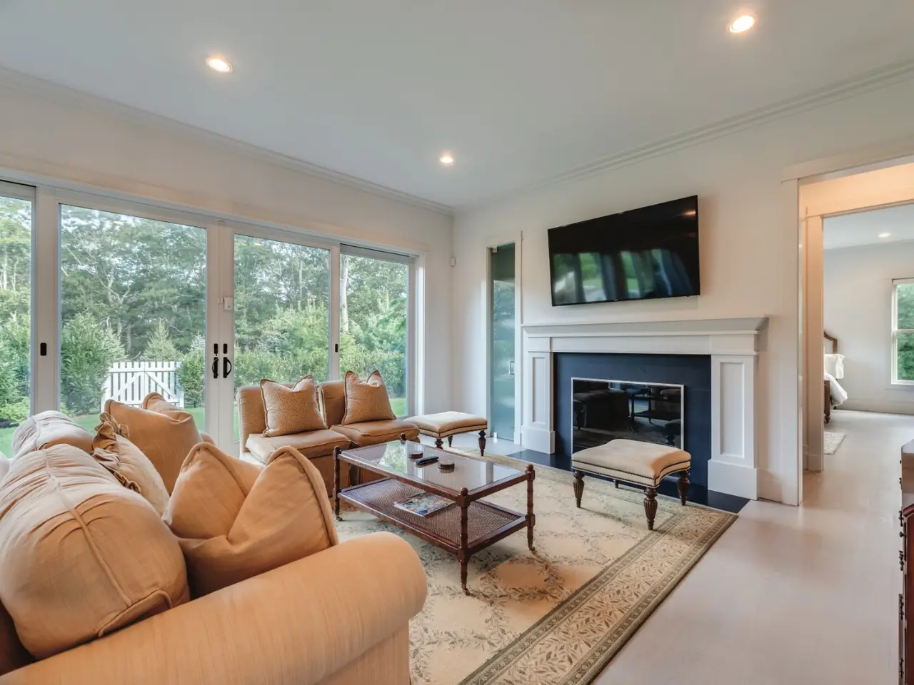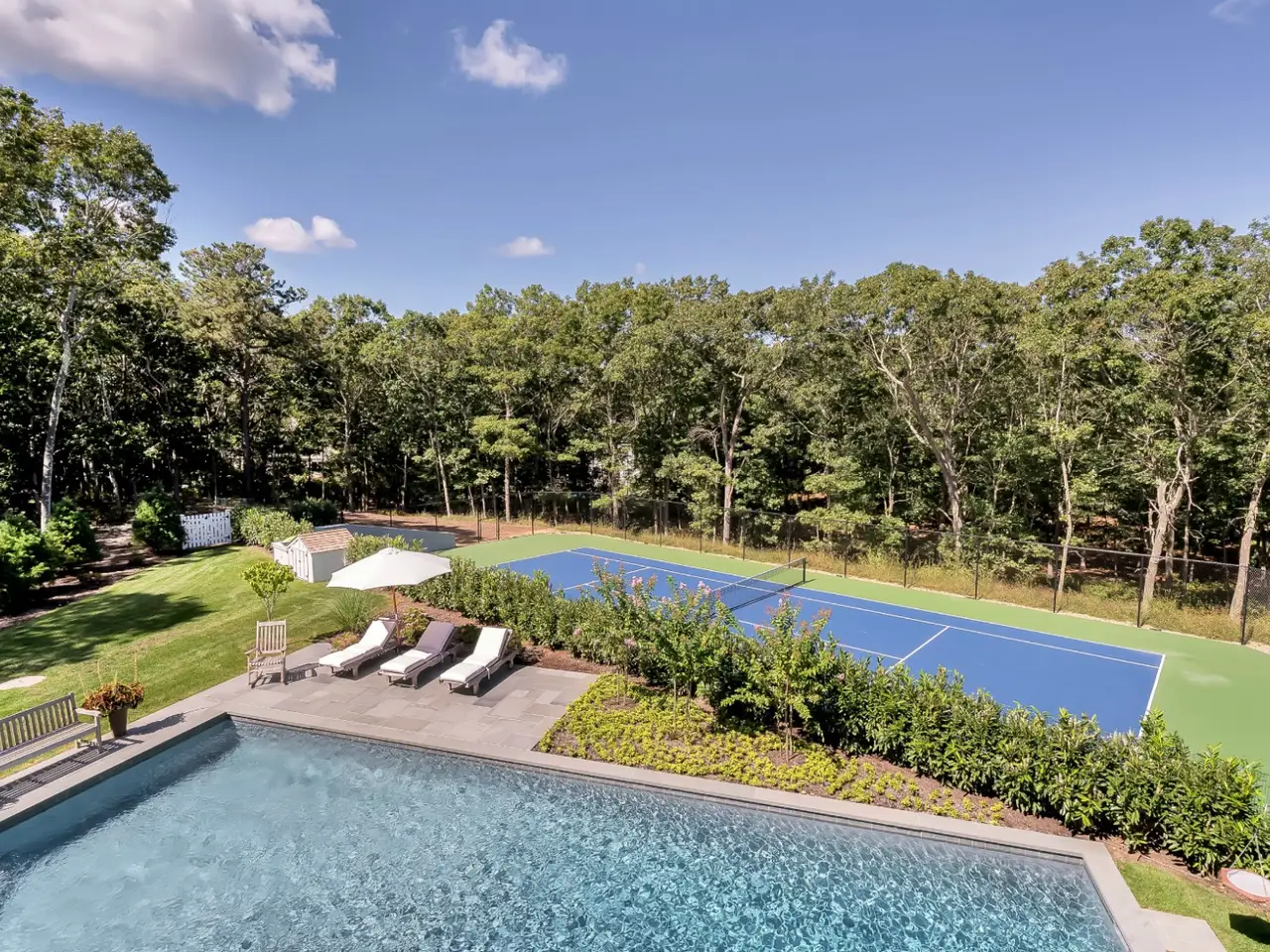 Rental Registration # 22-223. This newly constructed custom home offers resort-style amenities. Light-filled open living areas all have walls of glass opening to the grounds for indoor-outdoor living. These include a living room with fireplace, sunroom, formal dining area, and eat-in kitchen featuring island with seating, top-grade stainless steel appliances including wood-paneled Sub-Zero refrigerator/freezer and separate Sub-Zero refrigerator drawers, Wolf range, Italian-inspired custom cabinetry and breakfast area with expansive banquette. The six exquisite bedrooms and six and a half baths include three master suites incorporating features such as multiple fireplaces, sitting room, huge walk-in closets, luxurious baths and private roof terraces perched over the beautifully landscaped grounds. Pick your favorite spot and relax in the sun-drenched open living room or sunroom, or sit quietly with a good book behind 8' tall glass doors in the library. The finished lower level includes huge recreation areas with two fireplaces, glass-partitioned office or gym area, a bedroom and bath with private separate entrance, and a laundry room. The thoughtfully landscaped grounds provide a lovely and private setting for the heated gunite pool and bluestone patio with ample room for outdoor dining and lounging. Steps away, a private, all-weather tennis court. This masterfully designed home is located in a private upscale neighborhood a short way across the street from one of the prettiest bodies of water in the Hamptons. Updated for winter 2021/22 and summer 2022.