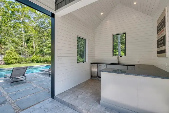 Sycamore Drive your new favorite place to call home! This modern gem features four spacious bedrooms and three and a half baths, all set on a generous half-acre in the vibrant Springs area. As you step through the door, you're met with impressive soaring ceilings and incredible floor-to-ceiling windows that fill the home with natural light. The polished concrete fireplace adds a sleek touch to the open layout, while the 8" white oak flooring brings warmth and elegance throughout. The heart of the home is the custom-designed kitchen, featuring top-of-the-line Thermador appliances and an island topped with an Arctic white and gold vein 2.5-inch quartz countertop. The primary bedroom boasts a luxurious ensuite bath in addition to sliders out to the back deck. There are also two spacious additional bedrooms, each equipped with a generous closet. Need extra space? There's a versatile office or den with a closet, perfect for work or play. Venture to the 2000 sq ft finished expansive lower level, designed for comfort and entertainment. With 9-foot ceilings and an en-suite bedroom, there's plenty of space for everyone to enjoy. The recreation area is perfect for movie nights or game days, and the mechanics room offers ample storage solutions. Plus, enjoy seamless indoor-outdoor living with double French doors that lead to your backyard oasis. Step outside onto your stunning 400 sq. ft. mahogany deck to a beautifully landscaped yard complete with a stylish pool house, equipped with a kitchenette, bath, and outdoor shower right beside a heated 18x38 gunite pool with blue stone patio. This space is tailor-made for summer lounging and epic gatherings with friends and family. Nestled just outside the Historic Springs district. You're only minutes from the breathtaking beaches on Gerard Drive and just a quick ten-minute drive to East Hampton Village, putting you in the best of Springs.