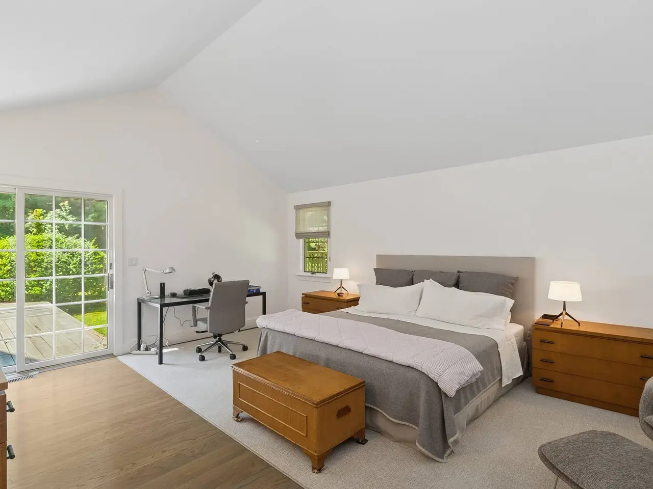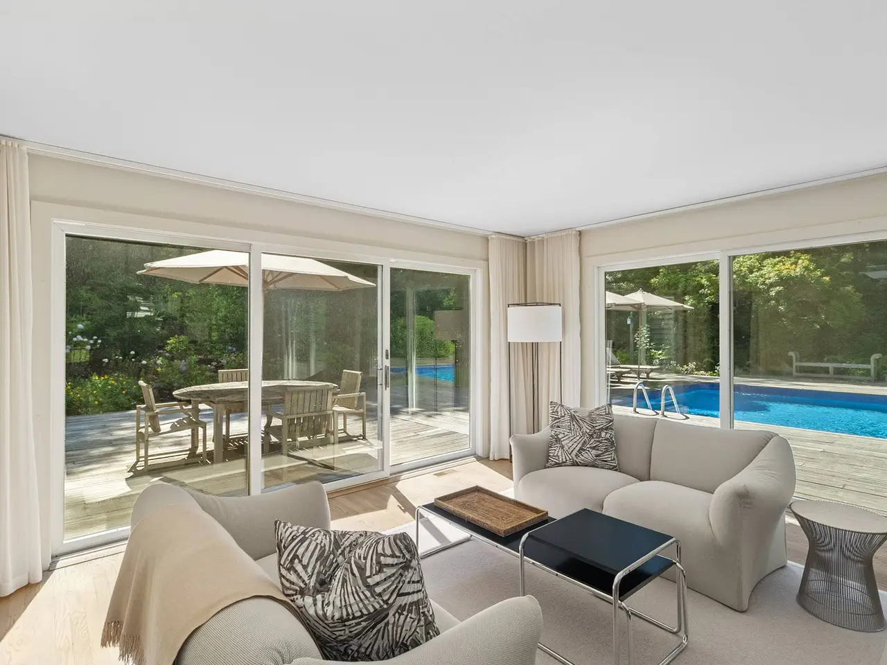 Set on 2.26+- private acres close to both East Hampton and Sag Harbor Villages, this three-bedroom traditional offers the perfect blend of comfort, style, and indoor-outdoor living across 2,100+- sf of living space. Thoughtfully designed for entertaining and relaxation, the home features a spacious living room with two sitting areas and a wood-burning fireplace. Multiple sets of glass sliders flood the space with natural light and lead to an expansive deck, where lounge and dining areas surround the pool, creating a true outdoor oasis. The kitchen is equipped with integrated refrigeration and modern updates, making it as functional as it is attractive. With three bedrooms and two and a half bathrooms currently, there's potential to expand the existing 1st and 2nd levels to 7,000 sf in addition to finishing the lower level. A detached two-car garage offers additional convenience, while the peaceful setting ensures privacy without sacrificing proximity to the best of the Hamptons.