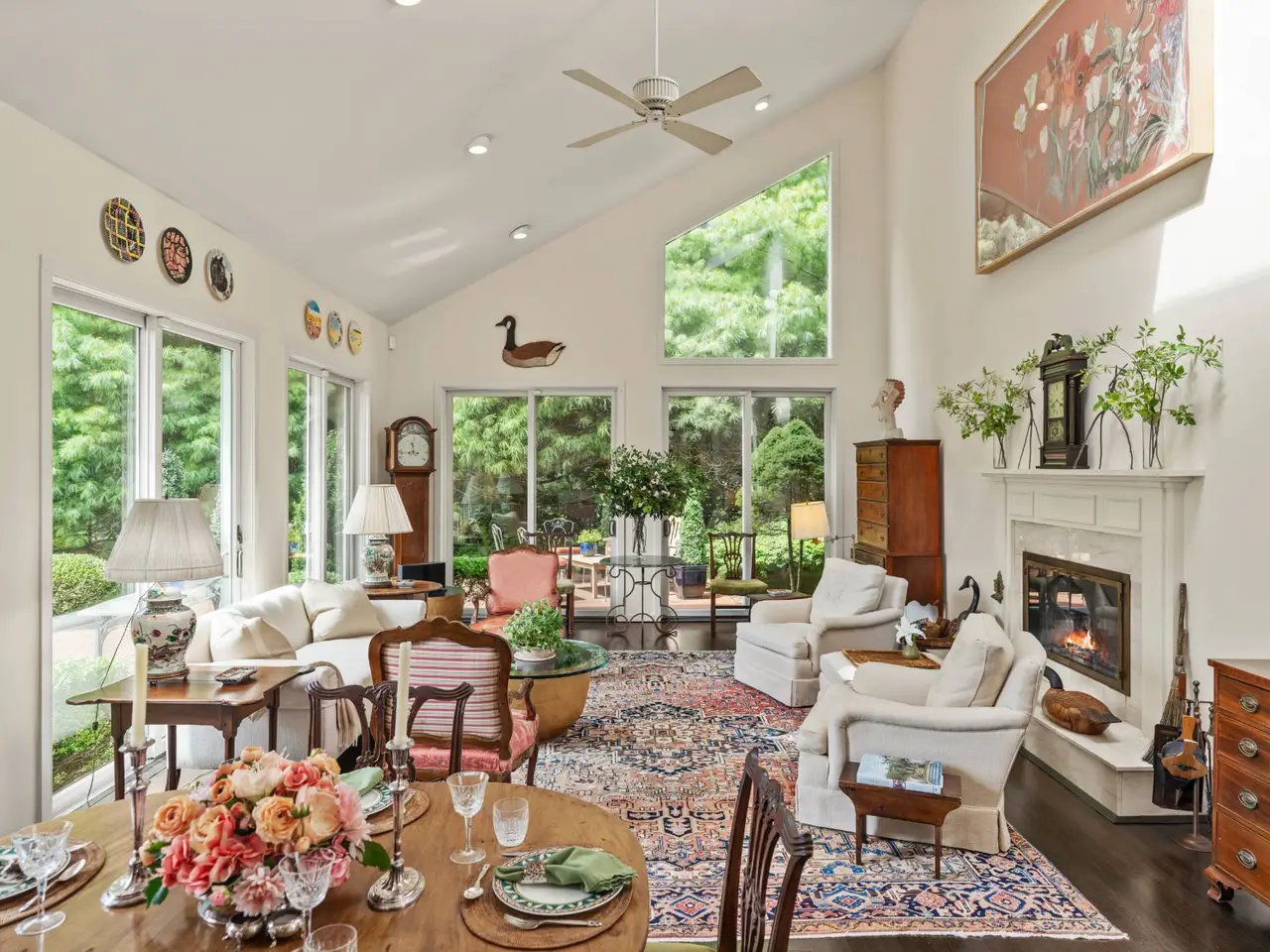Cathedral ceiling with fireplace Borders reserve for privacy