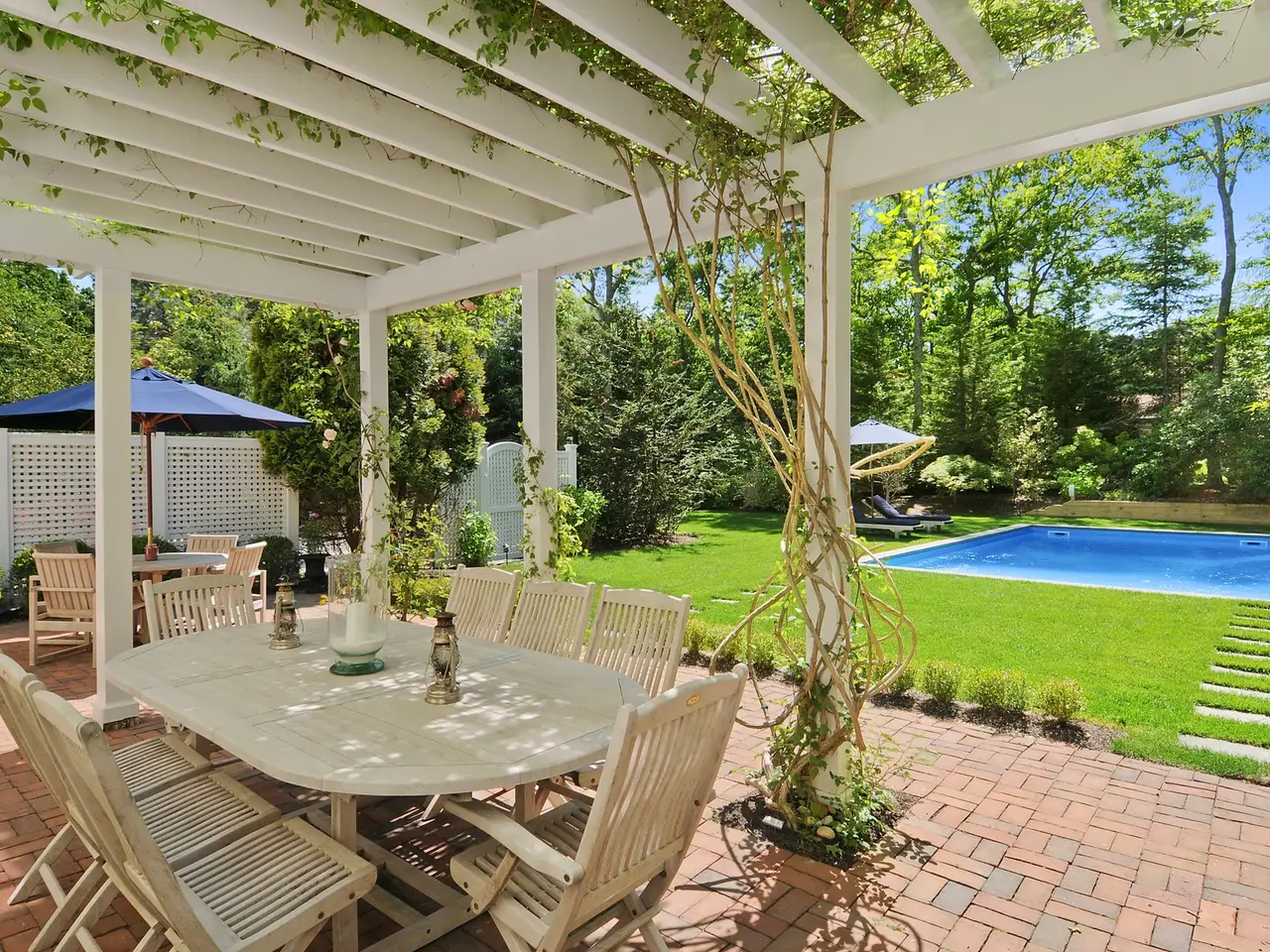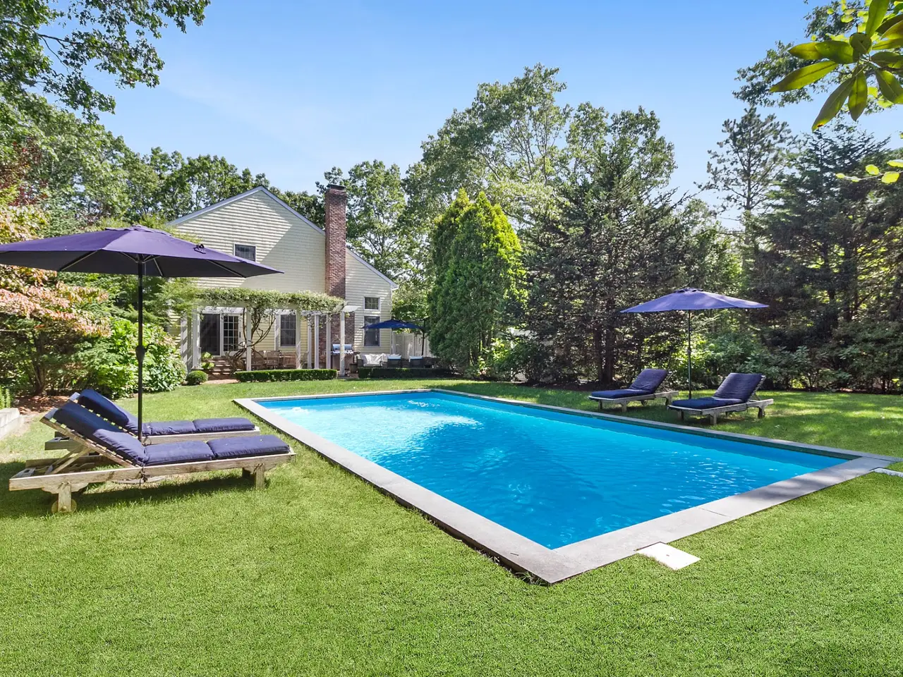 This quintessential Hamptons home features five bedrooms, three and a half baths and plenty of living space for the perfect summer getaway. Boasting a large double-high living room with a fireplace, dining area and open kitchen, this home has it all. The first floor is equipped with a generous master suite, half bath, and guest bedroom, while the second floor has an additional master suite and two additional guest bedrooms. The property is rounded out with a heated saltwater pool, surrounded by meticulously maintained landscaping, designed by a renowned horticulturist. Conveniently located, this is the ideal summer escape.