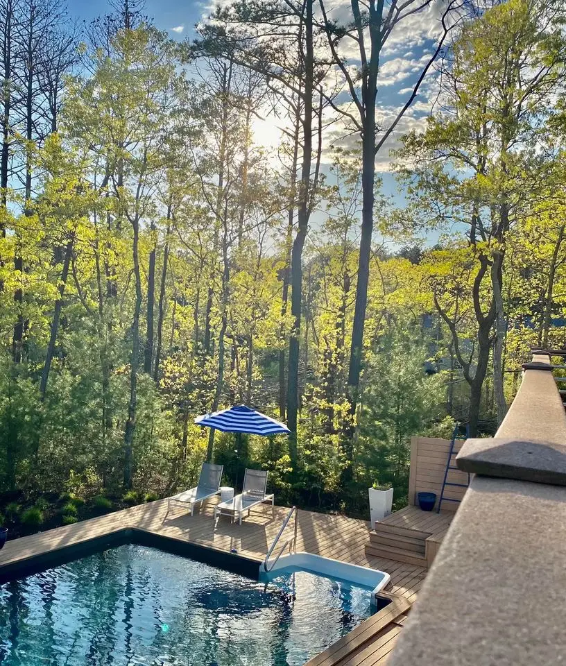 Rental Reg#:24-221. Renovated oasis inbetween Sag Harbor Village and East Hampton Village...natural light pouring in from every angle. The home is designed for outdoor/indoor entertainment with wrap-around decks, outdoor dining spaces with views of nature, and also overlooking the heated pool and large hot tub, complete with outdoor shower. The main living level features a generous size master bedroom with en suite bathroom, and balcony. The eat in kitchen, with plenty of dining space, leads to the wraparound deck and outdoor dining. Enter the spacious open living room with a wood-burning fireplace and great room for entertainment. There are two private and very well-appointed bedrooms on the lower level and they both lead to the pool. Relax in the open-air outdoor living room. Enter into the property down a beautiful stone driveway. Bay beaches minutes away and bike trails across the street. This home is a wonderful place to spend your summer days. Listing ID: 888034.