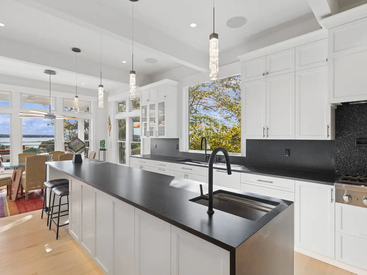 Welcome to 64 Three Mile Harbor Road, a stunning waterfront rental in East Hampton. Turnkey, completely renovated in 2025, and simply immaculate the property is sited on nearly 3 acres with pool, pool house and 286+/- feet of direct water frontage on Three Mile Harbor. Four bedrooms, five bathrooms, one half bath, and 4,500 square feet of stylish interiors including the finished walk out lower level. The water views stretch from the front door, through the gorgeous foyer, all the way into the double height great room. Here, walls of glass overlook the outdoor entertaining areas and the harbor. Every bedroom is designed as a private suite, offering comfort and elegance. Impeccable craftsmanship and sophisticated finishes define this complete renovation with open, light-filled interiors and a seamless connection between indoor and outdoor living spaces. Enjoy the serenity of the 2.94+/ acres at this waterfront rental just minutes from East Hampton Village, sparkling beaches, and marinas.