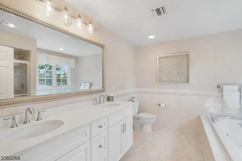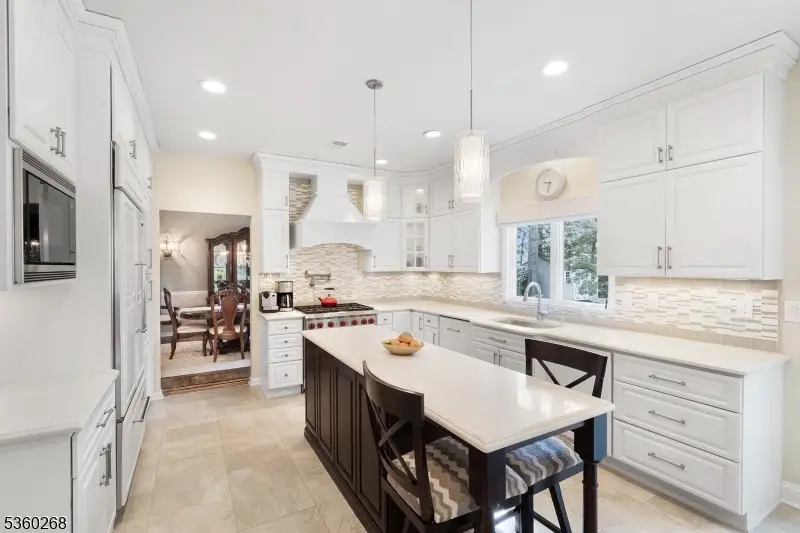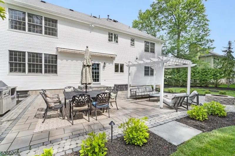 Outstanding brick front Center Hall Colonial set back beautifully on spectacular showcase property in a welcoming cul-de-sac neighborhood- a truly compelling luxury home abounding with custom amenities. 9 rooms including 4 airy bedrooms, 3 full baths, powder room, and brimming with many desirable features and captivating details, including volume ceilings, custom millworker, stylish lighting, lustrous hardwood flooring, and a newly renovated designer kitchen. This 3203 sq ft homes has a comfortable, spacious floor plan and seamless flow with the added utility and comfort of a sprawling finished lower level with full bath and kitchenette, plus a two-car attached garage, paved driveway with ample parking, expansive rear patio area with pergola, fire pit, and barbeque island, walk-in storage shed, pancake flat lawns with exquisite landscaping, and rear yard with tree-lined borders on three sides ensuring the utmost backyard privacy. Other notable features include abundant closet space, six-panel interior doors, neutral interior color scheme, central fire and security system including outdoor camera and Ring doorbell, newer 75-gallon hot water heater, no-maintenance brick and vinyl exterior siding, worry-free public utilities (all underground), and desirable cul-de-sac location; expertly maintained, skillfully updated, and move-in ready. An ideal commuter-friendly location offering easy access to connecting major roads and highways, and less than 23 miles to Newark airport.