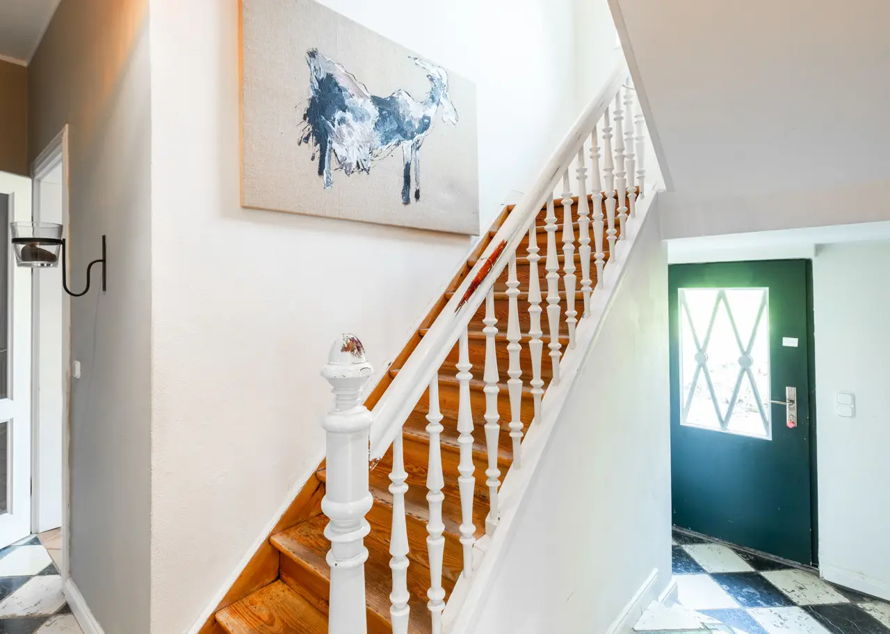 Make your dream home come true: a "town villa" in popular Eckernförde is looking for a new owner! This characterful property in a central location was built around 1920. The house impresses with its architecture and the very attractive, central location not far from the harbor and the popular shopping streets of Eckernförde. The total living space of 300 m² is spread over the ground and upper floors. There is the option of creating two residential units here. A total of nine generously proportioned rooms are available to the discerning owner. Extensive renovation and refurbishment work was carried out between 1997 and 1998. Care was always taken to preserve old stylistic elements that reflect the charm of the property. You enter the house via a beautiful entrance door, tastefully tiled in a chequerboard pattern, and reach the vestibule with space for your checkroom. It continues straight into the spacious hallway, from which the guest WC, the kitchen and the living, working / dining area lead off and the fireplace room provides for cozy hours. The modern kitchen has wooden fronts and the electrical appliances are from brand manufacturers. The floor in the kitchen was deliberately covered with gray screed, which is atmospherically very successful due to the combination of warm wooden fronts and the industrial flooring. The old, beautiful wooden floorboards in the bedrooms have been retained and can be found in all the other living spaces. As contemporary witnesses to the year of construction, they create an authentic living ambience. The choice of floor coverings, the color scheme and the existing wooden elements blend in very tastefully with the classic old building. The upper floor is accessed via a wooden staircase that blends harmoniously into the overall living concept. The upper floor is divided as follows: Three children's / study rooms, a master bedroom, a dressing room, a kitchen (option to convert 2,bathroom) and the full bathroom with shower and bathtub. One of the rooms leads out onto the balcony, where you can start the day with a cup of coffee. The house has a total of 9 rooms, including 6 bedrooms and 2 bathrooms. The room layout is optimally designed and offers enough space for individual design options. The property has central heating and is characterized by a special quality of furnishings. Particularly noteworthy are the fireplace, the garage parking spaces, the beautiful garden, the terrace, the balcony and the sauna, which invites you to relax. Overall, this beautiful property impresses with its good room layout with high ceilings, old style elements and excellent location. But that's not all: the house has a partial basement. There is a boiler room and additional storage space. A stroke of luck for all lovers of old buildings! Be enchanted by the elegant flair of this house and seize the opportunity to find your new home or investment. Arrange a viewing today and see the benefits of this property for yourself.