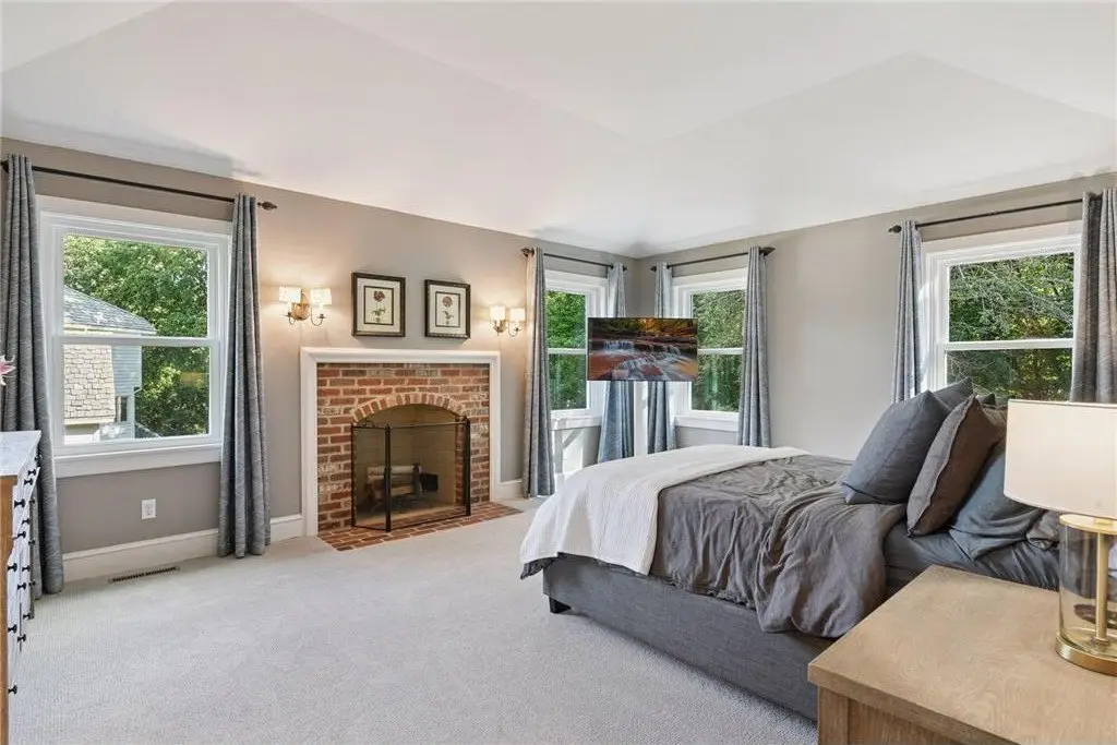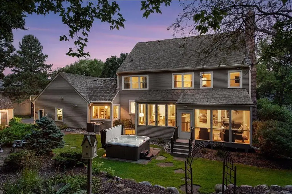 Welcome to this exceptional custom-built New England style masterpiece, tucked within the coveted Olympic Hills Golf Course community. Perfectly situated on a premier lot, this home offers breathtaking panoramic views of Purgatory Creek and an unparalleled blend of elegance, comfort, and timeless charm. From the moment you step inside, you’ll be captivated by the architectural detail, sun-drenched spaces, and warm yet sophisticated design. The gourmet chef's kitchen showcases high-end appliances, including a six-burner Viking cooktop, dual Thermador oven, and a Sub-Zero refrigerator/freezer, offering professional-grade performance with refined, elegant design. Custom white enameled cabinetry, and a large center island, perfect for gatherings and culinary creativity. Adjacent to the gourmet kitchen, this space features a thoughtfully designed butler’s pantry and a planning center—perfect for entertaining, organizing, and everyday convenience. Step inside and feel the inviting coziness and charm throughout this lovely home. Features include: ALL NEW WINDOWS throughout (July 2025 w/ a lifetime warranty). Formal living room highlighted by custom built-ins and a beautifully detailed decorative ceiling, creating an elegant space for both relaxation and entertaining. Spacious main floor family room with rich millwork and custom built-ins accenting the classic brick wood-burning fireplace, offering warmth and character to the heart of the home. Formal dining room boasts gleaming hardwood floors and striking reclaimed wooden beams on the ceiling, combining timeless elegance with a warm, inviting atmosphere—perfect for entertaining and special gatherings. A bright and inviting sunroom, bathed in natural light from an array of windows, featuring a custom planning desk and a decorative see-through gas fireplace, bringing both warmth and charm to this welcoming space. The room you’ll never want to leave, a beautifully appointed 3-season porch featuring low-maintenance decking, a decorative see-through gas fireplace, stylish shiplap on walls and ceiling, and framed views of nature, creating the perfect harmony of comfort, charm, and tranquility. Spacious mudroom featuring a custom-built coat center complete with bench seating—designed for both organization and everyday functionality. Generous main-floor home office boasting custom-built cabinetry and serene views of the surrounding woods, offering a peaceful workspace immersed in nature. The main floor features a generous laundry room complete with custom cabinetry, a utility sink, and a dedicated folding area... The upper level showcases a spa-inspired primary ensuite, complete with a separate soaking tub and walk-in shower, dual-sink vanity, spacious walk-in closet, trayed ceiling, and a classic decorative brick W/B fireplace, elegance and comfort seamlessly combined. The upper level is completed with three additional generously sized bedrooms, a full bathroom featuring a dual-sink vanity, and a loft area equipped with a custom built-in study desk. The lower level features a spacious media room and game area, a wet bar, a fifth bedroom with an adjoining 3/4 bath, and abundant storage, thoughtfully crafted to combine entertainment, comfort, and everyday practicality. Updates include: NEW CARPET throughout the home(June 2025), 3 NEW garage doors(Dec 2024), NEW washer/dryer(2022), NEW dishwasher(2021), additional Features: oversized heated/insulated garage, garden shed, zoned heat/air, garden shed, outdoor jacuzzi/hot tub, Radon mitigation system, lawn irrigation. Located in one of the Twin Cities’ most sought-after communities, this residence combines classic architecture with modern luxury, All of this, just minutes from award-winning schools, abundant shopping, fine dining, and countless parks, trails, and recreational opportunities, everything you need right at your doorstep... Truly a standout property!