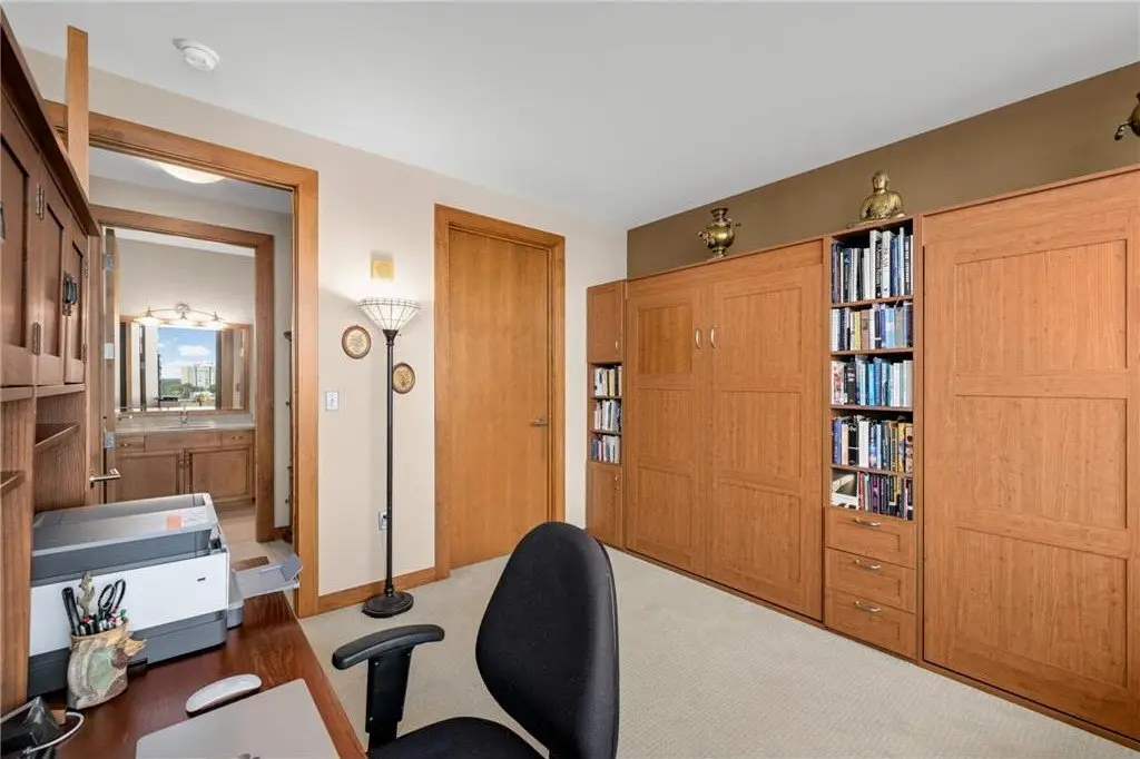 Sensational 2BR, 2 BA highly desirable open floor plan with a split bedroom configuration. Enjoy morning coffee or evening drinks with friends on your own huge covered terrace accessed from 2 separate doorways and plenty of room for lots of flower pots. Inside, this unit features elevated transitional décor, upgraded custom cabinets, and thoughtfully designed built-ins, creating a warm yet refined atmosphere. The gourmet, center island kitchen offers very high-end specialty SS appliances and adjacent laundry rm. The primary suite includes a lg walk-in closet, double vanity, in-floor heat, soaking tub, & separate walk-in shower. The 2nd bedroom has 2 Murphy beds perfect for visitors yet space for an office. The Westin Galleria is perfect for year-round living or as a lock-and-leave landing pad to enjoy Minnesota summers, this home combines comfort and style with unbeatable convenience. Spectacular natural light with Floor-to-ceiling windows that frame vibrant views while maintaining whisper-quiet tranquility. Residents enjoy the luxury of Westin Hotel amenities and services, secure private entrances, resident-only elevators, and a dedicated parking garage. All this in a premier location attached to the Galleria and surrounding shops, dining, and entertainment.