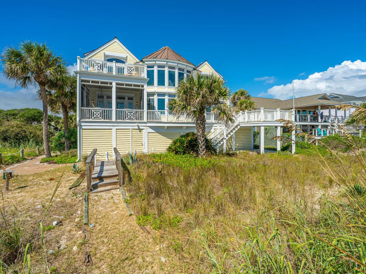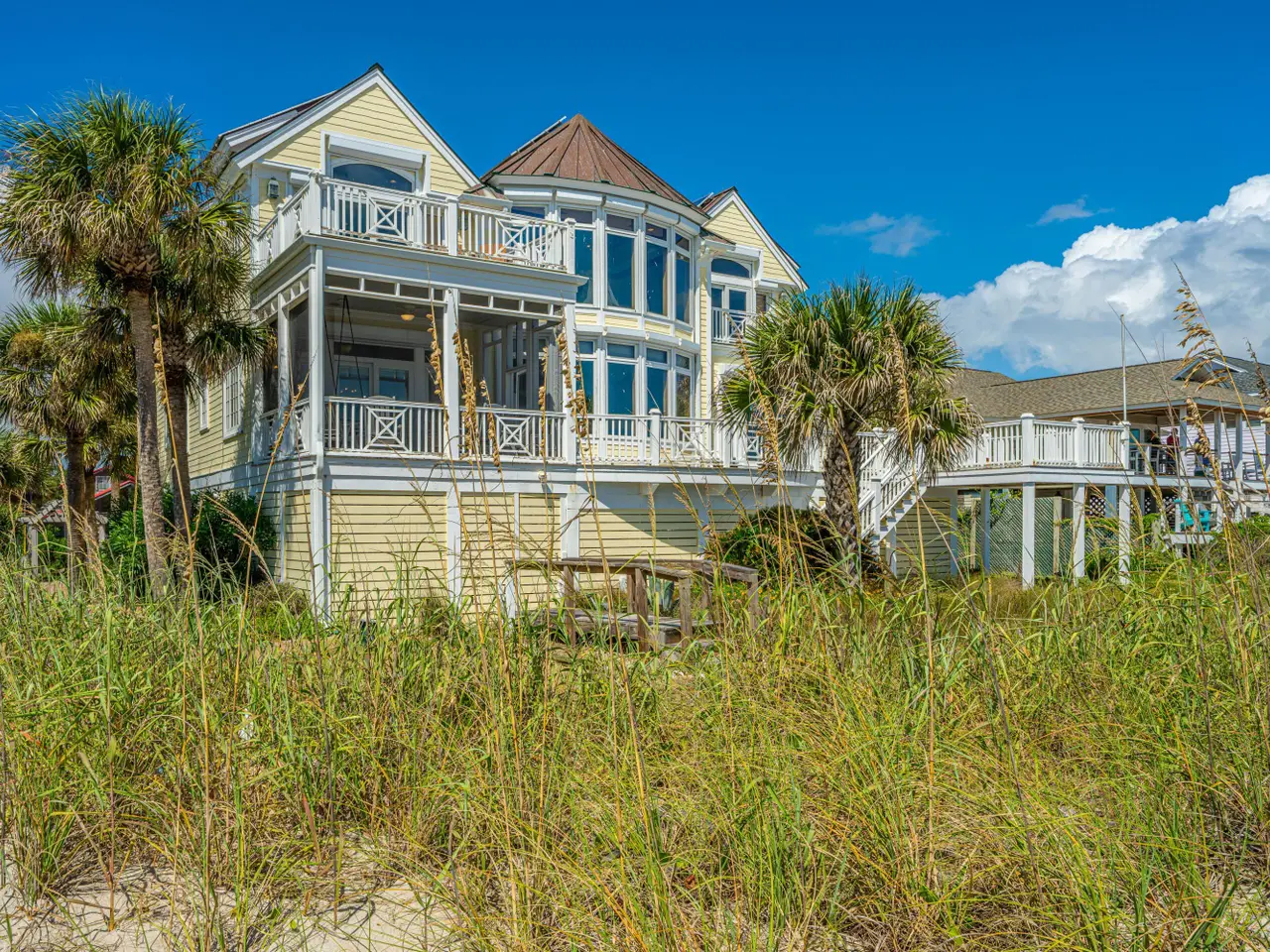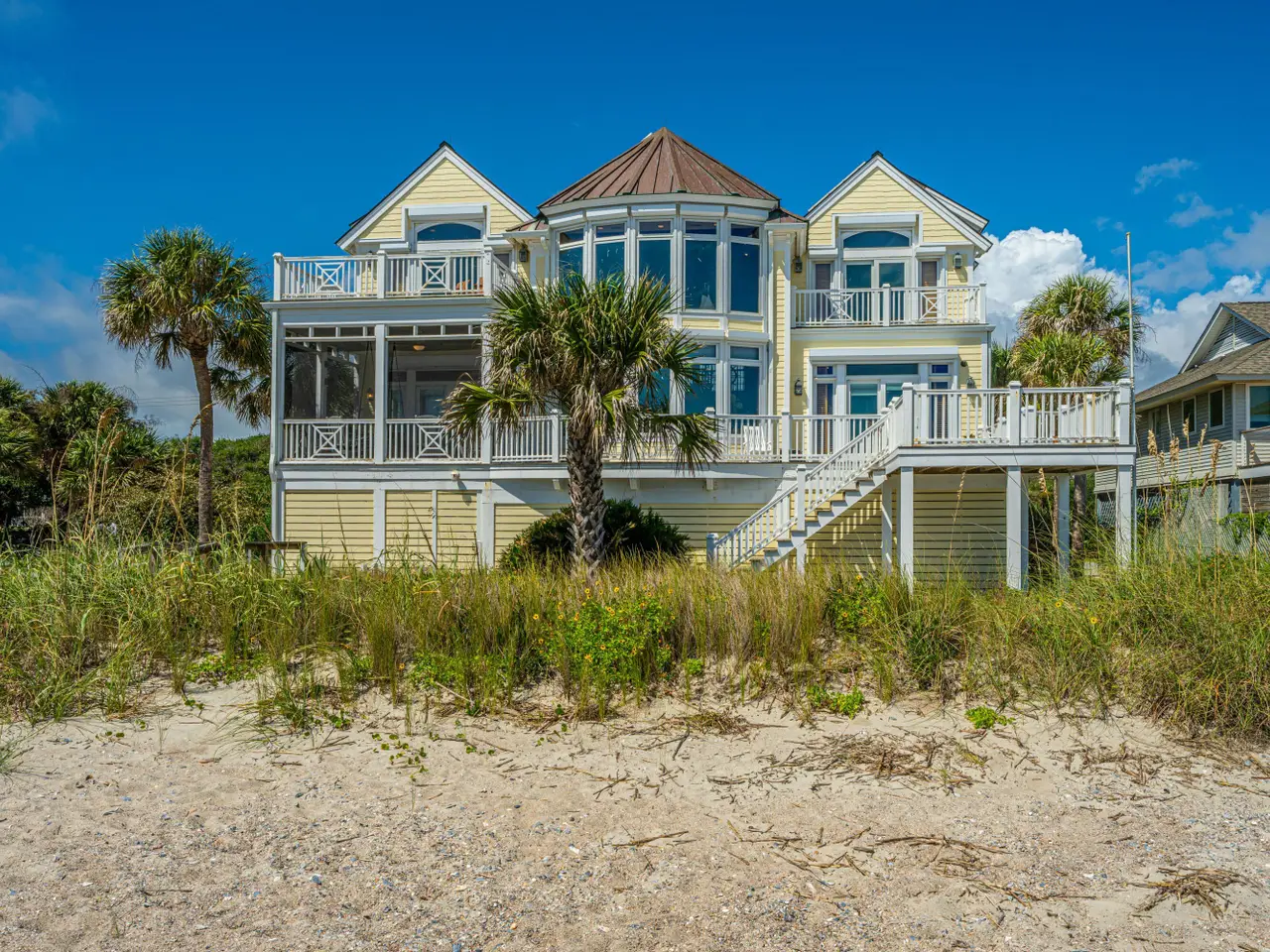 THIS FABULOUS CUSTOM-BUILT OCEANFRONT HOME HAS IT ALL - BEST LOCATION, HIGH-END QUALITY, SPACIOUS SIZE, AND FULLY FURNISHED!! 2-Story vaulted ceiling in great room, gourmet kitchen w/adjoining pantry, 1st level primary master suite facing the ocean & encompassing one entire side of the house, & much much more! Porches & decks embrace the Beach & Ocean. 4 guest Bedrooms share two baths & 4 decks upstairs. Amenities include a 3-stop elevator, floating staircase, gleaming hardwoods, passing pelicans, & custom features in Documents. Vacation Rental Income Projections range from $184,000 to $213,000 per year. EDISTO BEACH AT ITS BEST!!