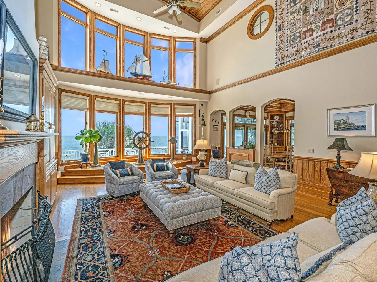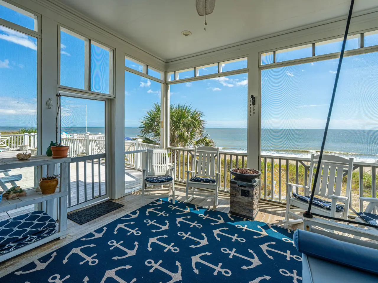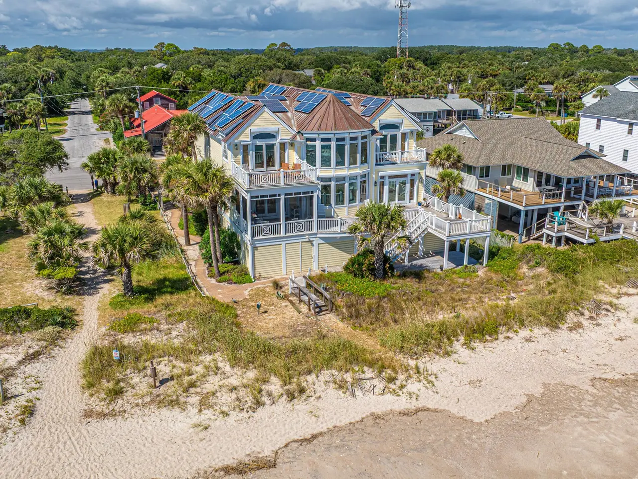 THIS FABULOUS CUSTOM-BUILT OCEANFRONT HOME HAS IT ALL - BEST LOCATION, HIGH-END QUALITY, SPACIOUS SIZE, AND FULLY FURNISHED!! 2-Story vaulted ceiling in great room, gourmet kitchen w/adjoining pantry, 1st level primary master suite facing the ocean & encompassing one entire side of the house, & much much more! Porches & decks embrace the Beach & Ocean. 4 guest Bedrooms share two baths & 4 decks upstairs. Amenities include a 3-stop elevator, floating staircase, gleaming hardwoods, passing pelicans, & custom features in Documents. Vacation Rental Income Projections range from $184,000 to $213,000 per year. EDISTO BEACH AT ITS BEST!!