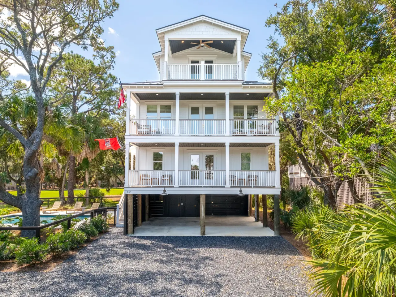 Experience the pinnacle of coastal living in this stunning, newer construction home built by celebrated luxury home builder Christopher Lee Structures. Ideally located in the coveted Ocean Ridge community on Edisto Beach. Designed with the finest attention to detail, this residence showcases sleek contemporary finishes, rich hardwood floors, and a convenient four-stop elevator for effortless access to all levels.Set against sweeping golf course views, the property boasts a sparkling saltwater pool and over 1,120 square feet of outdoor garapa wood porches--accessible from every bedroom and common area--creating the ultimate indoor-outdoor lifestyle.Perfect for entertaining, the expansive great room features soaring ceilings and an open-concept design flowing seamlessly into a chef's gourmet kitchen, complete with quartz countertops, premium stainless steel appliances, and an oversized island, while oversized windows bathe the interiors in natural light and frame the lush golf course backdrop. With 4 bedrooms and 3.5 bathrooms, including dual primary suites, this home offers luxurious comfort for both owners and guests. Each bathroom is elegantly appointed with striking designer tile, custom fixtures, and curated lighting. The top-floor primary suite is a private sanctuary, featuring porches on both sides, panoramic views, and a versatile sitting area ideal for a home office or fitness space. Additional amenities include abundant storage, a golf cart garage, and designated boat parking, ensuring every convenience for island living. This unique custom sanctuary home comes FULLY FURNISHED with custom lux decor and is ready to greet you and your extended family, or serve as the perfect income producing rental property. Situated directly on the golf course and just minutes from the beach, this sophisticated retreat perfectly blends modern luxury with the laid-back charm of Edisto.