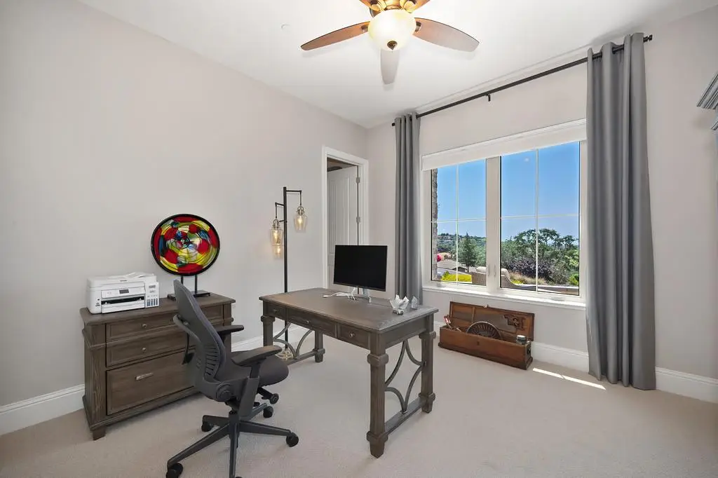 Indulge in ultimate luxury living with this breathtaking single-story home perched on a hilltop, offering views of Folsom Lake in the coveted Serrano Country Club neighborhood. Enter through a charming flagstone courtyard, ideal for relaxing evenings by the gas log fireplace. Inside, you'll find a masterfully designed space featuring an open-concept great room with high-end finishes and upgrades at every turn. From the exquisite French Oak flooring to custom light fixtures with designer finishes, no detail has been overlooked. The home boasts a gourmet kitchen with quartzite countertops and stainless GE Monogram appliances, a home office with custom built-in cabinetry and new carpet in all bedrooms. The Primary lives like a retreat with a spa-inspired bath that promises ultimate relaxation. Multiple pocket doors open to a loggia, where you can enjoy panoramic views of an expertly landscaped yard with fountains, a built-in fire pit, outdoor kitchen, bocce ball court, and a built-in hot tub. A separate one-bedroom, en-suite area offers the perfect sanctuary for in-laws or guests. This stunner has been meticulously maintained and upgraded making it an ideal showcase property for its lucky new owner. OWNED SOLAR with 2 Powerwalls for backup/storage. Truly a once in a lifetime home!