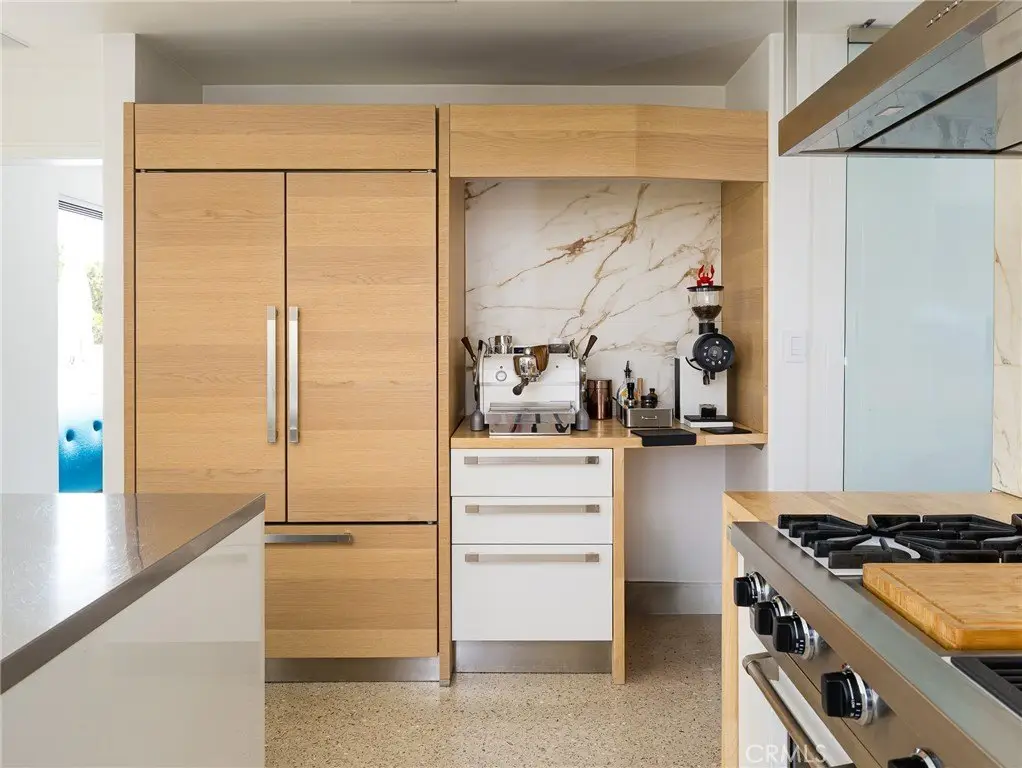 Perched on one of El Segundo’s most elevated and sought-after streets, this fully updated Mediterranean luxury estate sits at the end of a quiet cul-de-sac, offering unobstructed, breathtaking views of the city skyline. With over 4,500 square feet of refined living space, this home was thoughtfully designed for both elegant living and effortless entertaining. Upon entry, you're greeted by a seamless blend of indoor and outdoor living. Both levels feature 16-foot stacking glass multi-slide doors, creating a smooth connection between the sunlit interiors and expansive outdoor terraces. The result is a true entertainer’s dream, where panoramic views and sophisticated finishes set the tone. The first floor offers a media and entertainment space unlike any other, complete with a 97” Samsung TV, embedded Bowers & Wilkins speakers, a handcrafted terrazzo glass bar, sleek fireplace, wet bar, and custom feature wall. Slide open the aforementioned doors to reveal a beautifully remodeled backyard perfect for entertaining. This level also includes a large primary suite with a fully updated bath, a second spa-like bathroom with sauna situated between two spacious bedrooms, and a conveniently located laundry room. Upstairs, the gourmet kitchen—crafted by Euroconcepts of Beverly Hills—features Italian Arclinea custom cabinetry, Sub-Zero refrigeration, Wolf appliances, an espresso bar, floating hood, and sweeping neighborhood and park views. The open-concept layout flows into the stylish living room, anchored by a modern fireplace and opening to an expansive deck—ideal for indoor-outdoor gatherings. The second-floor primary suite is a sanctuary of its own, boasting high-end finishes, a huge walk-in closet, a dedicated laundry area, and an updated bathroom with separate tub and shower. Two additional office spaces and another upgraded full bath complete the upper level. Additional highlights include: central air conditioning throughout, a private elevator, an oversized driveway fitting multiple cars, and two separate garages offering a total of three garage spaces A rare offering with commanding views, cutting-edge design, and exceptional functionality—this estate is a must-see for buyers seeking luxury living in El Segundo.