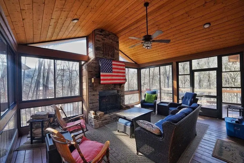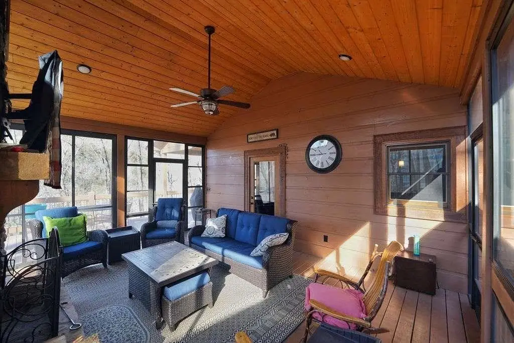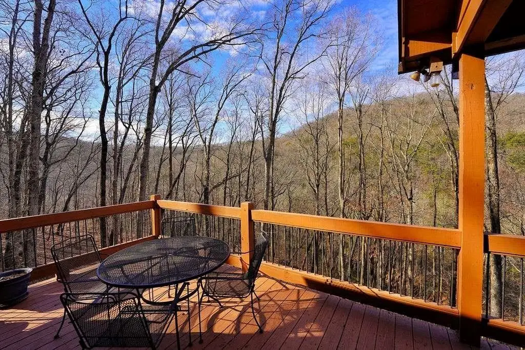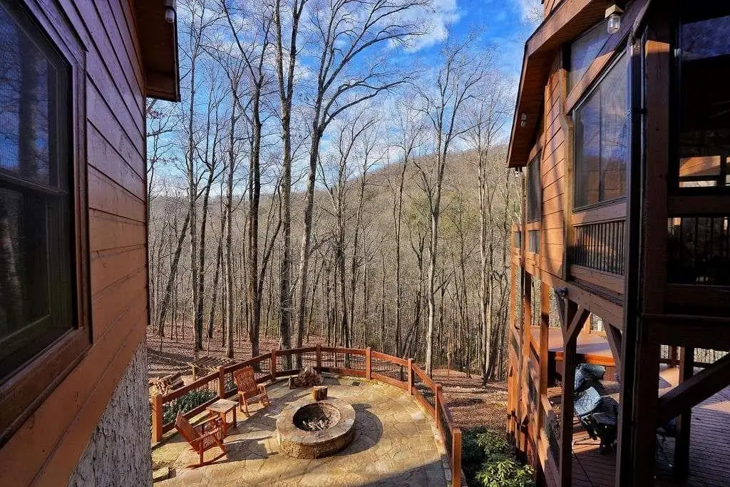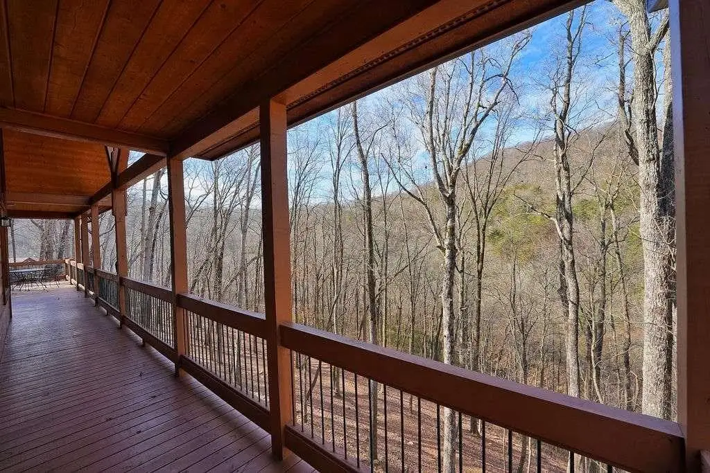 Nestled in the heart of the North Georgia Mountains, this exquisite and charming mountain home in Falling Waters hosts an unparalleled blend of luxury and nature with 2.3 tastefully landscaped acres, creek access and breathtaking views. With over 3600 sq ft of living space, each level will make your jaw drop. The main living floor includes the family room with stacked stone fireplace, chef's kitchen with custom cabinetry and stainless steel appliances, large laundry room/utility room downstairs, home office space, primary suite, plus an additional spacious bedroom and bath. On this level outside is a screened-in living space with a cozy wood burning fireplace. The terrace level is home to two large bedrooms and bathrooms, a full home gym, stacked stone fireplace, and a wet bar. Custom cabinets, granite countertops, high-end finishes and modern touches are found throughout the home. Expansive decks adorn the entire back of the house and overlook a large flagstone firepit area, a sauna and hot tub, all of which stay with the home! This home is the most perfect blend of natural beauty and modern comfort. Truly a must see! Newly built outdoor shed. Samsung front load washer and dryer stay.