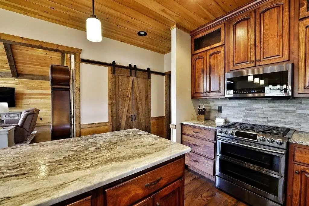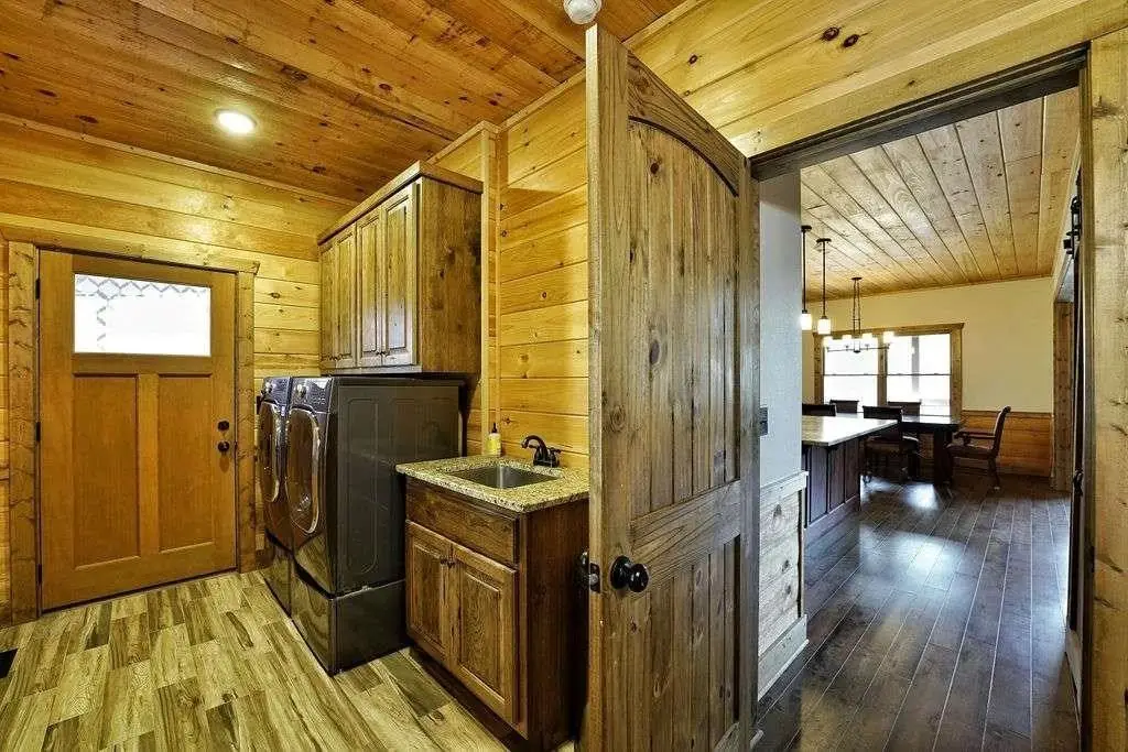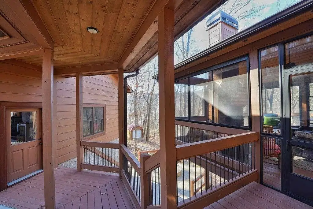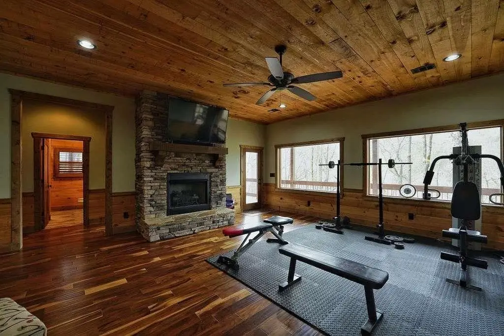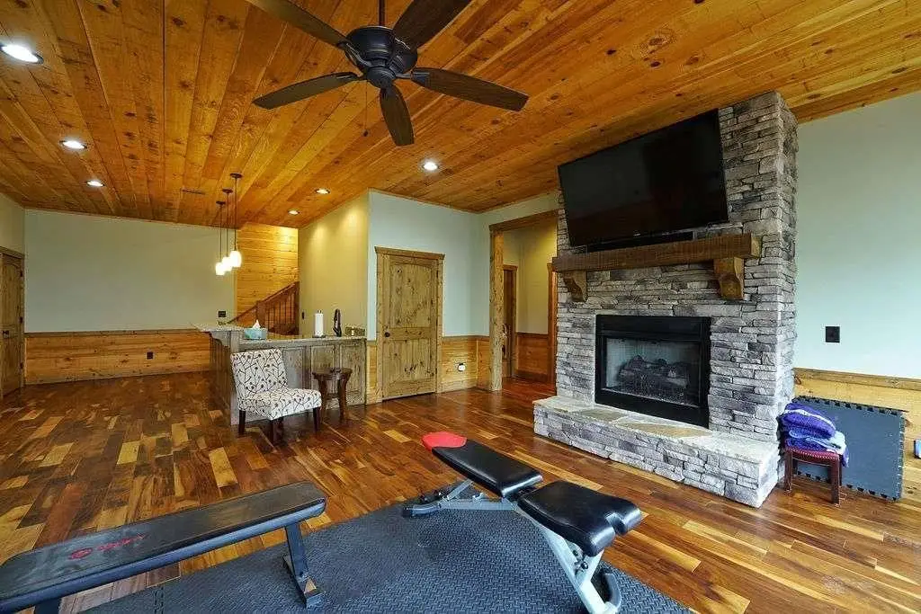 Nestled in the heart of the North Georgia Mountains, this exquisite and charming mountain home in Falling Waters hosts an unparalleled blend of luxury and nature with 2.3 tastefully landscaped acres, creek access and breathtaking views. With over 3600 sq ft of living space, each level will make your jaw drop. The main living floor includes the family room with stacked stone fireplace, chef's kitchen with custom cabinetry and stainless steel appliances, large laundry room/utility room downstairs, home office space, primary suite, plus an additional spacious bedroom and bath. On this level outside is a screened-in living space with a cozy wood burning fireplace. The terrace level is home to two large bedrooms and bathrooms, a full home gym, stacked stone fireplace, and a wet bar. Custom cabinets, granite countertops, high-end finishes and modern touches are found throughout the home. Expansive decks adorn the entire back of the house and overlook a large flagstone firepit area, a sauna and hot tub, all of which stay with the home! This home is the most perfect blend of natural beauty and modern comfort. Truly a must see! Newly built outdoor shed. Samsung front load washer and dryer stay.