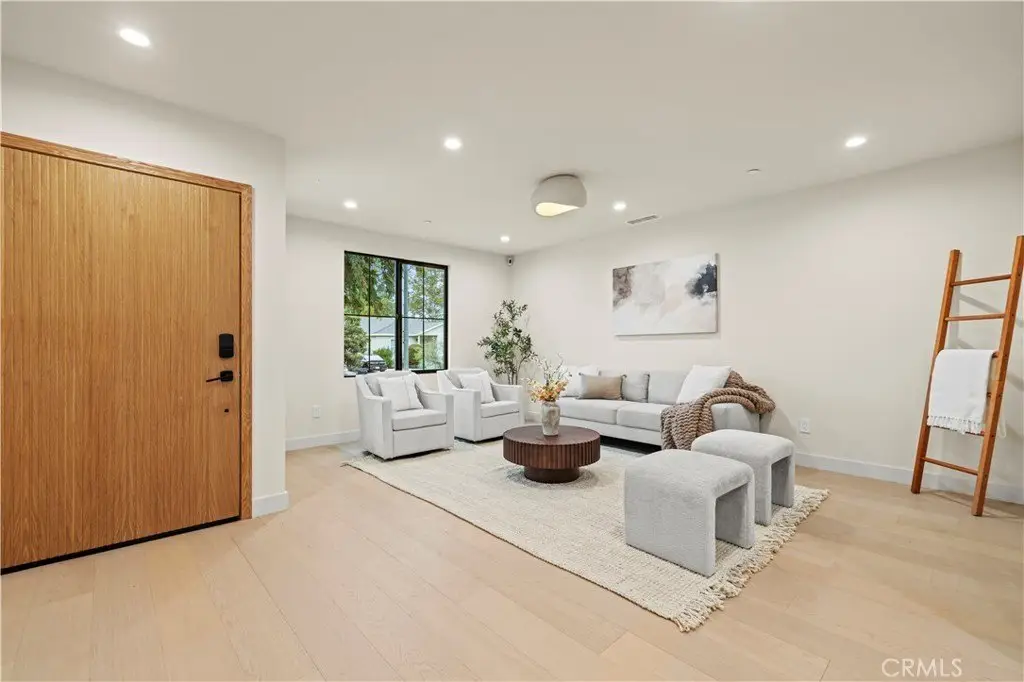 Welcome to this stunning custom-built home in Encino, perfectly situated on a generous lot! This organic modern 4-bedroom, 3.5-bath residence offers nearly 2,500 sq ft of beautifully designed living space with an open-concept indoor/outdoor layout—perfect for entertaining. From the moment you arrive, the wide frontage impresses with its expansive driveway and striking front entrance. Step inside and you’ll be greeted by a bright, airy floor plan that immediately sets the tone for sophisticated living. The formal living room at the front of the home is ideal for elegant gatherings, while the expansive great room offers the ultimate space for hosting luxurious indoor/outdoor events. The kitchen is a true showpiece, featuring floor-to-ceiling wood cabinetry, exquisite Taj Mahal quartzite countertops, and a full walk-in pantry. Adjacent to the kitchen, the sun-drenched dining area seamlessly connects to an oversized family room, where built-ins, custom shelving, and a cozy fireplace create the perfect evening retreat. Panoramic sliding doors open to a spacious deck and large backyard, creating effortless flow and extending your living space outdoors. The extra-large primary suite is a private sanctuary, complete with a walk-in closet and a luxurious spa-style bathroom featuring a double vanity and oversized shower. A secondary suite includes its own private bathroom, while two additional spacious bedrooms share a beautifully appointed bathroom at the front of the home. A separate laundry room and stylish powder room round out the interior amenities, offering total convenience and function. With thoughtful attention to detail and a well-planned layout, this home is designed to impress—featuring wood doors throughout, high ceilings, recessed and accent lighting inside and out, brand-new appliances, a finished garage, an oversized driveway, and lush landscaping. Plus, there’s plenty of space to add a sparkling pool - seller has a permit ready for you! This home truly has it all—style, space, and sophistication. Welcome home!