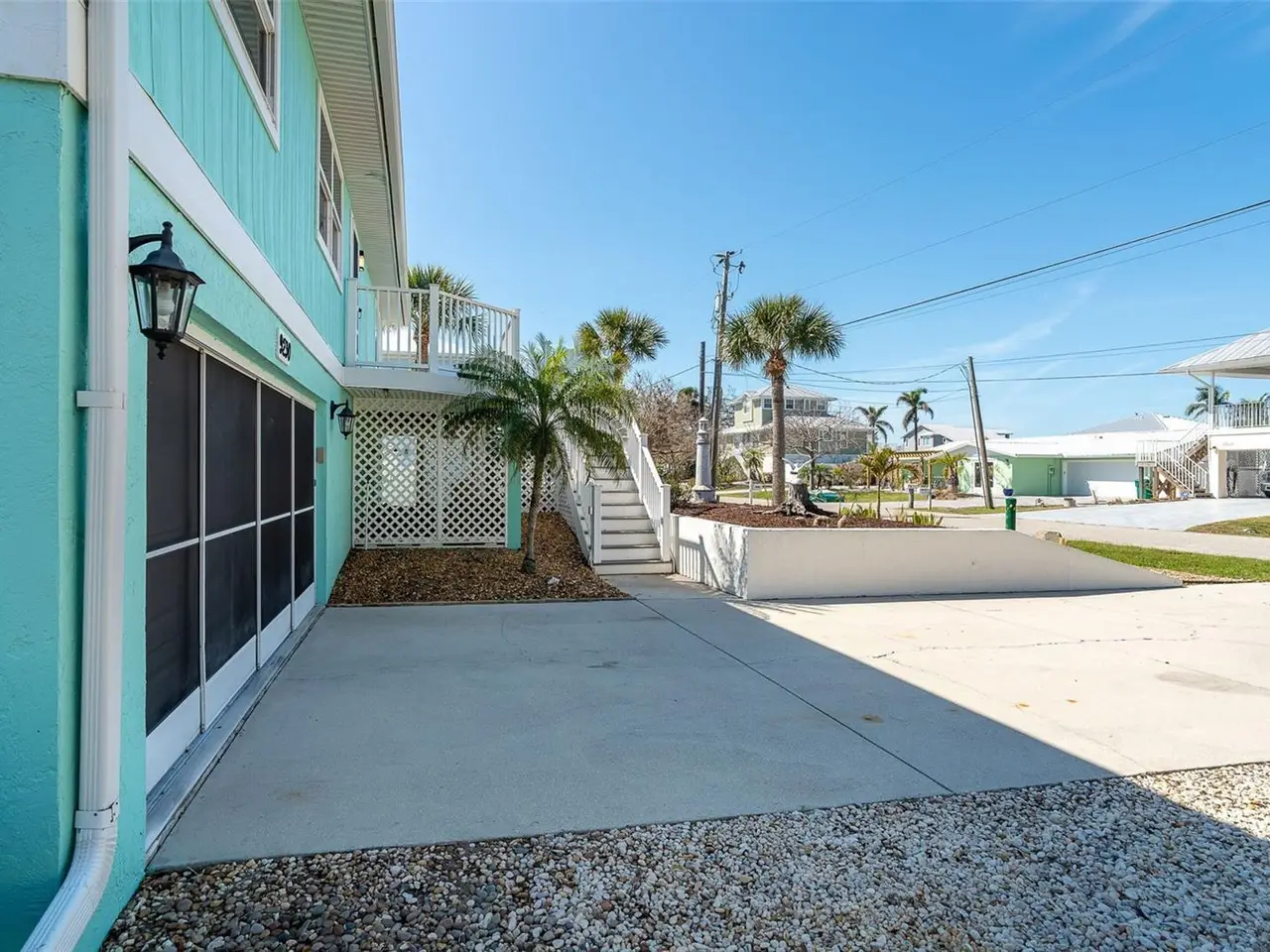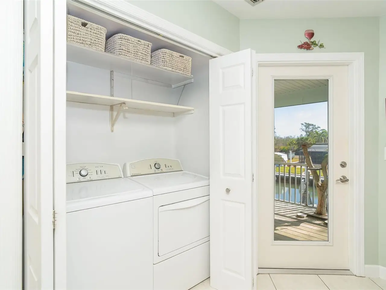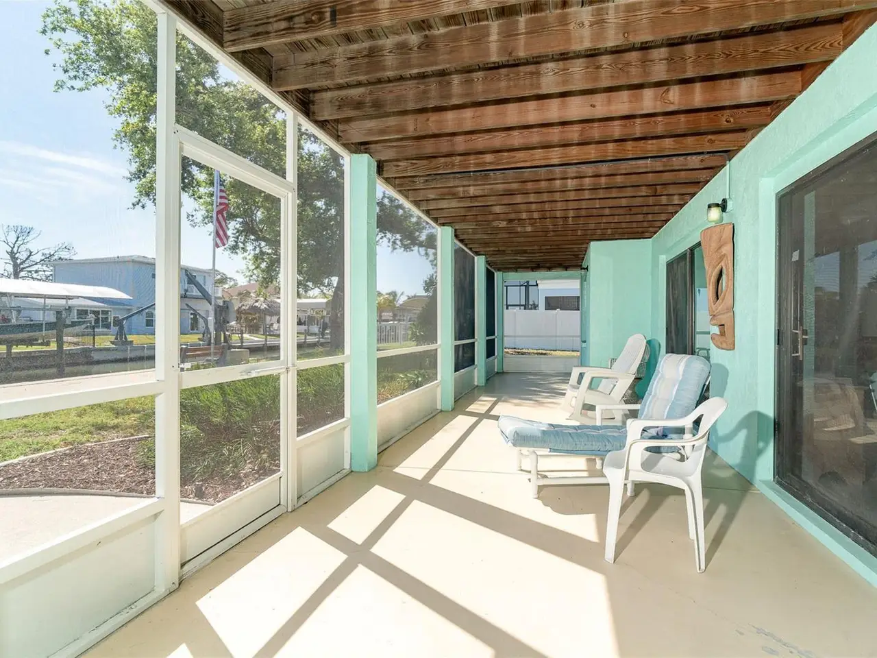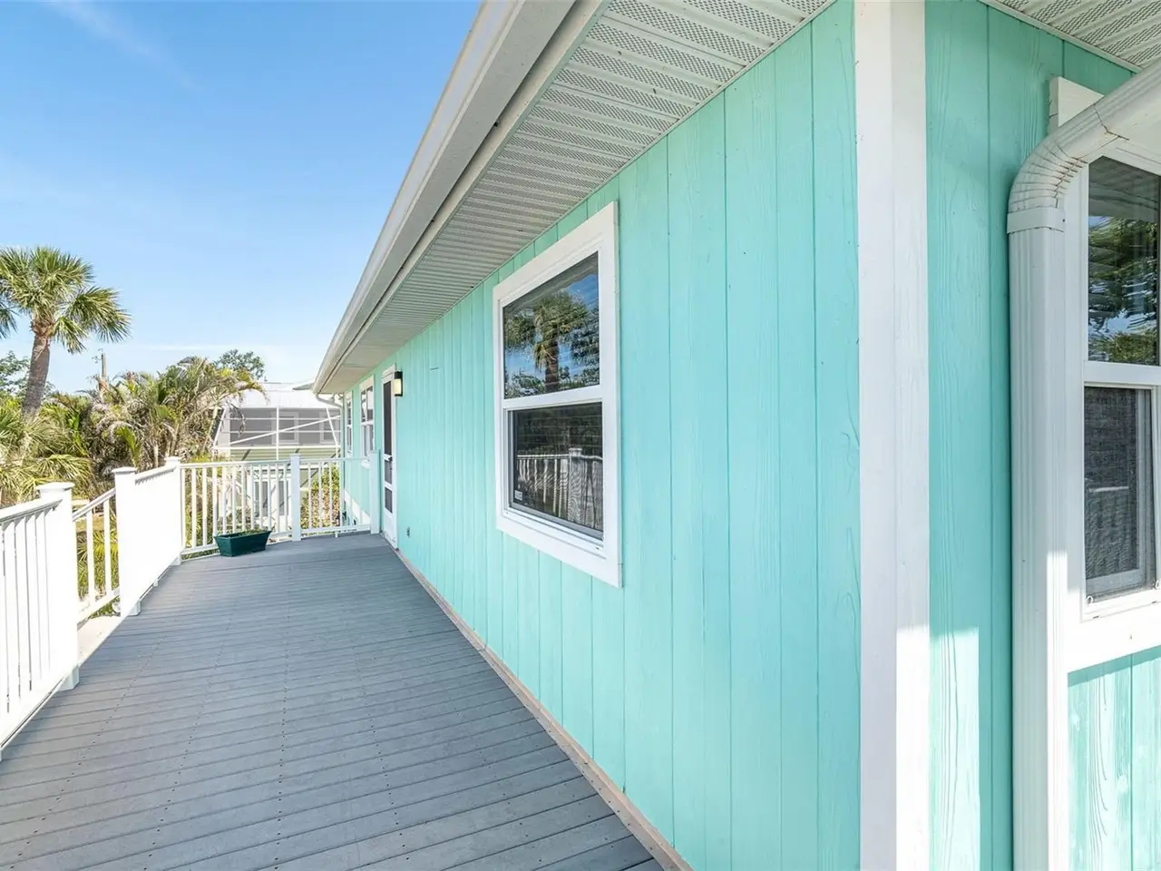 Waterfront Boatable Retreat with Deep Water Access & Stunning Views! Discover the ultimate coastal lifestyle with this elevated 3-bedroom, 2-bathroom home, perfectly situated on an oversized lot with 100 feet of water frontage. Boating enthusiasts will appreciate the sailboat-accessible deep water, a covered boat lift, a concrete seawall, and a dock with an extended concrete entertainment area - ideal for soaking up the Florida sunshine or hosting waterfront gatherings. Just minutes from the Intracoastal Waterway and the Gulf of Mexico, this property offers unparalleled convenience for those who love to explore by boat. Designed for peace of mind, this elevated home remained high and dry during storm season, with the first floor dedicated to a spacious garage and workshop area. Upstairs, the wraparound porch provides breathtaking sunrise and sunset views while offering a perfect spot to relax and enjoy the serene surroundings. Inside, the open and airy split floor plan welcomes you with a coastal-inspired ambiance and stunning water views from the spacious and open dining and great room area, where large sliding glass doors seamlessly blend indoor and outdoor living. The fully updated kitchen is a chef's delight, featuring granite countertops, stainless steel appliances, elegant glass-front cabinets, and ample storage with three pantries. A built-in desk with water views and a door leading to the lanai adds both function and charm. The primary suite is a tranquil retreat with double built-in closets, an ensuite bath with granite countertops, a walk-in shower, and a linen closet for added convenience. The guest bedrooms are equally impressive - one featuring a Murphy bed and sliding glass doors to the lanai, allowing for flexible use as a bedroom or home office, while the second oversized guest room includes a built-in closet and shares a guest bath with a tub/shower combo, granite countertops, and a linen closet. Enjoy dual screened-in lanais, with one upstairs and another on the lower level, providing multiple spaces to savor the waterfront views. Additional highlights include a 2023 roof, 2023 A/C unit, 2024 hot water heater, and 2024 refrigerator and microwave. The elevated A/C system is positioned at the top floor level for extra protection and peace of mind. Beautifully landscaped grounds and a screened garage add to the home's appeal. This exceptional property offers a rare opportunity to own a storm-resilient waterfront home that combines luxury, functionality, and breathtaking views. Schedule your private tour today and make this waterfront oasis your own!