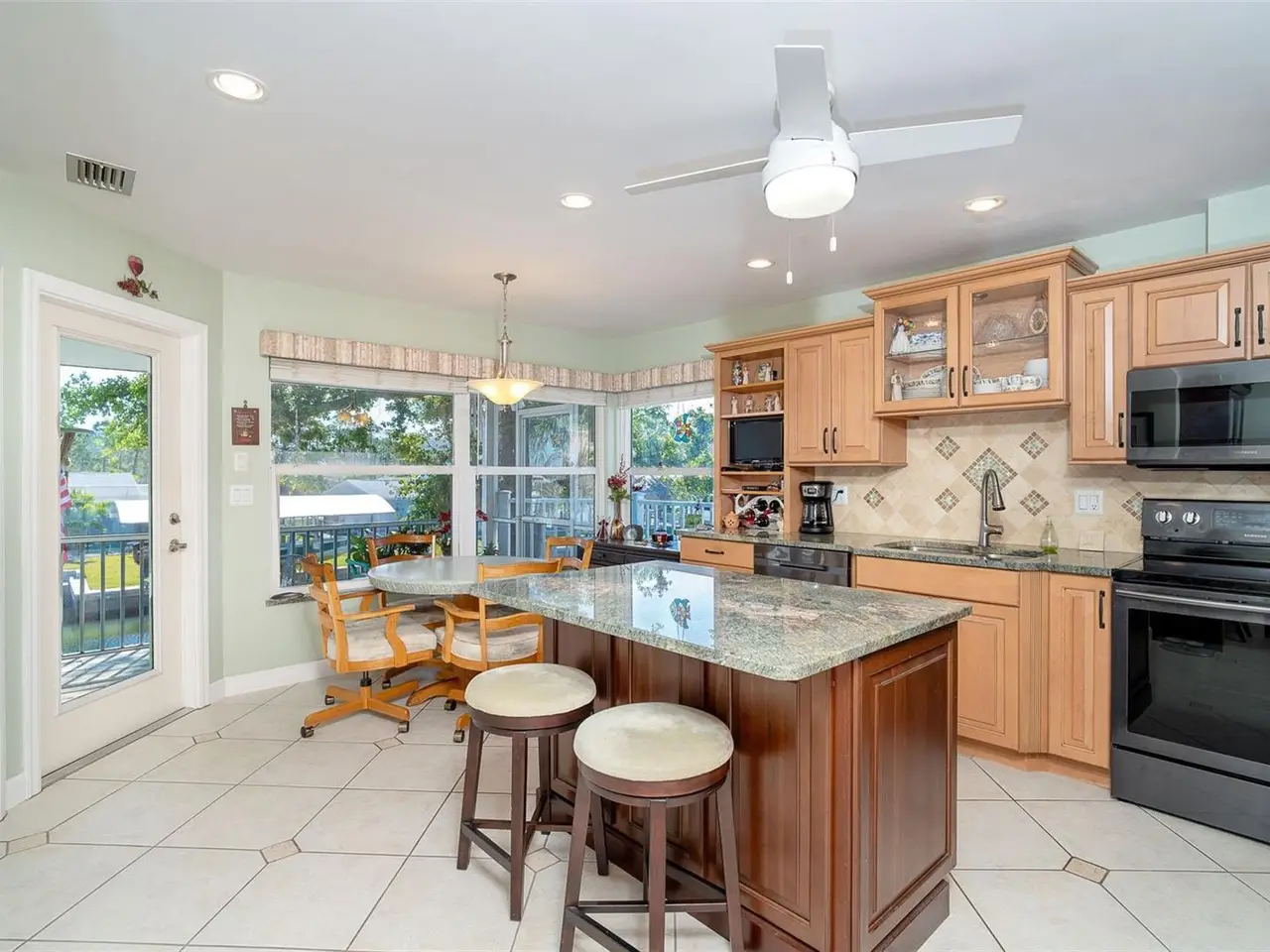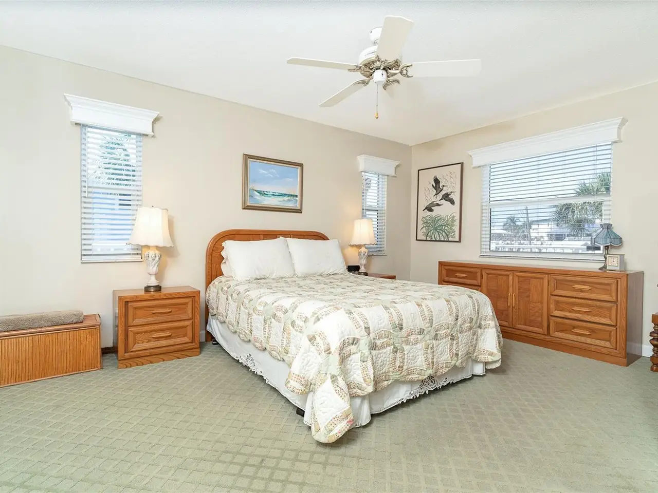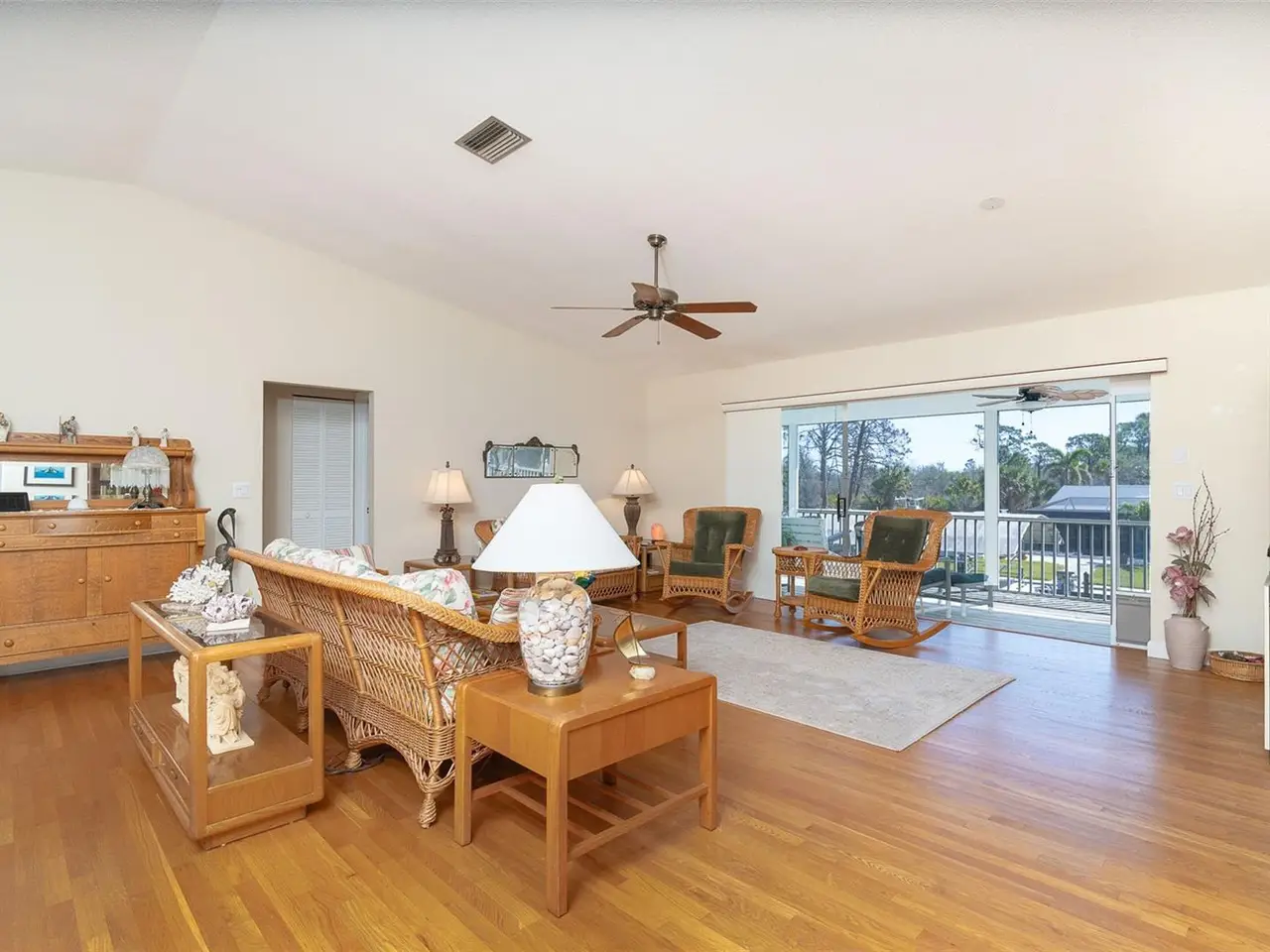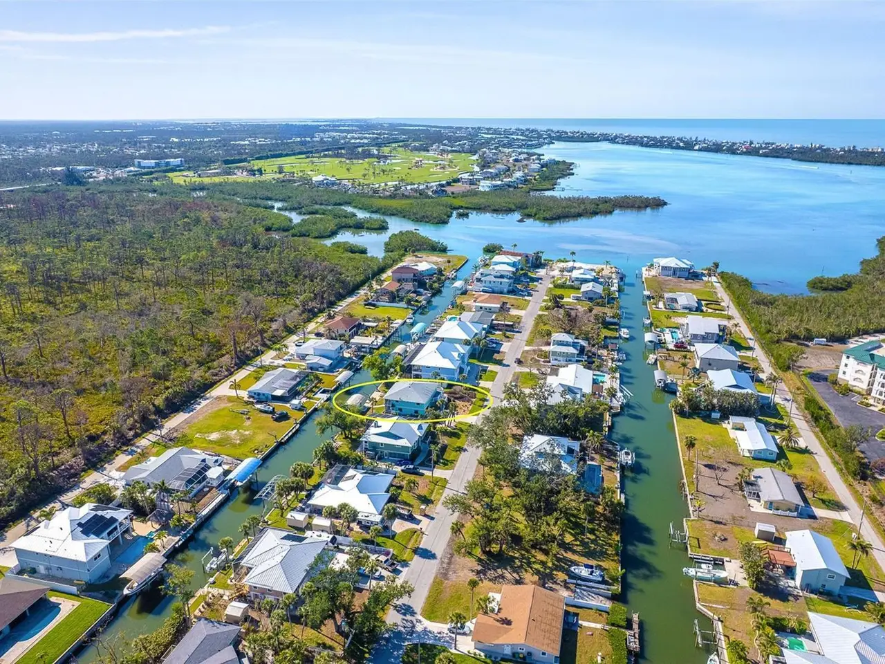 Waterfront Boatable Retreat with Deep Water Access & Stunning Views! Discover the ultimate coastal lifestyle with this elevated 3-bedroom, 2-bathroom home, perfectly situated on an oversized lot with 100 feet of water frontage. Boating enthusiasts will appreciate the sailboat-accessible deep water, a covered boat lift, a concrete seawall, and a dock with an extended concrete entertainment area - ideal for soaking up the Florida sunshine or hosting waterfront gatherings. Just minutes from the Intracoastal Waterway and the Gulf of Mexico, this property offers unparalleled convenience for those who love to explore by boat. Designed for peace of mind, this elevated home remained high and dry during storm season, with the first floor dedicated to a spacious garage and workshop area. Upstairs, the wraparound porch provides breathtaking sunrise and sunset views while offering a perfect spot to relax and enjoy the serene surroundings. Inside, the open and airy split floor plan welcomes you with a coastal-inspired ambiance and stunning water views from the spacious and open dining and great room area, where large sliding glass doors seamlessly blend indoor and outdoor living. The fully updated kitchen is a chef's delight, featuring granite countertops, stainless steel appliances, elegant glass-front cabinets, and ample storage with three pantries. A built-in desk with water views and a door leading to the lanai adds both function and charm. The primary suite is a tranquil retreat with double built-in closets, an ensuite bath with granite countertops, a walk-in shower, and a linen closet for added convenience. The guest bedrooms are equally impressive - one featuring a Murphy bed and sliding glass doors to the lanai, allowing for flexible use as a bedroom or home office, while the second oversized guest room includes a built-in closet and shares a guest bath with a tub/shower combo, granite countertops, and a linen closet. Enjoy dual screened-in lanais, with one upstairs and another on the lower level, providing multiple spaces to savor the waterfront views. Additional highlights include a 2023 roof, 2023 A/C unit, 2024 hot water heater, and 2024 refrigerator and microwave. The elevated A/C system is positioned at the top floor level for extra protection and peace of mind. Beautifully landscaped grounds and a screened garage add to the home's appeal. This exceptional property offers a rare opportunity to own a storm-resilient waterfront home that combines luxury, functionality, and breathtaking views. Schedule your private tour today and make this waterfront oasis your own!