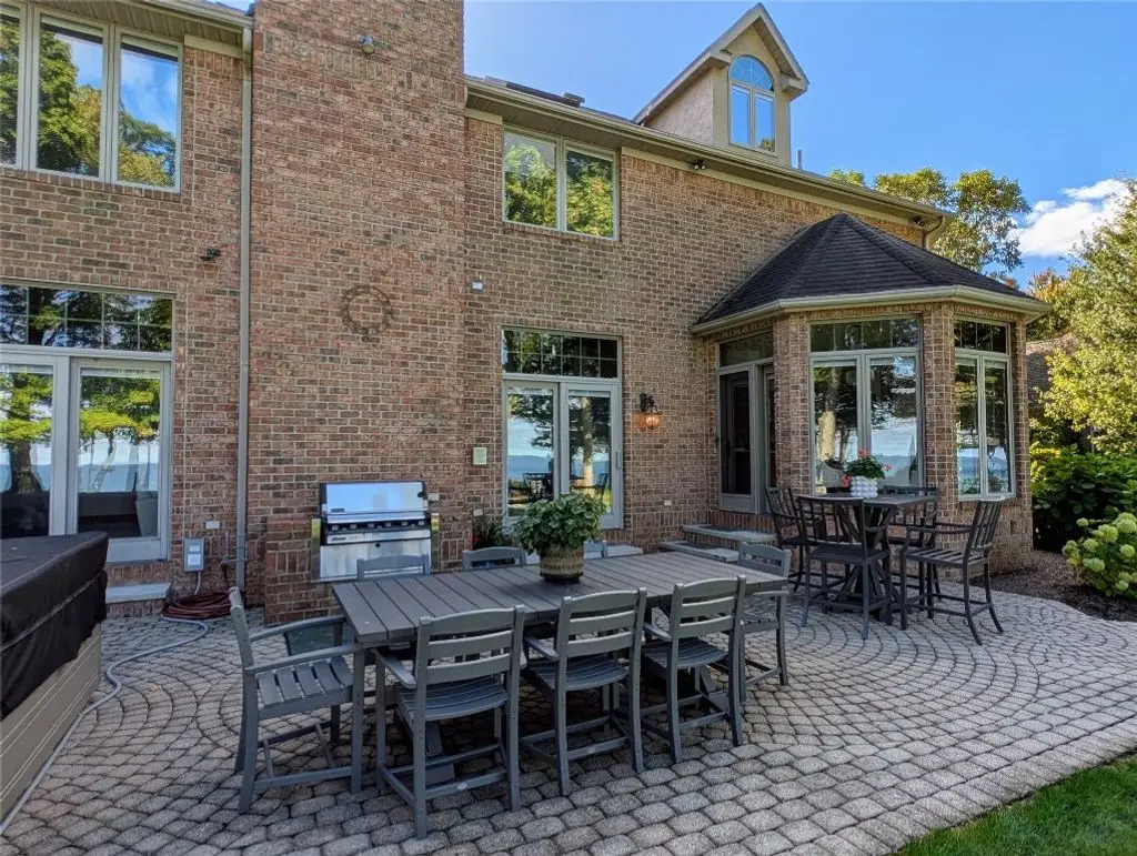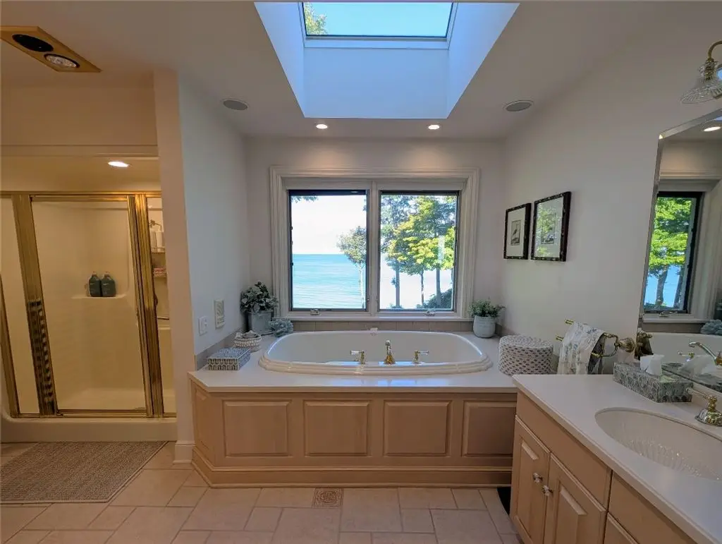 Encompassing over 4000 sq ft, this stunning all-brick Lake Erie home offers luxurious waterfront living. The primary suite features a custom walk-in closet and spa-like bath with soaker tub, standard and steam showers, and breathtaking lake views. Enjoy outdoor living with a brick portico, full outdoor kitchen, and a gazebo overlooking the water - plumbed and powered with a dedicated 100-amp service. The gourmet kitchen boasts high-end appliances and an octagonal morning room showcasing panoramic lake vistas. The finished lower level includes an entertainment area with a wet bar and wine room, plus an impressive mechanical room and safe room. A heated three-car garage with access to the lower level and heated driveway complete this exceptional property, blending timeless craftsmanship with modern luxury.