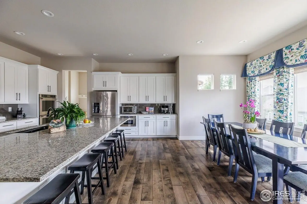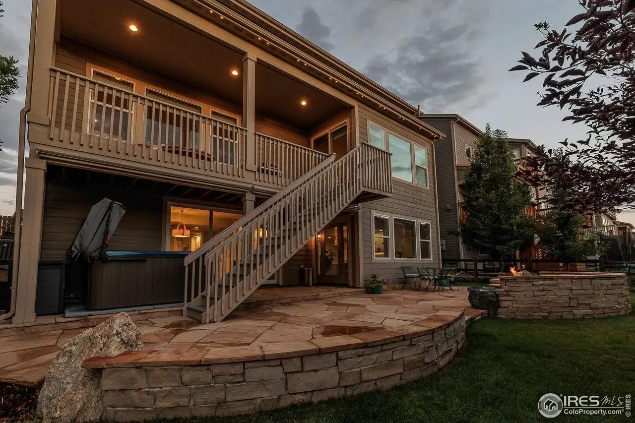 Experience refined Colorado living in this stunning 5-bed, 3.5-bath home with unobstructed 180-degree mountain views from the primary suite. Built in 2017 and beautifully updated, this nearly 4,700 sq ft residence blends designer elegance with everyday comfort. Enjoy sophisticated finishes throughout, including custom lighting, motorized blinds, wallpaper accents, and a walk-out basement perfect for entertaining, fitness, or guests. The spacious backyard retreat features a flagstone patio with fireplace and seating, and a hot tub. Additional highlights include a 3-car garage with EV charger, low-maintenance landscaping, and access to top-rated BVSD schools-all nestled in the desirable Flatiron Meadows community.