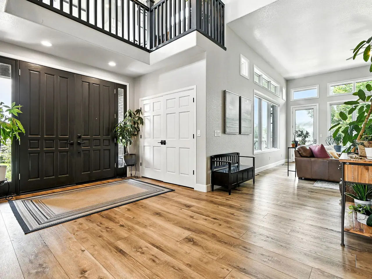 Tucked at the end of a cul-de-sac in Baxter Farm, one of Erie's most prestigious neighborhoods, this stunning estate sits on 2.3 acres of professionally landscaped grounds w/sweeping unobstructed mountain views. Main level features dramatic entry, soaring ceilings, sun-filled living room w/floor-to-ceiling windows, Gourmet kitchen w/Viking range, double ovens, breakfast bar, & pantry, Spacious main-floor primary suite, 2 ensuite bedrooms, laundry, & patio w/hot tub. Upstairs, enjoy a family room w/wet bar, study, bath, & view deck. Walkout basement adds 3,000+ sq ft of beautifully finished space, including media room w/ projection screen, 2 bedrooms, 2 baths, exercise room, 2 flex rooms, safe room, & multiple walkouts to lower patio. Outdoor living is elevated w/multiple decks & patios for relaxation & entertaining. Oversized 6 car garage, w/ extra-tall drive through doors, offers exceptional versatility. This home is the perfect combination of luxury, privacy & Colorado lifestyle.