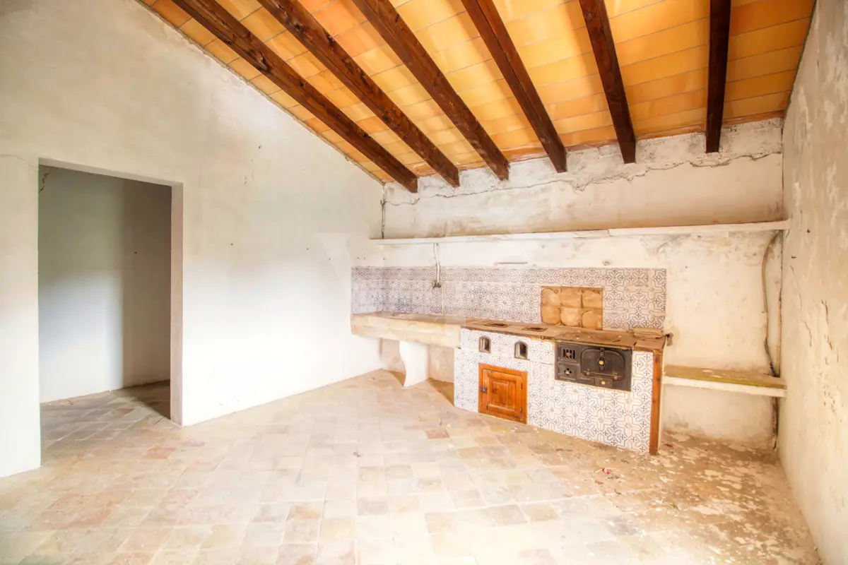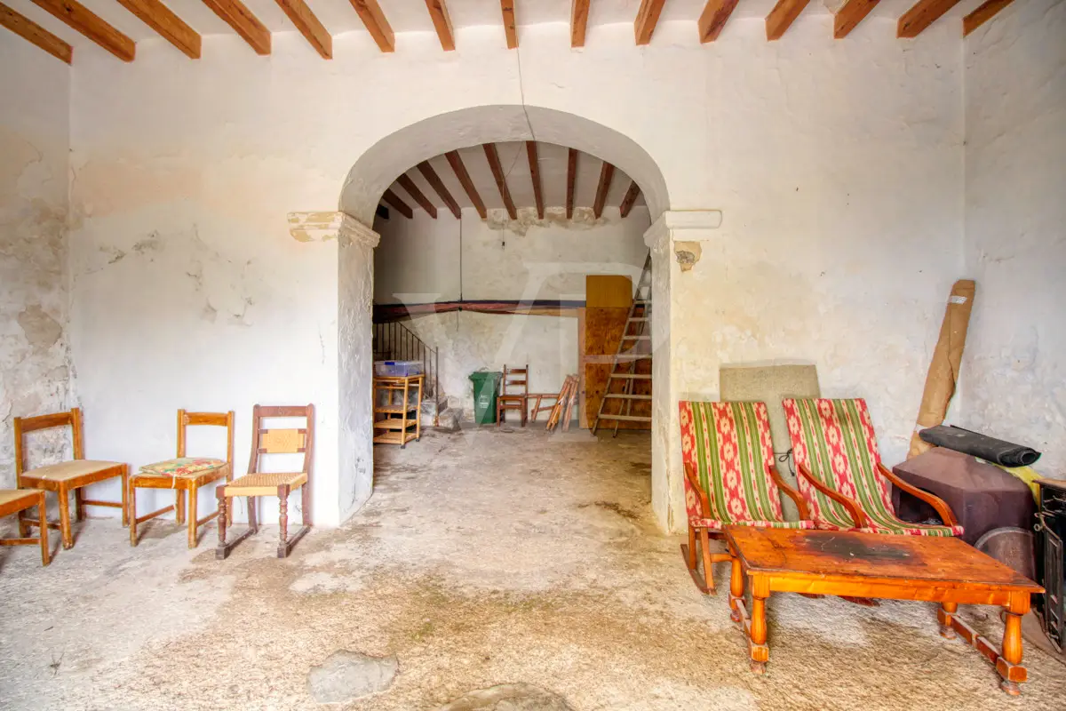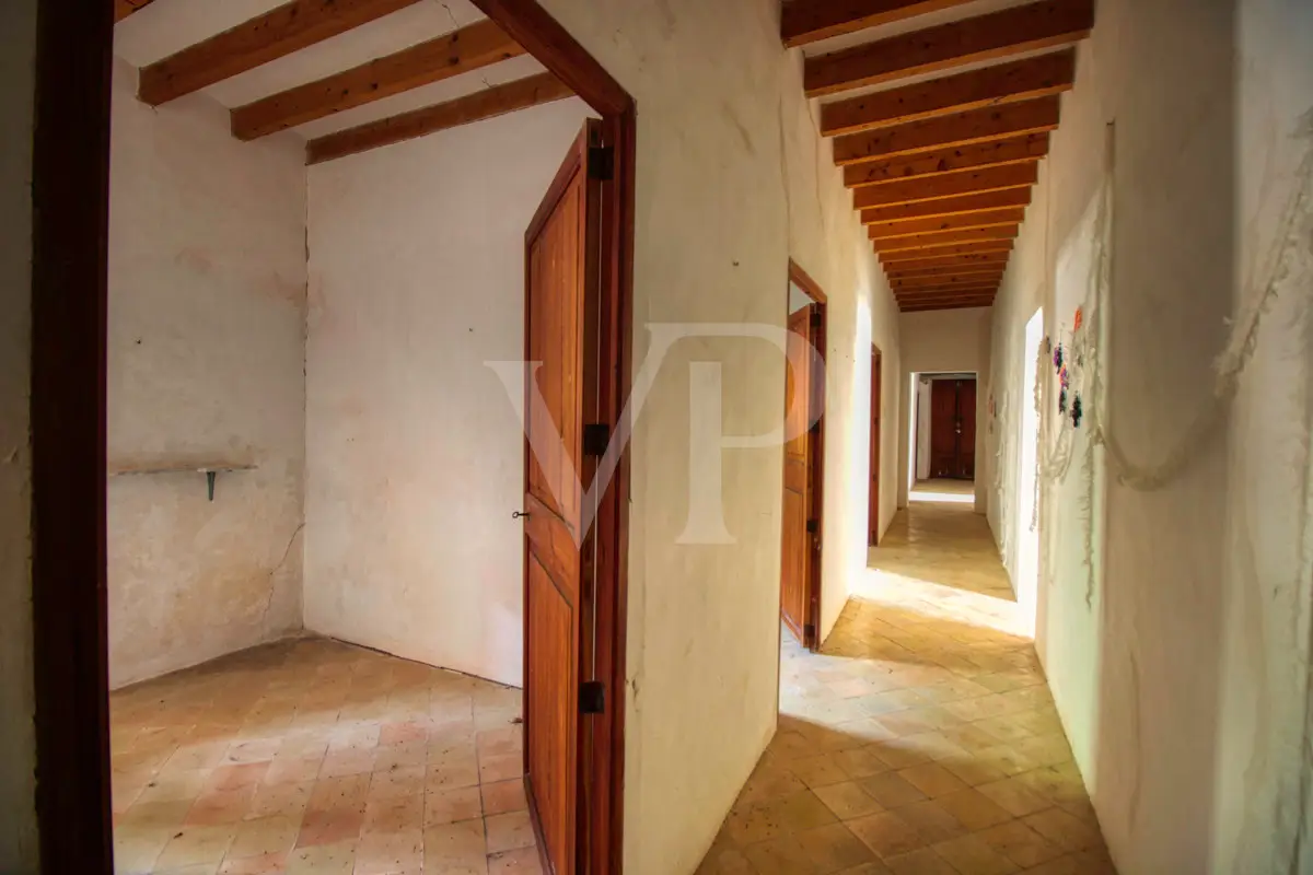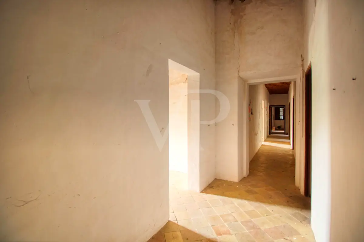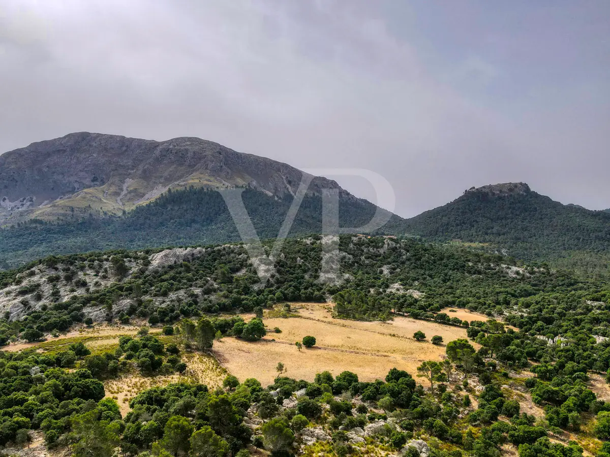 For sale is this fantastic historic finca located on 80 hectares in the natural landscape of the Serra de Tramuntana in Escorca. The finca includes approximately 8 hectares of olive groves, 23 hectares of holm oaks, 4 hectares of almond trees, 27 hectares of scrubland and 3.8 hectares of farmland. The farm is certified with the designation "organic production", which has meant a long conversion period. The production of high quality and tasty oil, fantastic honey and sheep grazing helps to sustain the farm by taking advantage of its large extension. The houses of the old farm "Possessió" are located at an altitude of 500 metres above sea level and are over 700 square metres in size and spread over three floors. The ground floor consists of an entrance hall, an old kitchen with a large fireplace, a storage room, an annex with an old bread oven, another fireplace and a spacious living room, and another annex at the back used as a garage. There is also a small independent storage room. On the first floor, a long corridor distributes all its bedrooms, direct exit to a fantastic terrace, living room with fireplace, the old owners' kitchen, large pantry and the old bathroom. The upper floor consists of two large rooms with sloping ceilings, separated by thick walls. This property surprises not only by the dimensions of the construction, but also by the size of the plot and its location. The thick stone walls, high ceilings with original wooden beams and original terracotta tiles are exceptional. The property has electricity, two of its own water wells, a natural water source from the mountains, a "safareig" water deposit and the possibility to build another one. All this gives this finca an abundance of water. An ecological finca that is part of Mallorca's culture and history, nestled in a fantastic and unique setting.