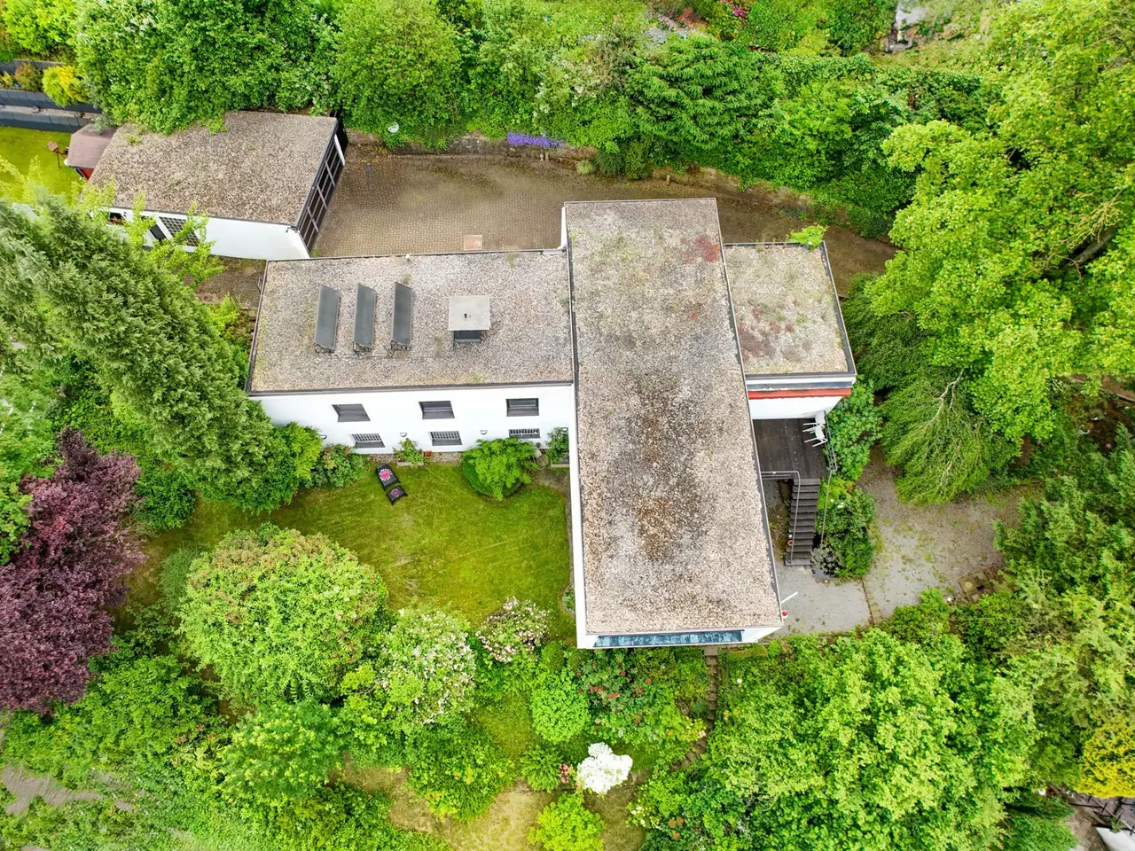 Esta impresionante propiedad en Essen Kupferdreh, construida en 1956 con un estilo arquitectónico cúbico, le encantará por su individualidad y sus espectaculares vistas al valle del Ruhr. La propiedad, conocida en Kupferdreh como la "Casa de la Televisión", se encuentra en una tranquila zona residencial con una ligera pendiente, rodeada de vegetación y con una gran privacidad. Distribuida en dos plantas con una superficie habitable total de aprox. 188 m², su singular estilo arquitectónico y la especial distribución resultante le ofrecen numerosas opciones para diseñar su hogar de forma totalmente personalizada. Un hermoso camino de acceso, con una vegetación exuberante, desde la calle principal le lleva al patio delantero de la casa, donde se encuentra un amplio garaje doble. La entrada, con su amplia fachada acristalada, resulta muy acogedora y deja entrar mucha luz al amplio pasillo, que puede utilizarse de diversas maneras como estancia central. Diseñe aquí su comedor o amplíe la estancia para convertirla en sala de estar con muy poco esfuerzo. A la izquierda se encuentra un aseo de invitados, un aseo y una cocina con despensa anexa. Directamente al frente, se llega a la zona más destacada de la casa. Aquí, en un edificio que sobresale mucho hacia el frente, se encuentra el salón flotante con un ventanal que lo recorre todo. Desde aquí, se puede disfrutar de una vista panorámica despejada y crear un espacio de bienestar en aproximadamente 35 m². Encontrará una sugerencia de visualización en este folleto. También puede disfrutar del sol en esta planta de la casa, ya que desde el salón se accede a un pequeño balcón con toldo y escaleras al jardín, al que, por supuesto, también se puede acceder por otras entradas. En el ala derecha de la planta superior, de aproximadamente 124 m², también hay un dormitorio, un baño y un estudio. El sótano tiene aproximadamente 64 m² de superficie habitable y ofrece cuatro habitaciones, una de ellas con acceso al jardín y al patio, un baño con ducha, dos trasteros y una sala de calderas con lavadero. Las habitaciones se pueden usar flexiblemente como estudio, dormitorio, sala de invitados o de ocio. Un sistema solar en el tejado le proporciona agua caliente y un sistema de alarma garantiza su seguridad. La propiedad se encuentra en buen estado, pero requiere una reforma integral (por ejemplo, baños, calefacción, suelos), por lo que le ofrece la oportunidad de adaptarla a sus deseos. Diseñe esta extraordinaria casa a su gusto y conviértala en su hogar ideal. El estilo arquitectónico, la ubicación, las vistas y el hermoso jardín con sus árboles y plantas especiales, una terraza cubierta y un césped con amplio espacio para relajarse y jugar harán las delicias de su familia. ¿Desea más espacio? Se podría ampliar la vivienda construyendo una planta más y una azotea con vistas espectaculares. Si ha despertado su interés, estaremos encantados de proporcionarle más información y concertar una visita.