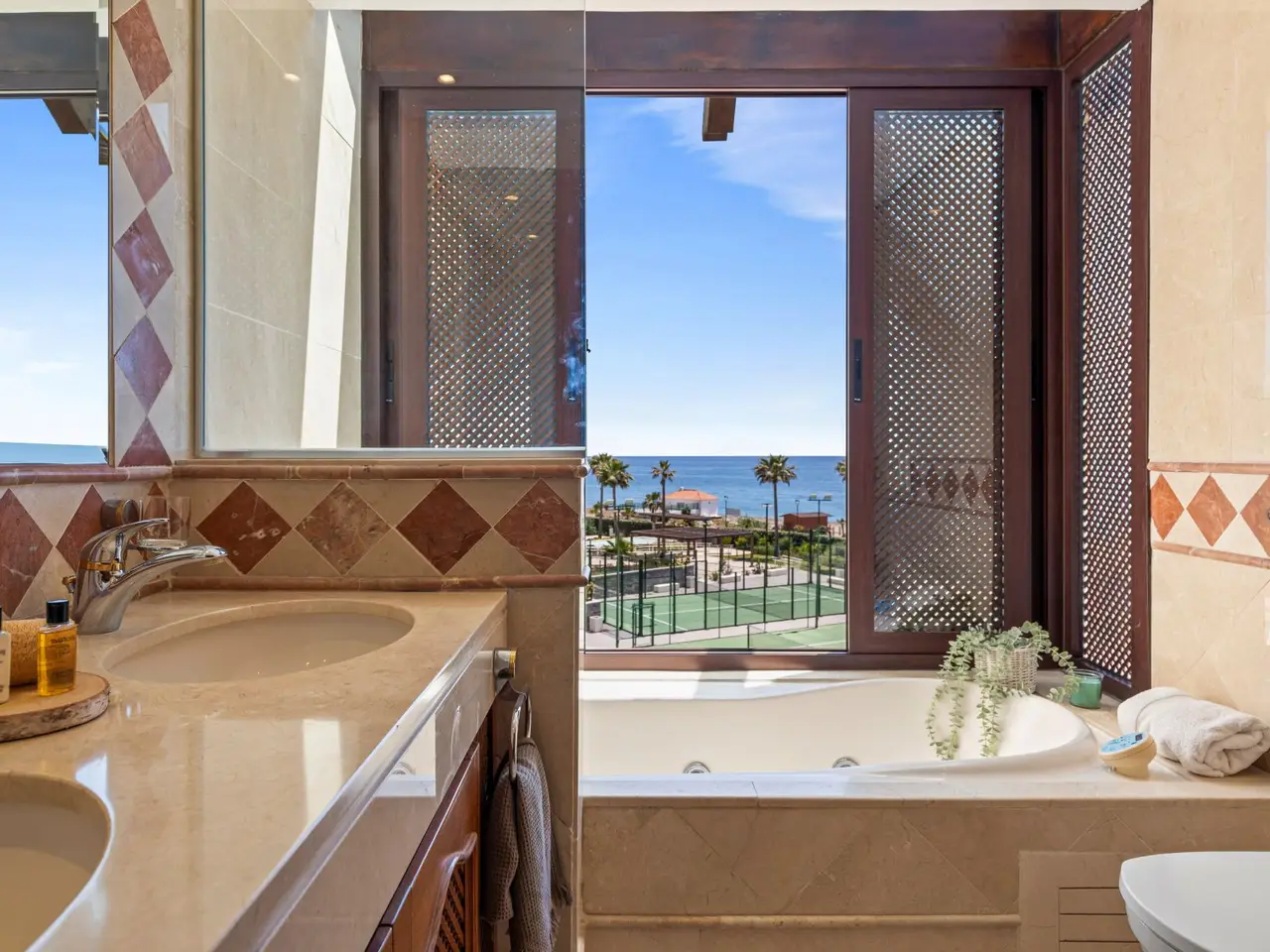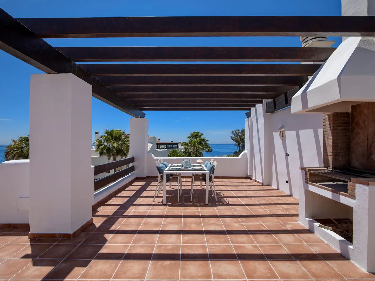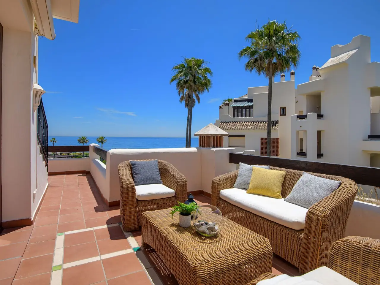 Set within the prestigious beachfront community of Bahía del Velerín, along the New Golden Mile between Marbella and Estepona, this stunning duplex penthouse captures the essence of Mediterranean living: space, style, and endless views. Spread over two levels, the property features a spacious living room, a separate dining area, fully fitted kitchen, utility room, and a guest toilet. All 3 bedrooms offer generous wardrobes and en-suite bathrooms for maximum comfort and privacy. What truly sets this property apart are its three private terraces and a 60 m² rooftop solarium complete with summer kitchen and barbecue, the perfect setting to enjoy life outdoors as part of your daily routine. Here, it’s not just about having sea views, it’s about having the sea as your closest neighbor. The gated community boasts 24-hour security and concierge service, lush tropical gardens, and a spectacular resort-style swimming pool. Residents also enjoy direct access to the beach and the renowned Velerín beach bar&restaurant, one of the Costa del Sol’s top-rated chiringuitos, famous for its fresh seafood, traditional Andalusian dishes, and relaxed atmosphere. The price includes two underground parking spaces and a storage room. A home for those who don’t dream of sailing, but of waking up each day on their own ship, anchored in the sand.