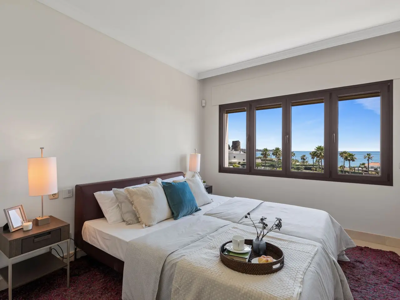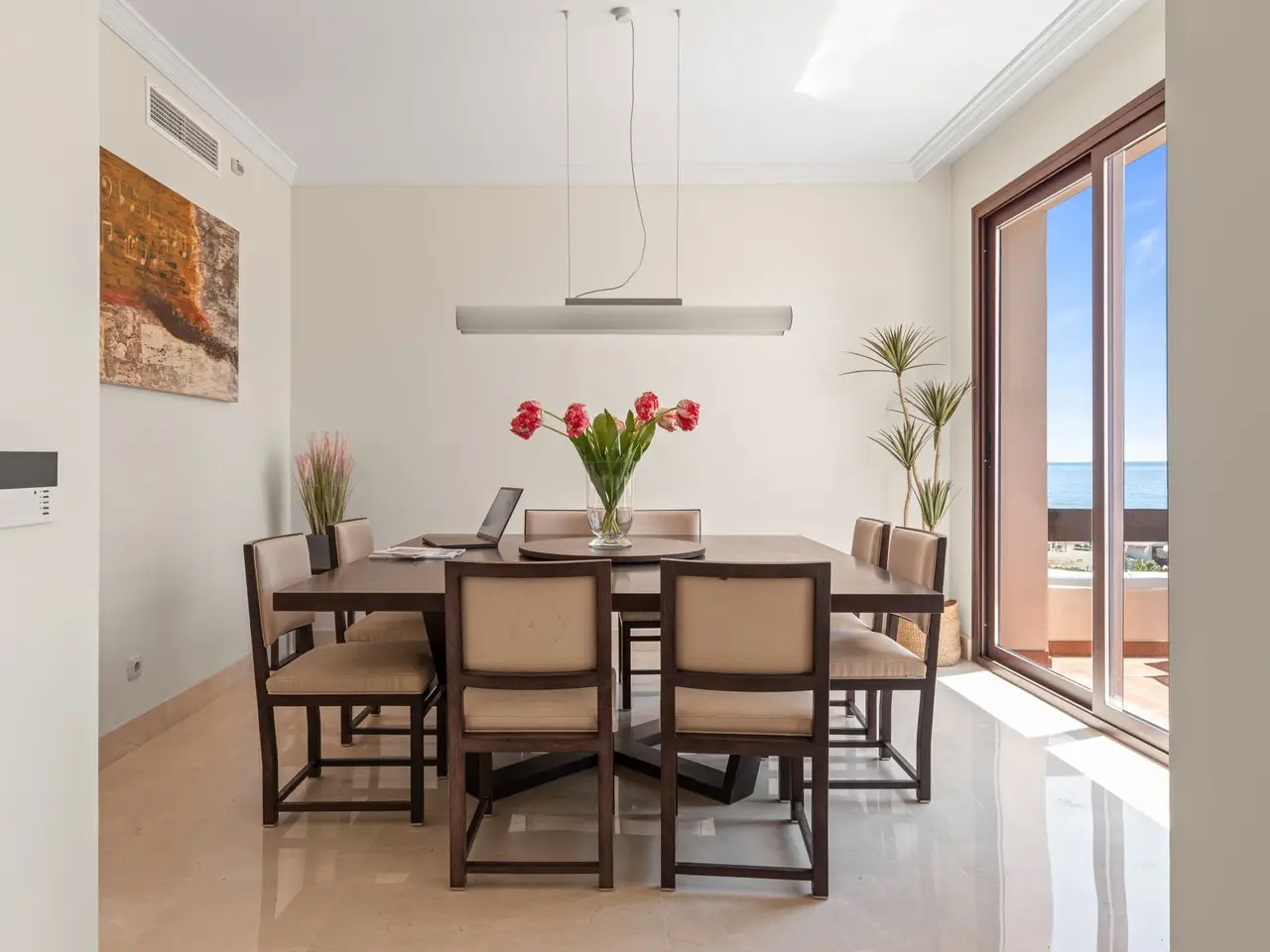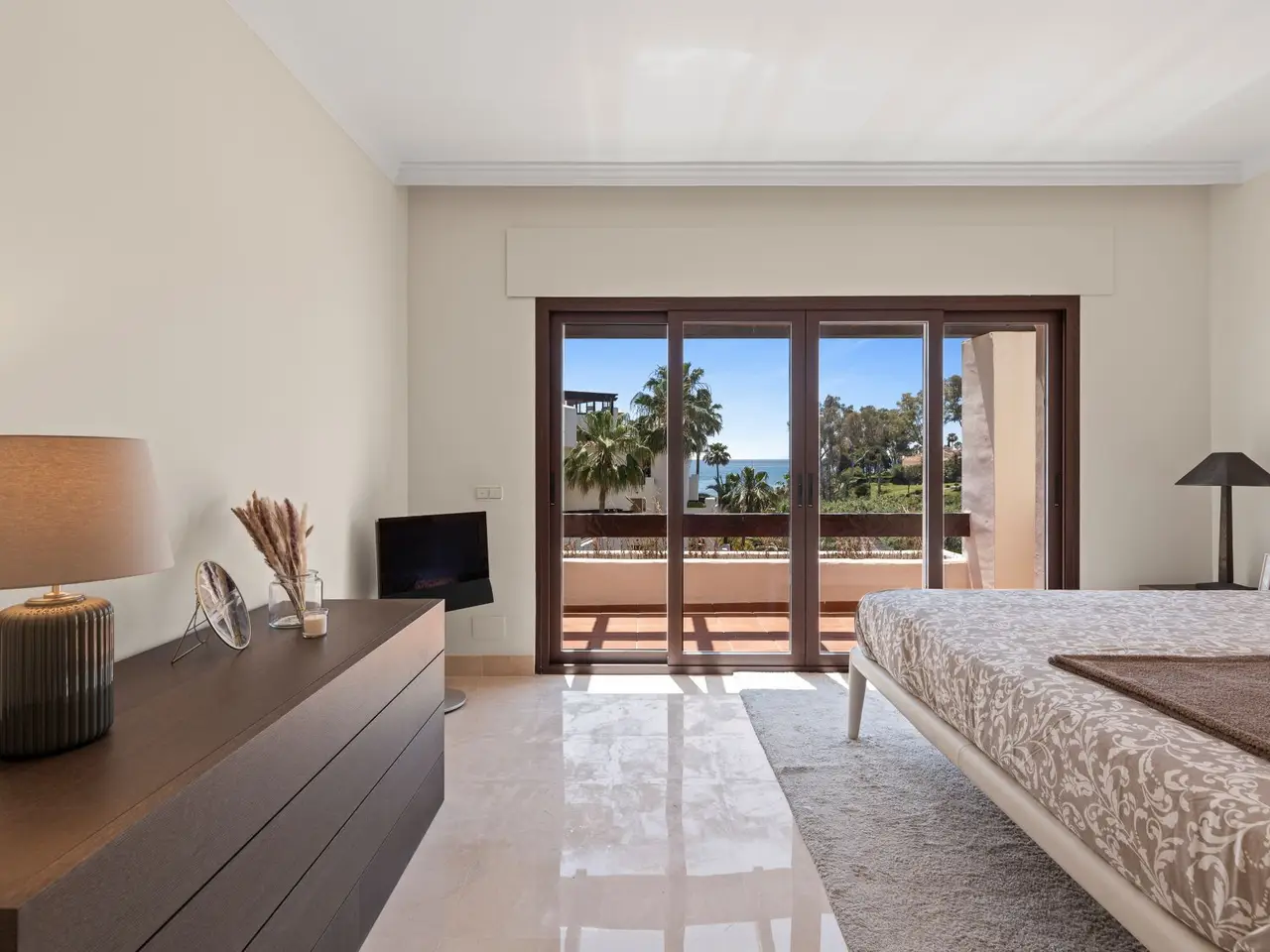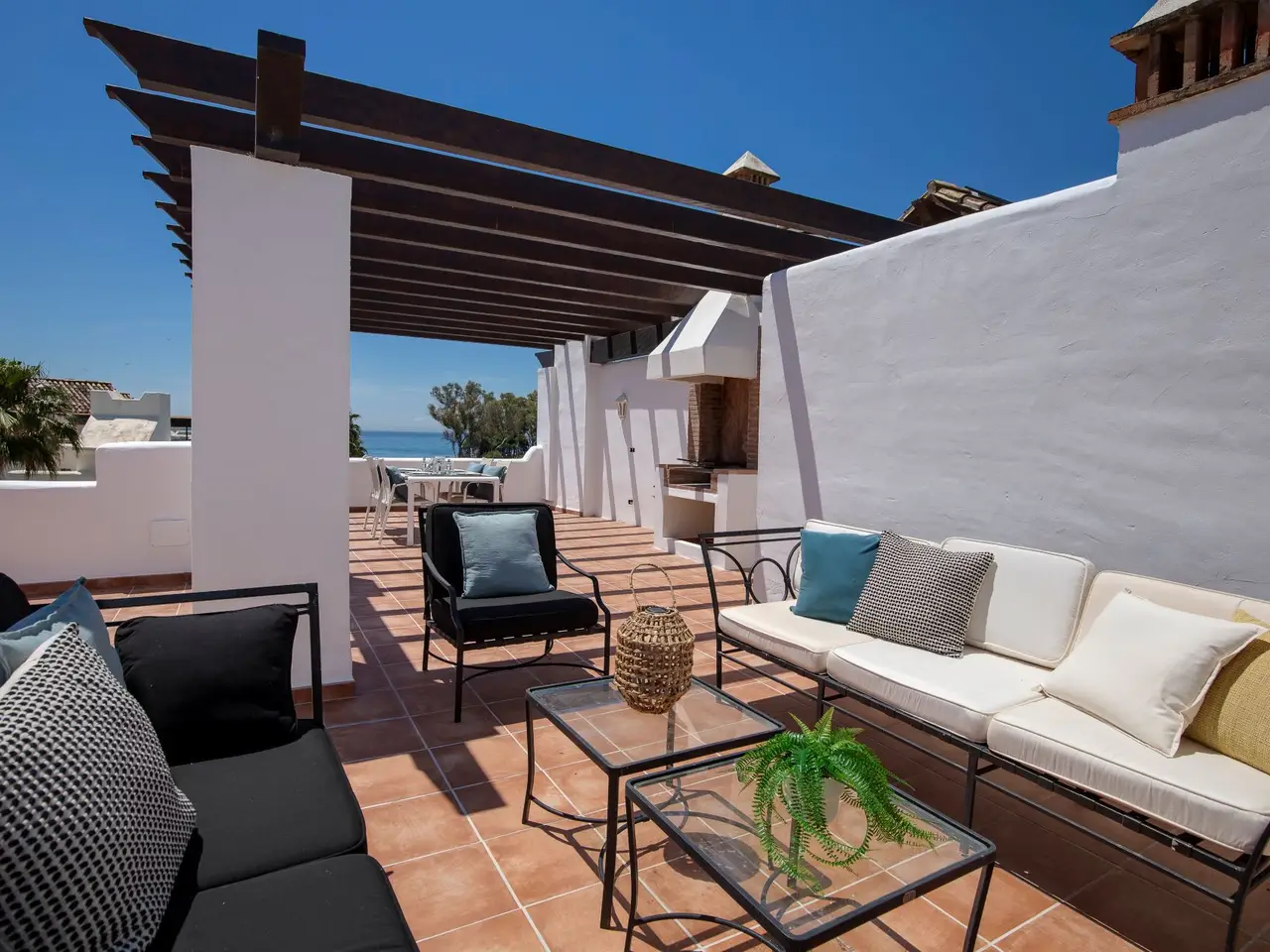 Set within the prestigious beachfront community of Bahía del Velerín, along the New Golden Mile between Marbella and Estepona, this stunning duplex penthouse captures the essence of Mediterranean living: space, style, and endless views. Spread over two levels, the property features a spacious living room, a separate dining area, fully fitted kitchen, utility room, and a guest toilet. All 3 bedrooms offer generous wardrobes and en-suite bathrooms for maximum comfort and privacy. What truly sets this property apart are its three private terraces and a 60 m² rooftop solarium complete with summer kitchen and barbecue, the perfect setting to enjoy life outdoors as part of your daily routine. Here, it’s not just about having sea views, it’s about having the sea as your closest neighbor. The gated community boasts 24-hour security and concierge service, lush tropical gardens, and a spectacular resort-style swimming pool. Residents also enjoy direct access to the beach and the renowned Velerín beach bar&restaurant, one of the Costa del Sol’s top-rated chiringuitos, famous for its fresh seafood, traditional Andalusian dishes, and relaxed atmosphere. The price includes two underground parking spaces and a storage room. A home for those who don’t dream of sailing, but of waking up each day on their own ship, anchored in the sand.