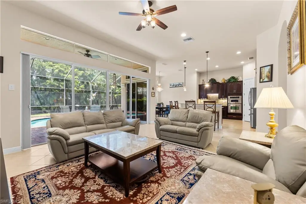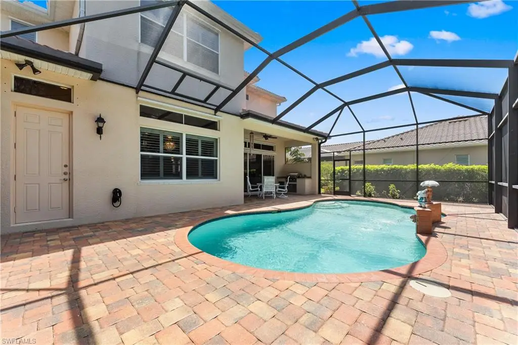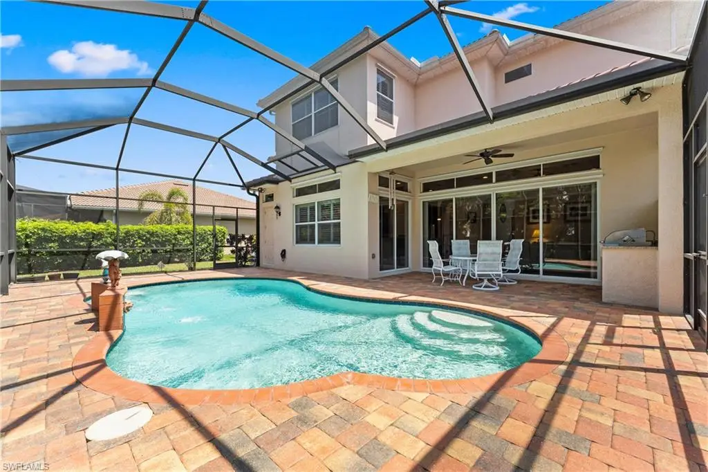 Offering one of the best values in all of Southwest Florida, this expansive Toll Brothers estate home combines over 4,000 square ft. of air conditioned living space, an ideal location in the heart of Estero, and an amenity rich NATURAL GAS community with the opportunity to join the award winning Estero Country Club via a connecting cart path (NO GOLF WAITING LIST). Perfectly positioned on a lushly landscaped private lot, this spacious residence features 5 large bedrooms, a dedicated first flood executive office, and a thoughtfully designed layout filled with natural light, soaring 20+ ft ceilings, and timeless architectural details. From the grand double-door entry to the elegant living and family rooms, the home effortlessly blends formal spaces with everyday comfort. A chefÆs kitchen, complete with breakfast nook and adjacent formal dining room, anchors the main living areas and opens to an expansive outdoor lanai featuring a natural gas outdoor kitchen, a full pool bath, and a lushly landscaped backyard - ideal for both family gatherings and entertaining. Additional highlights include a full-home natural gas generator, full home water filtration system, oversized 3-car epoxy-floored garage, and an extra wide driveway for your family and guests. Belle Lago is a natural gas community with resort-style amenities including a pool, spa, tennis, pickleball, fitness center, playground, and 24/7 guarded gate. Optional golf and social memberships are available at neighboring Estero Country Club with private golf cart access. The community of Belle Lago is located WEST of I-75 between Naples and Fort Myers, just minutes to the International RSW Airport, Coconut Point Mall, FGCU, Gulfcoast Towncenter, Miromar Outlets and our white sandy beaches. Aggressively priced and move-in ready, this exceptional estate delivers a rare blend of upscale living at an unbeatable value.