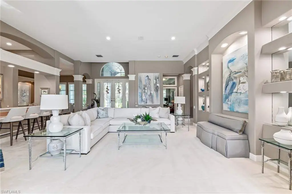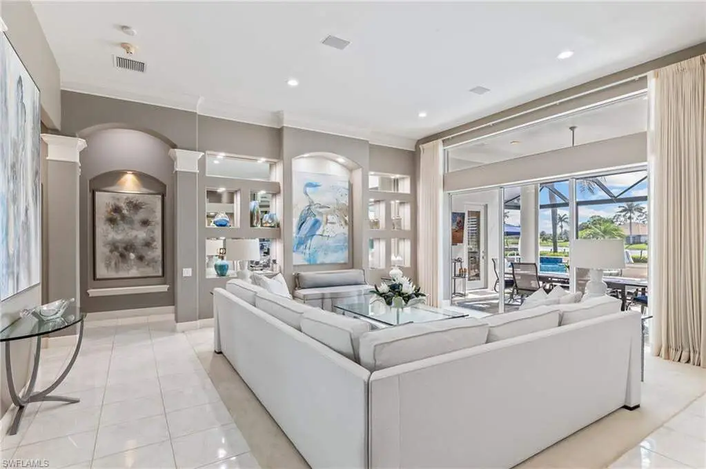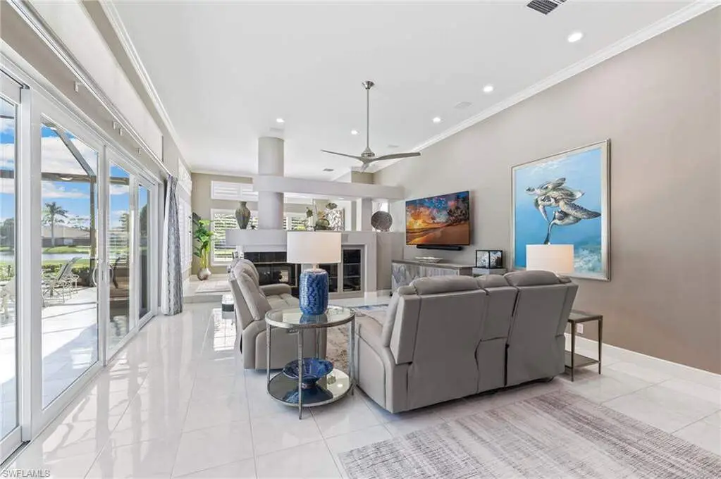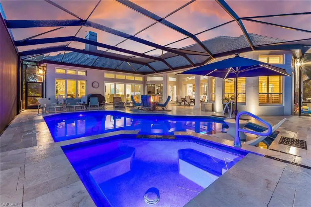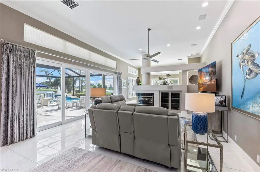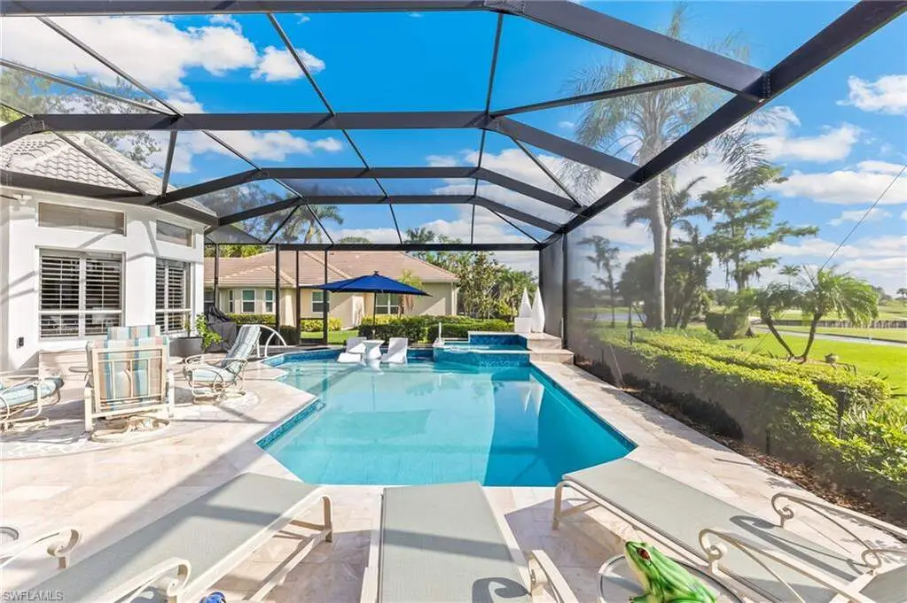 ESTATE HOME w/ IMMEDIATE GOLF AVAILABLE ON SIGNATURE HOLE IN THE VINES.....This furnished, contemporary floor plan includes over $500k in renovations and high-end interior design furnishings. Endless upgrades include new roof (2020); in-ground 500 gal propane tank (2021); new landscaping/lawn irrigation (2022); whole house generator (2023); new HVAC unit (2024); recently installed landscape stone + entire exterior of the home painted (2024). Beyond the etched glass double door, awaits a beautifully decorated living room accompanied by a sophisticated walk-in wet bar w/ wine cooler and stand alone ice maker; soaring 12-ft ceilings + an elegant dining area. Kitchen features stunning dark wood cabinetry; white quartz counters; stainless appliances and double oven. The entire left side of the home is dedicated to the massive primary suite w/ large sitting area and private ensuite. Entertain in style while guests spill out to the awe-inspiring outdoor living area w/ additional seating; completely renovated pool & spa w/ dramatic sun shelf; all new pool equipment; protective sun screen; fire-pit and pool cage with custom picture-view screen panels. In addition, a pet door is installed out of the lanai w/ an added invisible fence in the backyard. Estero Country Club social activities include a championship 18-hole golf course (golf membership optional); tennis; pickle ball; bocce; fitness center; plus casual and fine dining. Membership in The Estero Country Club is required at the Social Level. Full Golf and Sport Memberships are available with no wait list. Great location close to RSW Airport; shops and restaurants.....this home invites true resort-style living. **Be sure to click on 3D Virtual Tour Video to view this exclusive property.