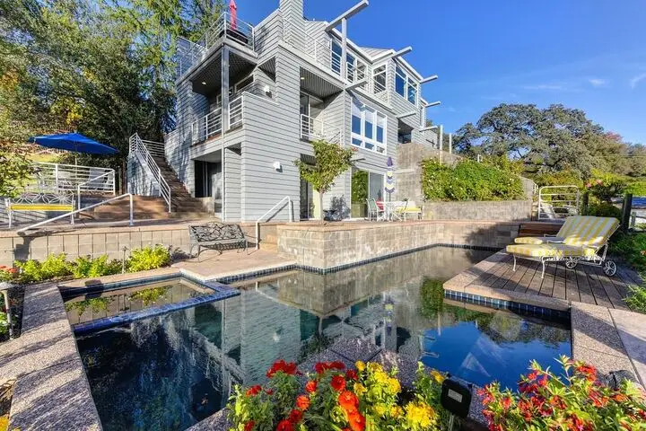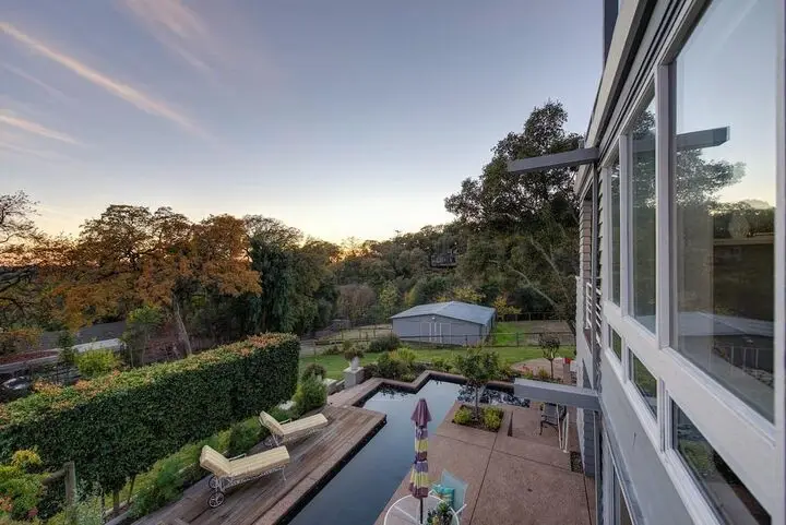 Nestled in the heart of Fair Oaks, this remarkable property offers breathtaking views of the American River Parkway, providing a scenic backdrop to daily life. Drawing inspiration from the timeless designs of the historic architect Frank Lloyd Wright, the luxurious tri-leveled residence spans 2,471 square feet, featuring an entertainer's dream top-level great room and kitchen, and a separately heated pool and spa. Situated on a 1.07-acre horse property, the estate is equipped with a 5-stall, plus storage barn, and riding arena, catering to the needs of equestrian enthusiasts. Boasting direct horse access to the nearby American River, residents can seamlessly integrate the tranquility of nature into their daily routine, creating a unique living experience. Beyond the equestrian amenities, the property's spacious lawns and vibrant floral garden enhance its allure, transforming it into more than just a horse property - it's a transformation of the urban lifestyle. The possibilities are limitless!