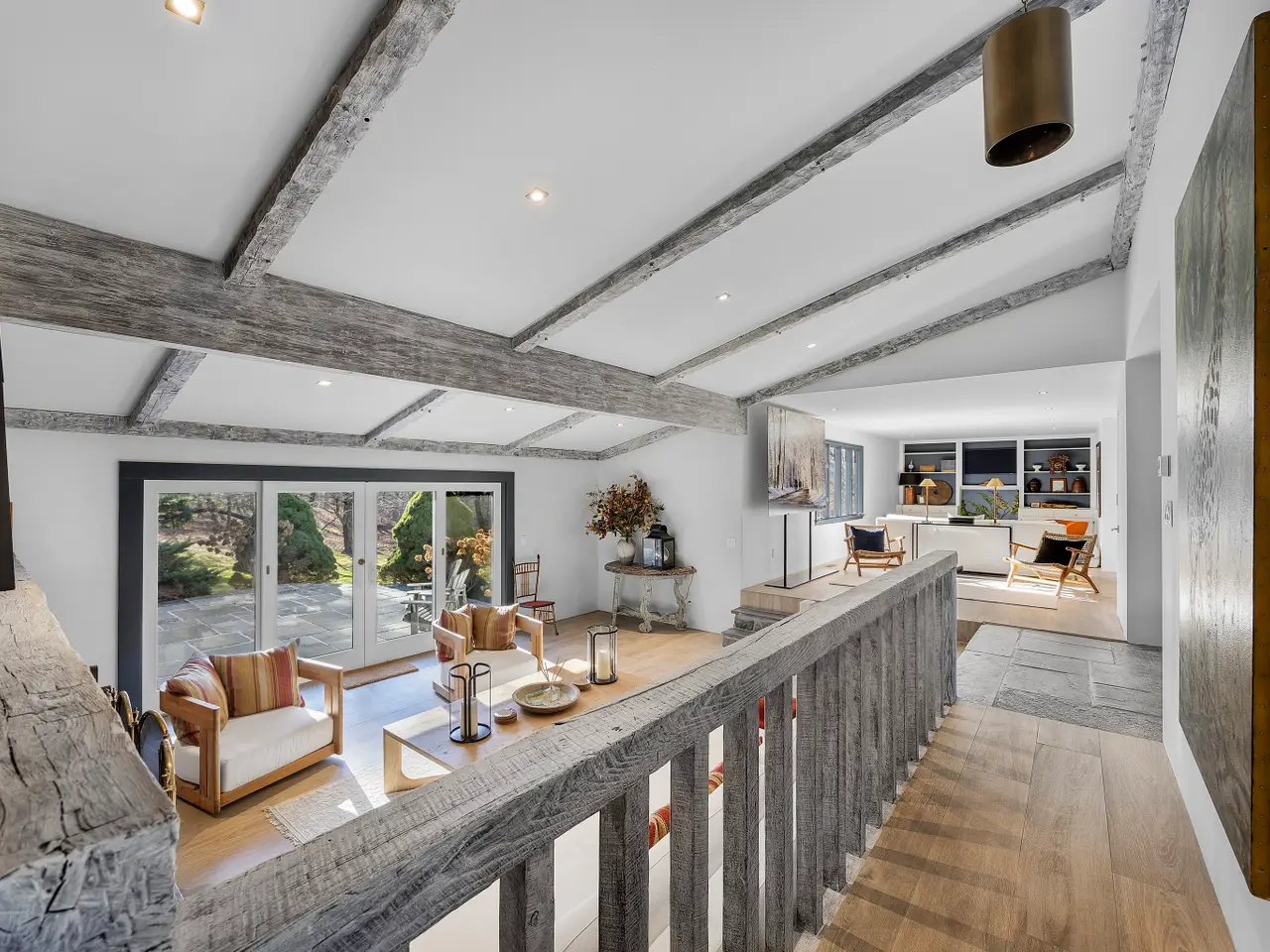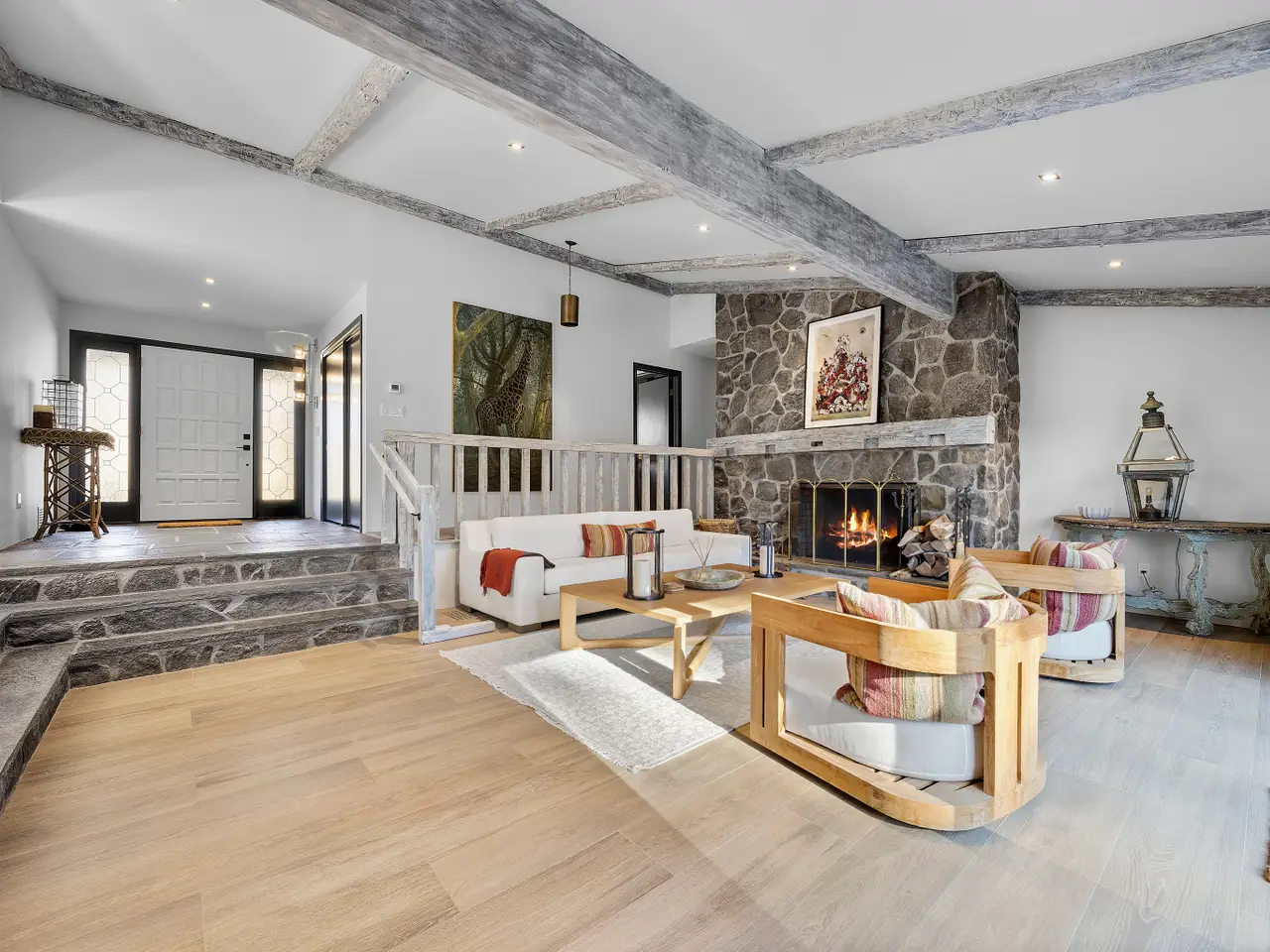 Situated on 2 manicured acres in Southport and surrounded by multi-million-dollar estates, this gated, European-inspired country home blends timeless charm with modern elegance. A white-pebble drive, stone walls, and sweeping lawns with mature trees create a private estate feel. Inside, the home balances warmth with sophistication. Offering 3 bedrooms on the main level and a 4th bedroom option in the lower level with full bath ensuite. Hand-hewn beams, slate entry, and a fieldstone fireplace pair seamlessly with crisp white walls, bold black accents, and striking designer lighting. The open yet defined layout features multiple entertaining areas, a sleek eat-in kitchen, and beautifully renovated baths. More than a home, this is an experience-an extraordinary Southport estate where modern luxury, historic charm, and a setting of rare beauty come together.