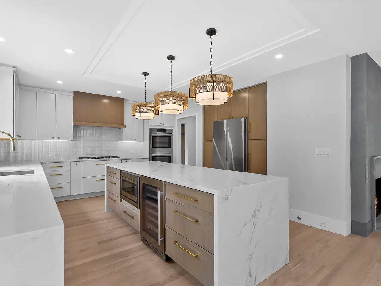 New Mont Blanc quartzite fireplace