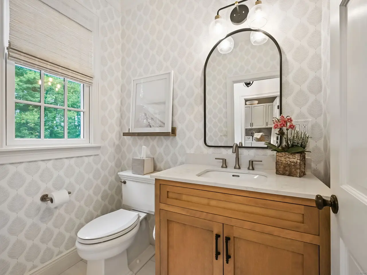 Welcome to this beautifully updated 4+ bedroom Colonial in a sought-after Greenfield Hill neighborhood, surrounded by rolling lawns and tree-lined streets. Offering over 3,000 sq. ft. of elegant living space plus 1,000+ sq. ft. in the spacious finished walk-out lower level, this home provides exceptional versatility and comfort. The grand entryway opens to a formal living and dining room with custom built-ins. The inviting family room, with vaulted ceilings and a natural stone fireplace, flows seamlessly into the impeccably updated eat-in kitchen. From here, sliding doors lead to an expansive Trex deck with a built-in gas grill, perfect for indoor/outdoor entertaining against the backdrop of a serene, private wooded yard. A mudroom, laundry area, and powder room complete the first floor. Upstairs, the tranquil primary suite features a walk-in closet and a spa-like bath with soaking tub, stall shower, and double vanity. Three additional bedrooms and a full bath complete the second level. The finished lower level includes a bedroom/office/potential au pair suite with full bath, ample storage, and walk-out access. Notable upgrades include fresh interior and exterior paint (2025), new roof (2024), remodeled kitchen and primary bath (2023), refinished hardwood floors (2023), and driveway sealing (2023). Meticulously maintained mechanicals and thoughtful updates make this home truly move-in ready.